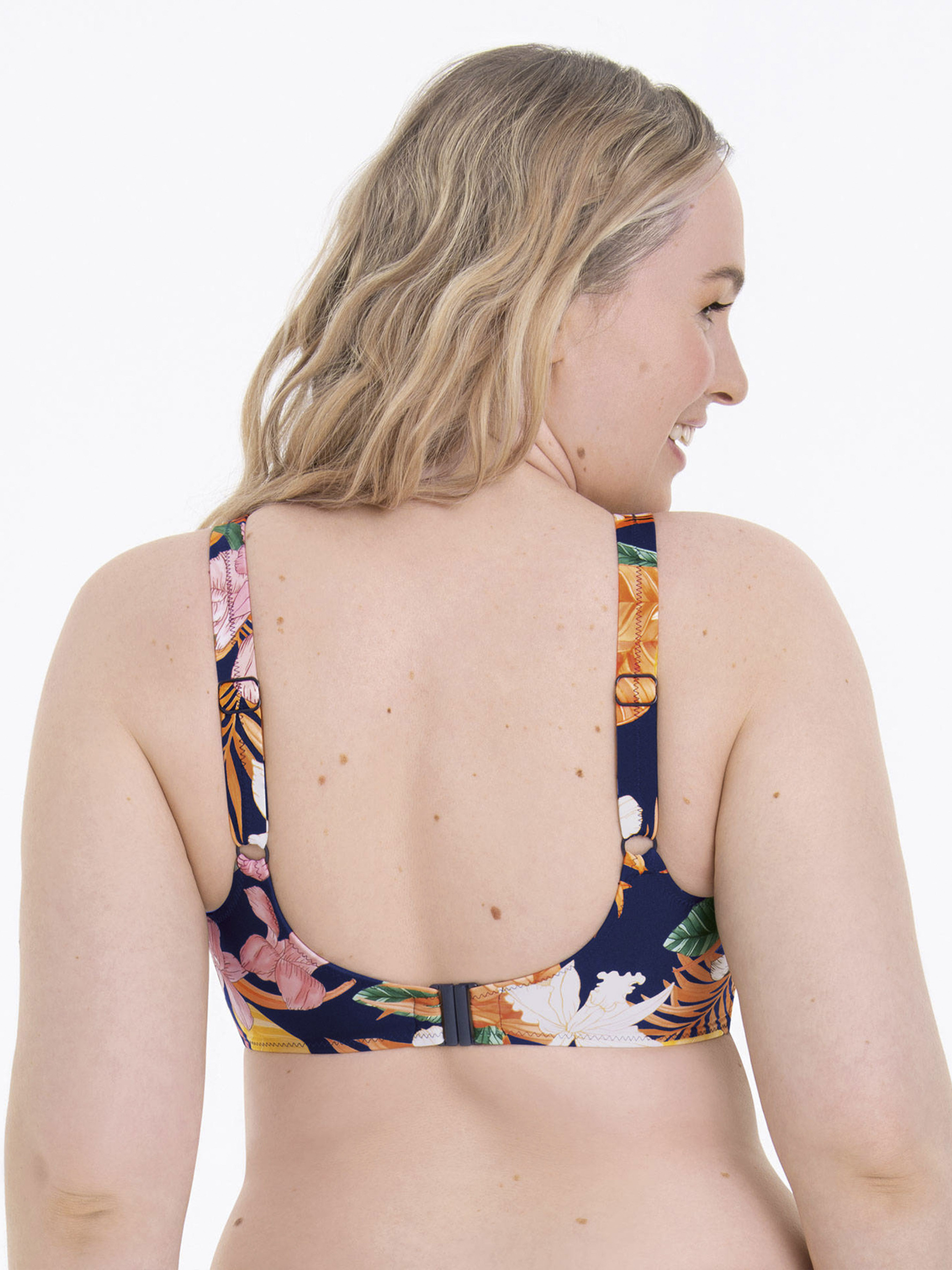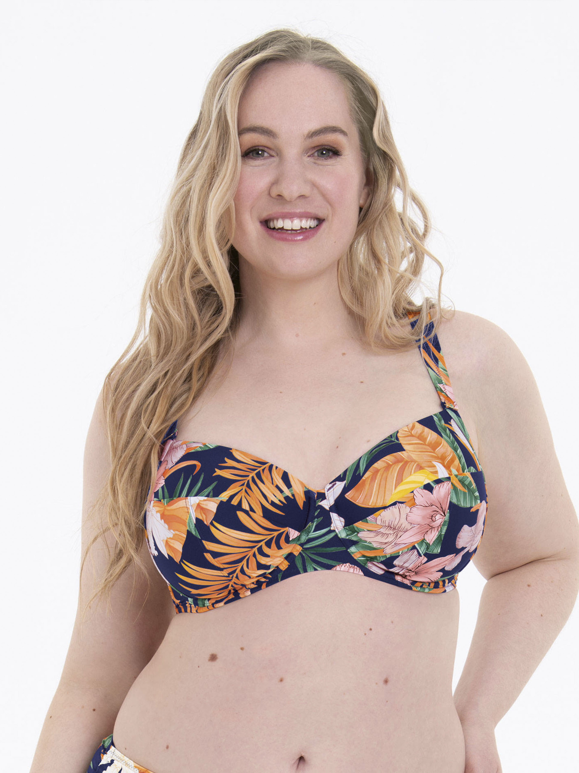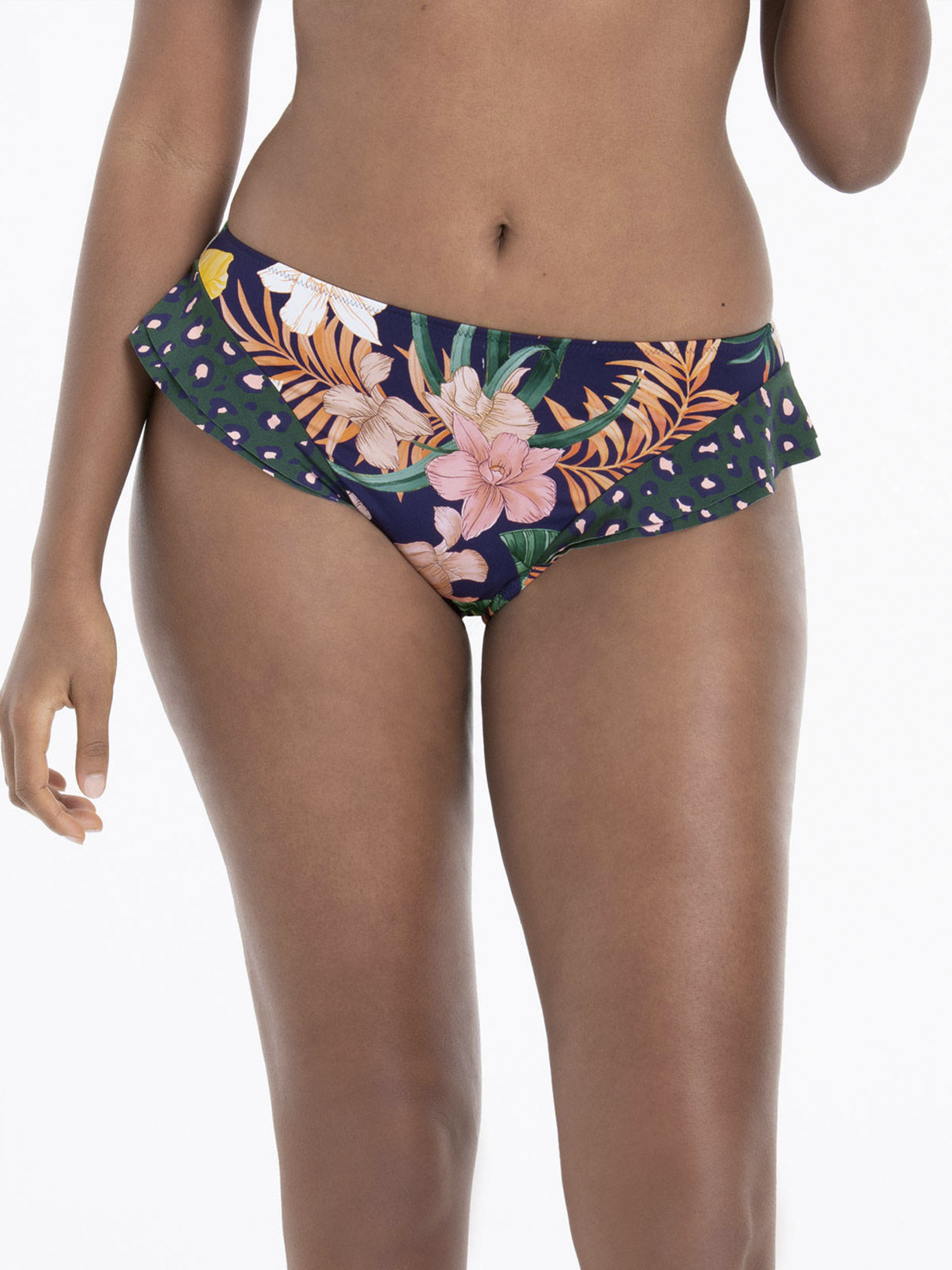 Купальник раздельный Anita Luna.8734 Тропическое разнообразие в сочетании с леопардовыми нотками. Купальный лиф на косточках. Глубокая чашка с Т-образным швом и боковым подкроем, создают округлую форму груди. Модель Full-Cup (более закрытая). Бретели средние, регулируются по всей длине. Пояс плотный, оснащен боковым каркасом. Плавки классического кроя, средней посадки, с дополнительными рюшами.