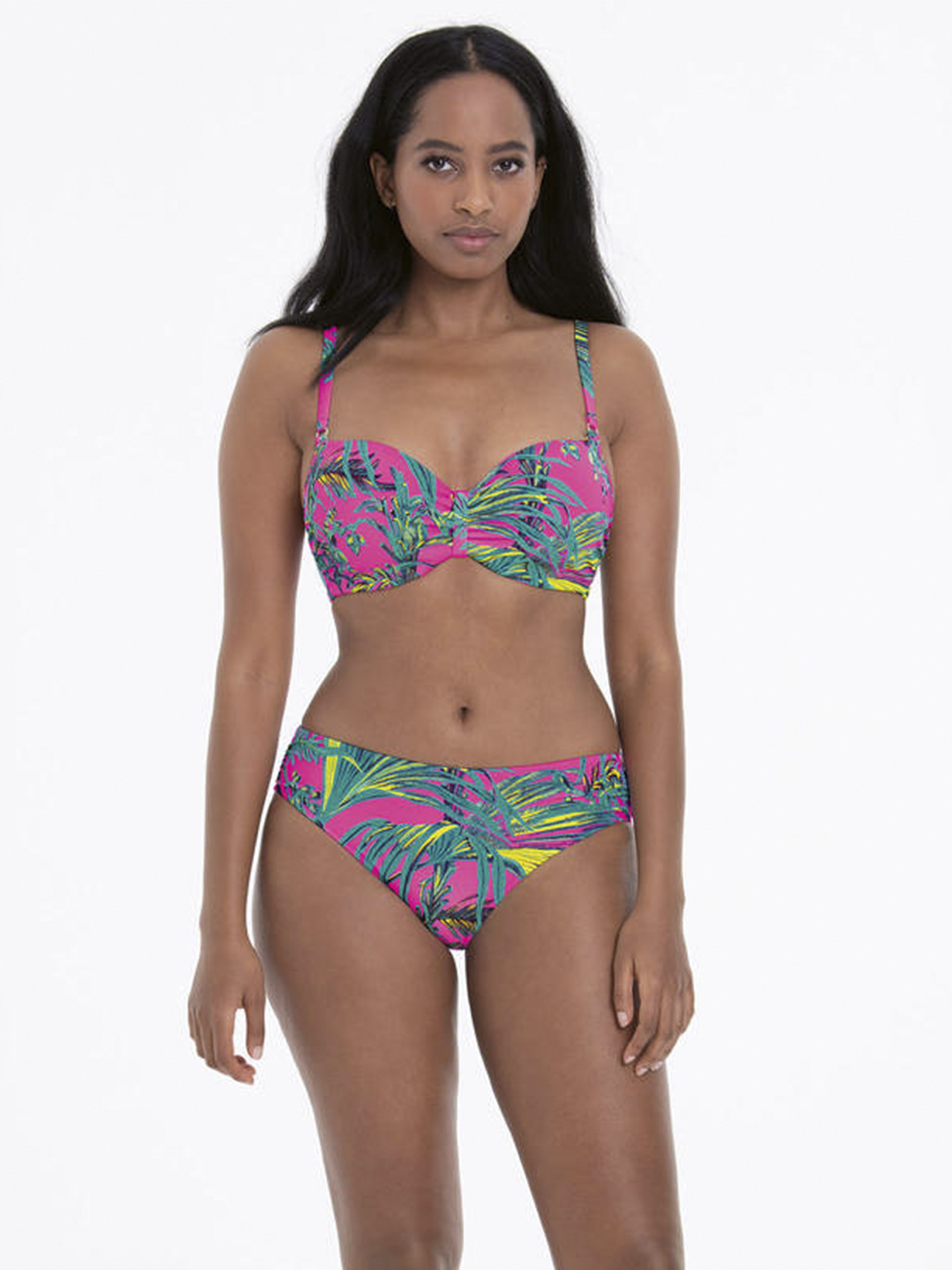 Купальный лиф на косточках. Запатентованная чашка Memory (плотная, изготовлена из вискозного микроволокна, которое быстро сохнет), форма - балконет Высокая перемычка между чашками Нежная ткань с шелковистым блеском, в ярком летнем принте Плавки в комплекте – классического кроя, средней посадки, на подкладке Ткань: Bолокно Shiny Power с добавлением LYCRA® XTRA LIFE™. Ткань устойчива к хлору, морской соли и солнцу, быстро сохнет. Надолго сохранит свою эластичность и глубину цвета После оформления заказа с Вами свяжется консультант для помощи в подборе размера
