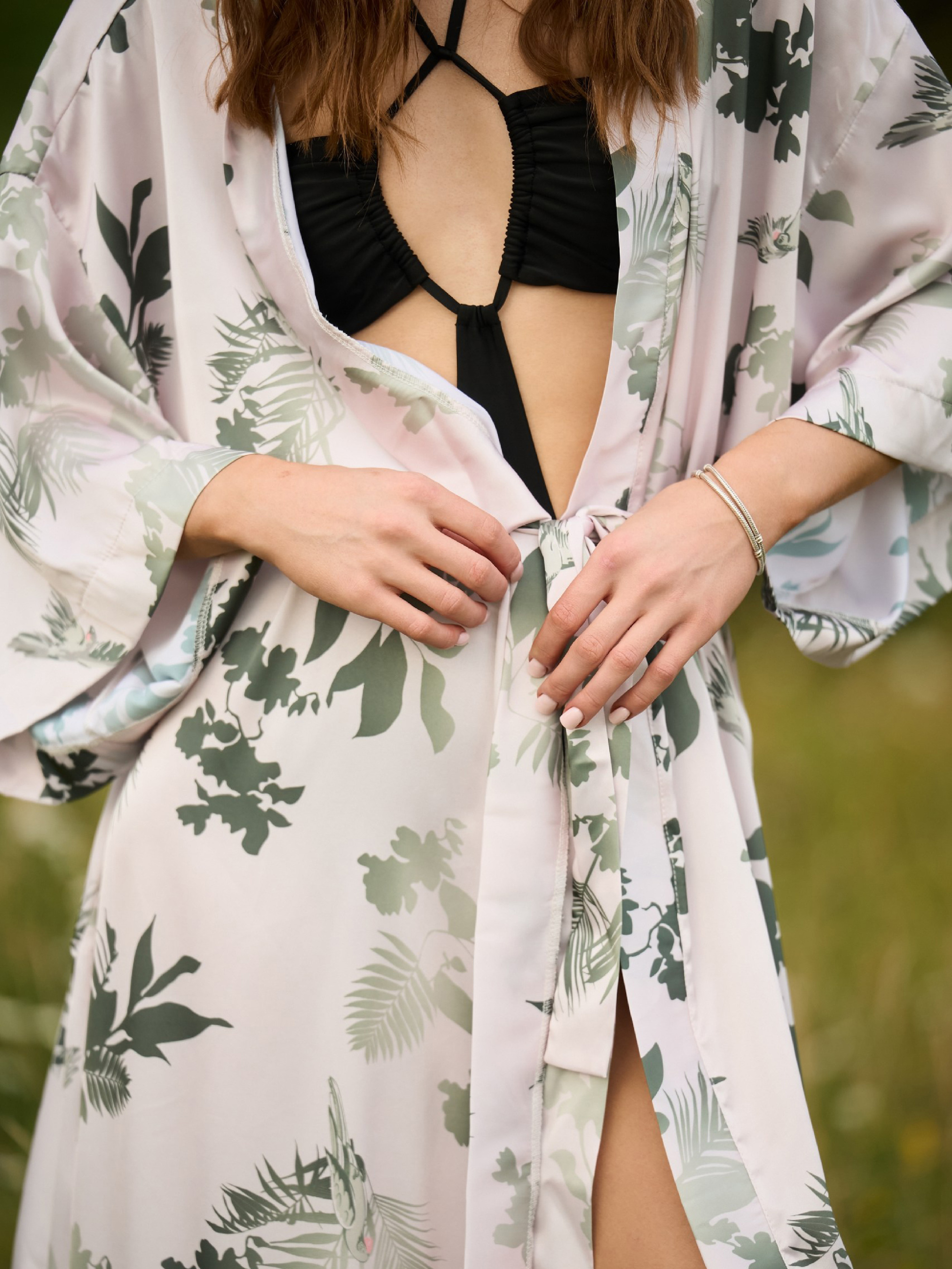 Ощутите роскошь и комфорт с халатом Palma, сочетающим в себе элегантный стиль и удобство. Модный natural принт придаст вашему образу выразительности и изысканности. Халат изготовлен из легкой и мягкой ткани, обеспечивающей приятные ощущения на коже. Пояс позволяет подчеркнуть талию, создавая женственный силуэт. Халат Palma идеально подходит для утренних ритуалов, отдыха дома или даже как стильный пляжный аксессуар. Длина изделия без бахромы 124 см, с бахромой 137 см. Обхват груди 84-104 см, обхват талии 64-84 см, обхват бедер 90-110 см.