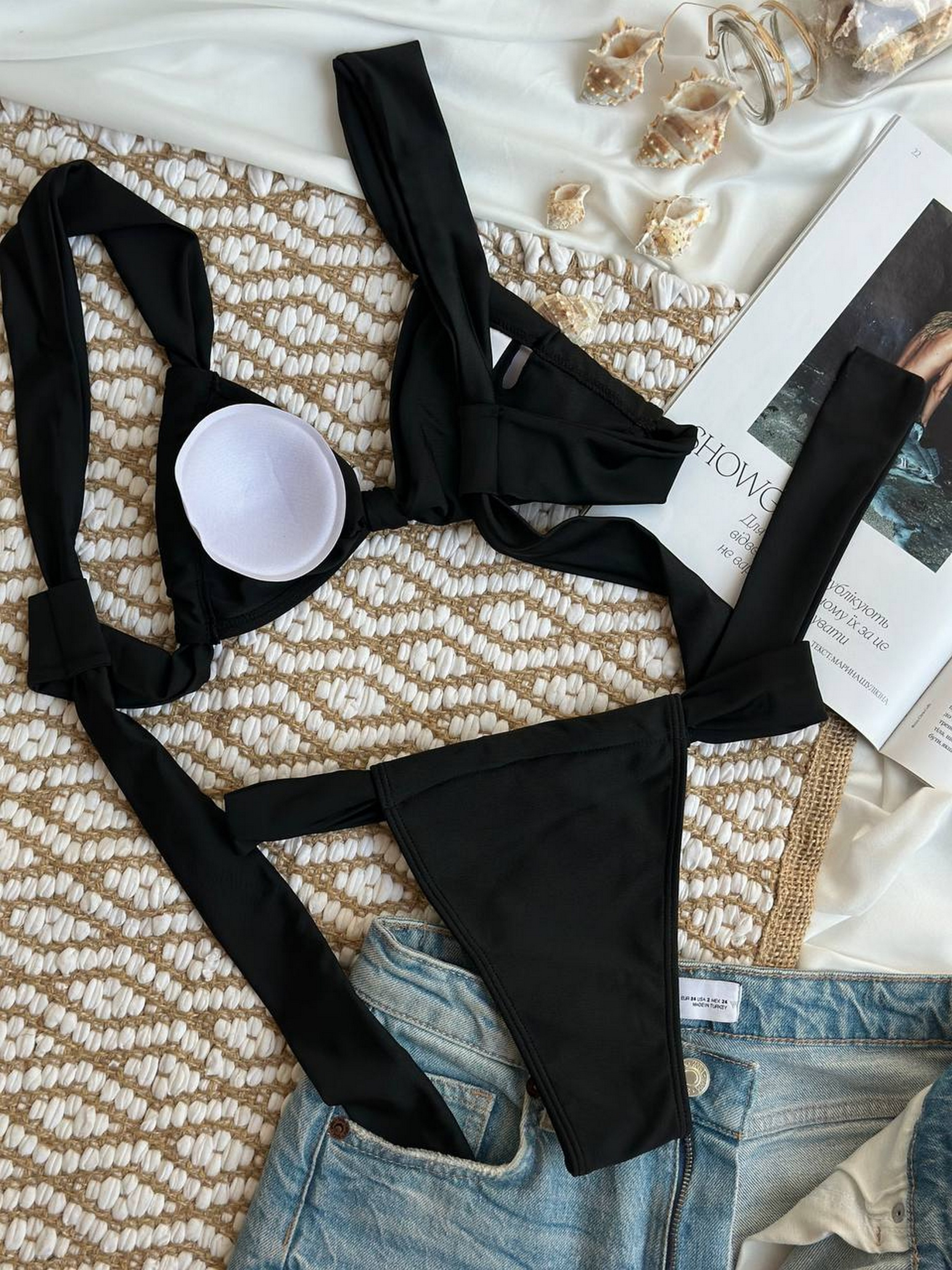 Раздельный женский купальник Купальник, который всегда будет актуален, для тех, кто любит черный цвет и оригинальный дизайн. Отличное качество! Ткань итальянский бифлекс. Сменные поролоновые чашки в бюсте. Размерная сетка: S: грудь 84-91, бедра 86-95 см М: грудь 91-97, бедра 95-100 см L: грудь 96-100, бедра 99-105 см Товар обмену и возврату не подлежит!