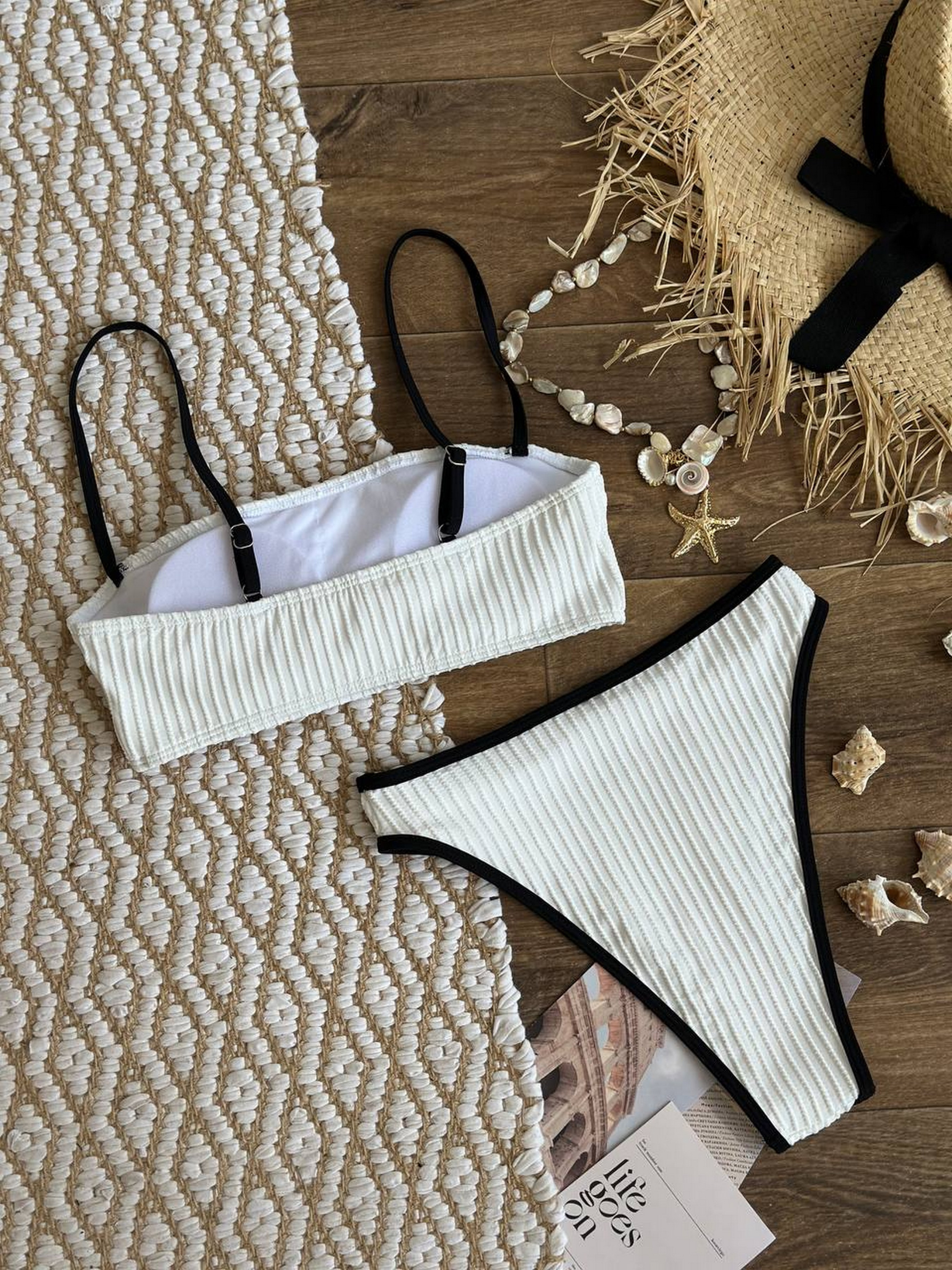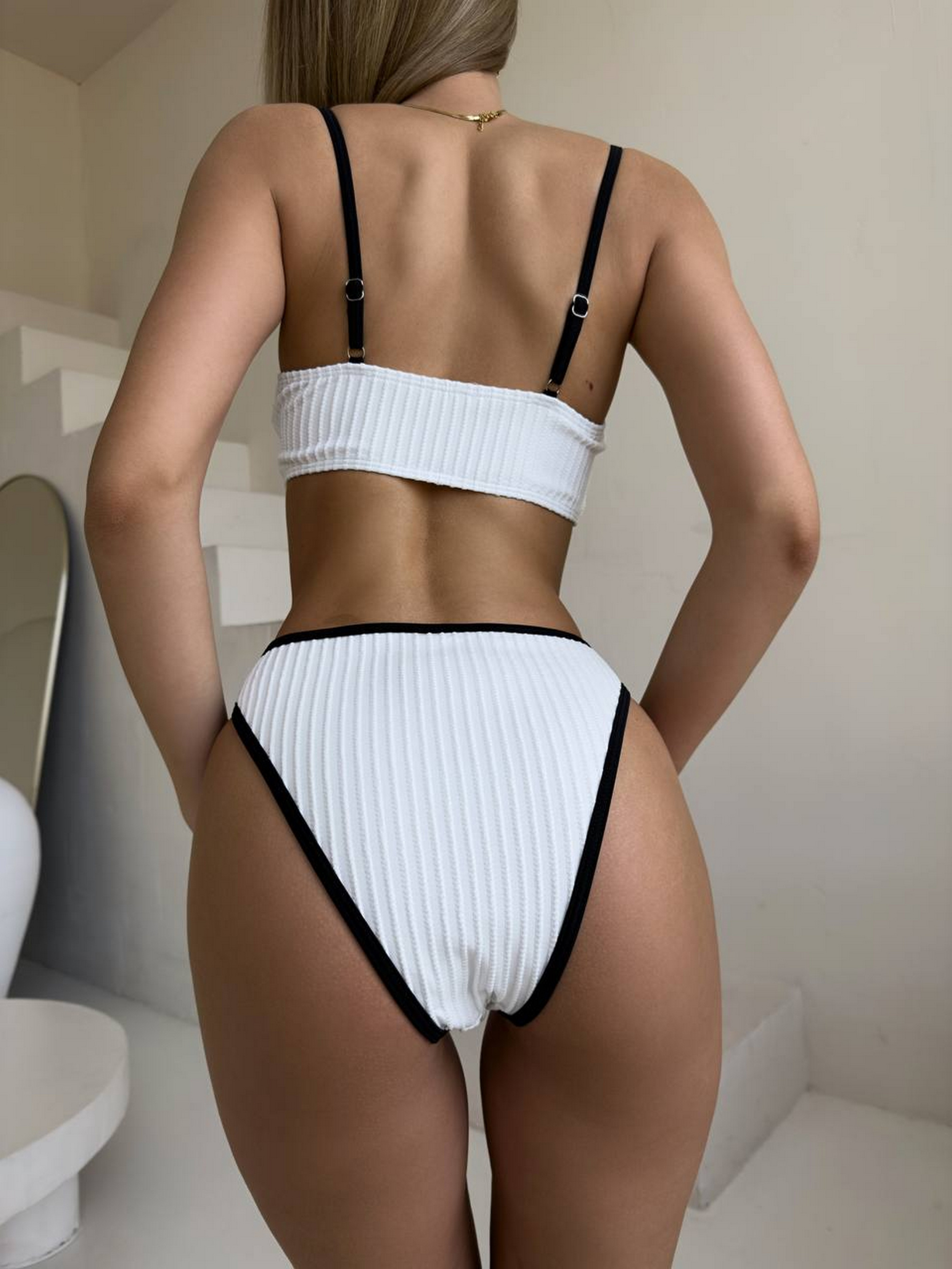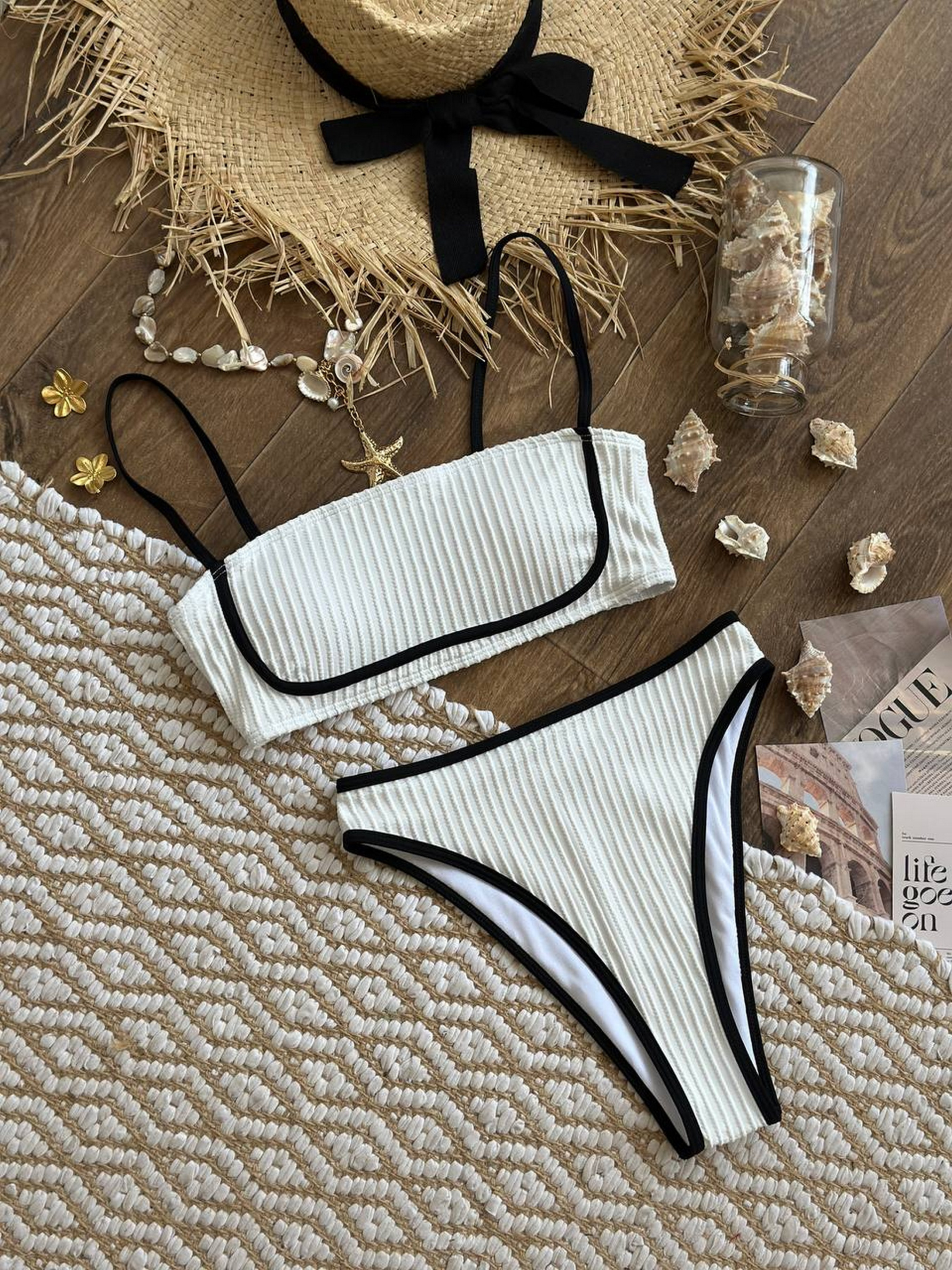 Раздельный женский купальник Тот самый купальник, в котором хочется гулять вдоль берега, пить кокосовую воду и забыть время. Трендовый фактурный материал – бифлекс. Контрастная черная окантовка – акцент, подчеркивающий фигуру. Бандо-топ с поролоновыми чашками. Высокие трусики зрительно удлиняют ноги и подтягивают живот. Размерная сетка: S: грудь 85-91, бедра 86-94 М: грудь 90-94, бедра 94-98 L : грудь 95-98, бедра 98-105 Товар обмену и возврату не подлежит!