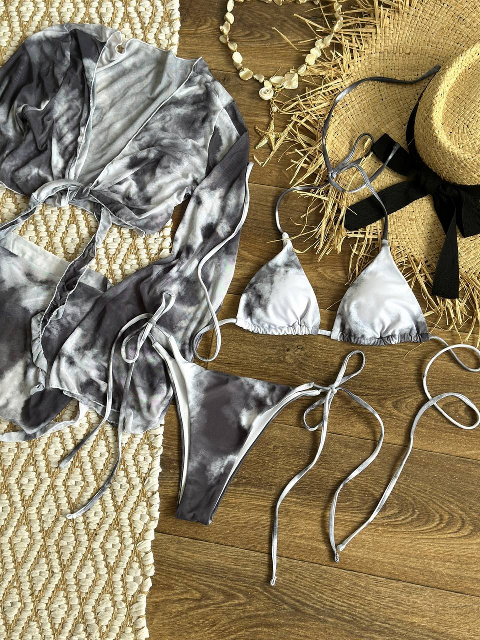 Пляжный комплект женский (купальник, парео) Стильный пляжный комплект: топ на завязках с длинным рукавом, купальник и парео в черно-белом принте. Этот пляжный комплект – твой must have для пляжа, бассейна или летней вечеринки с коктейлем в руке. Топ с длинным рукавом и завязками. Парео на талии добавляет шарм. Легкая ткань, не парящая и не сковывающая движений. Купальник исполнен из бифлекса. В бюсте поролоновые съемные чашки. Размерная сетка: S: грудь 84-88, бедра 88-94 M: грудь 88-92, бедра 94-100 Товар обмену и возврату не подлежит!
