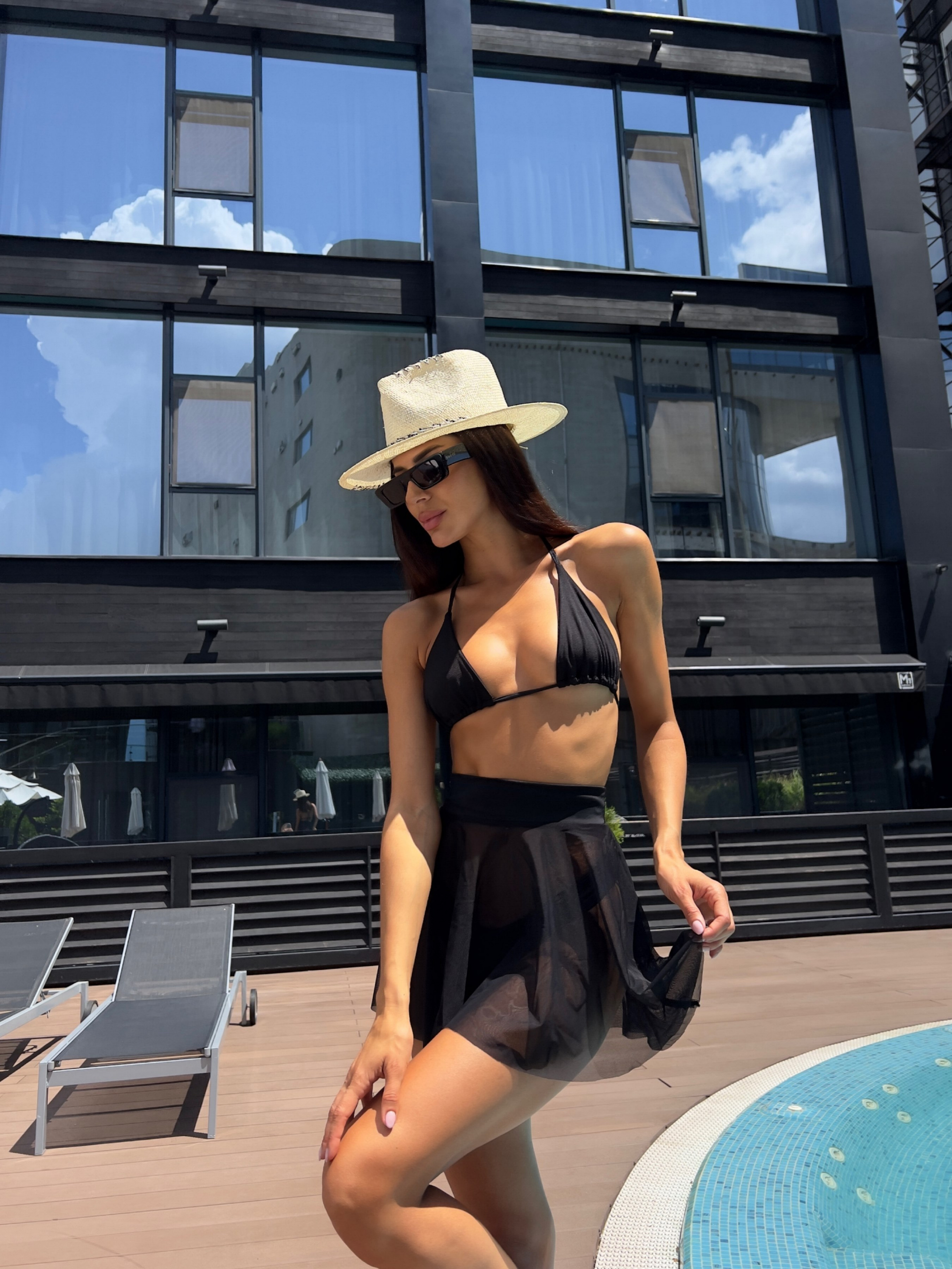 Женский комплект Nova Vega. В комплект входят купальник и юбка-сетка - отлично подойдёт для пляжного сезона и отдыха у бассейна. Купальник имеет треугольную форму верха на тонких завязках и плавки стринги на средней посадке. Юбка-сетка с резинкой для фиксации на талии. Комплект пошит из дышащего высококачественного материала который хорошо тянется и не теряет свою форму, так же устойчив к численным стиркам.
