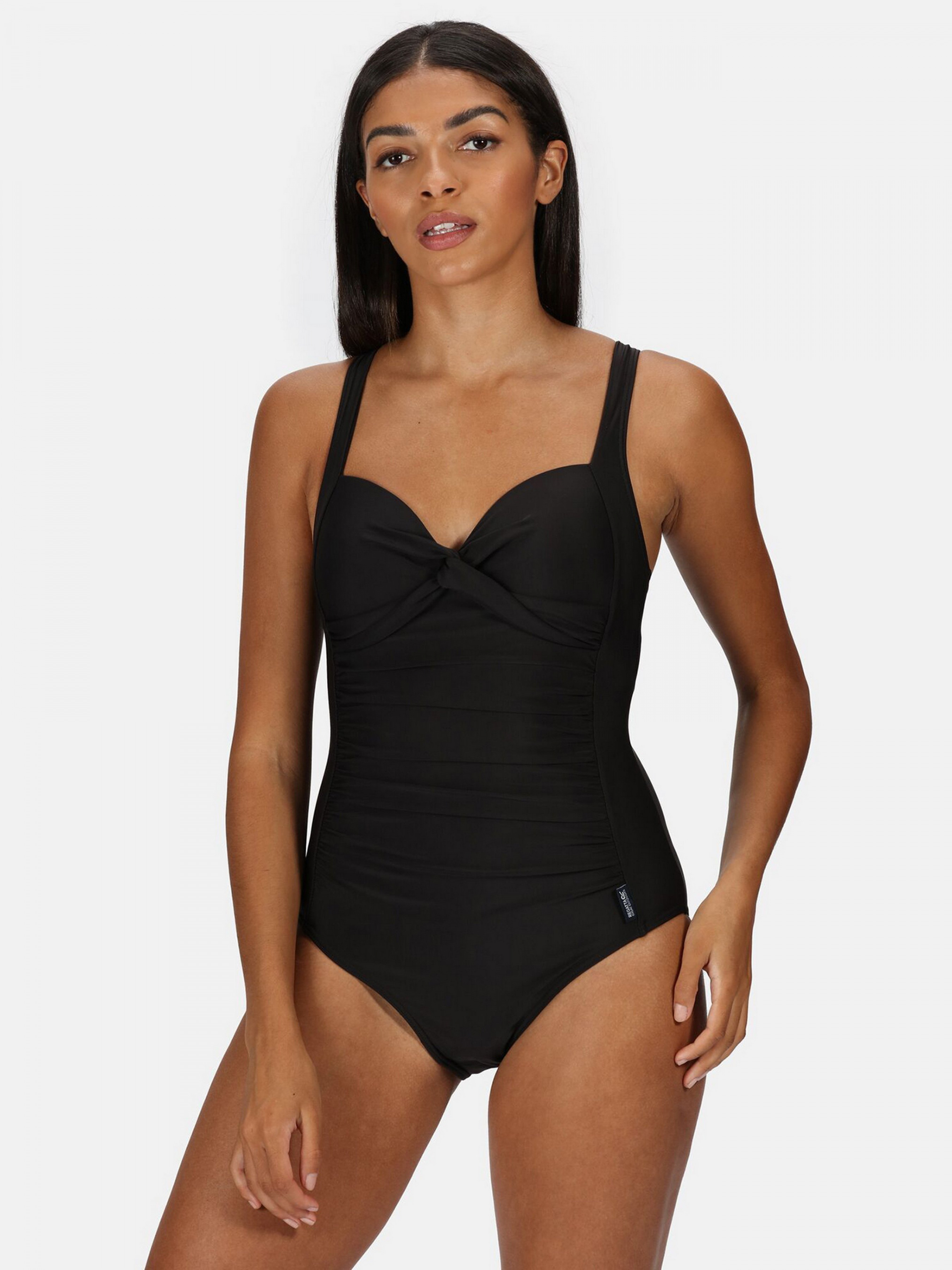 Женский сдельный купальник Regatta (RWM012-800) с регулируемыми бретелями. Состав: 85% полиэстер, 15% эластан.