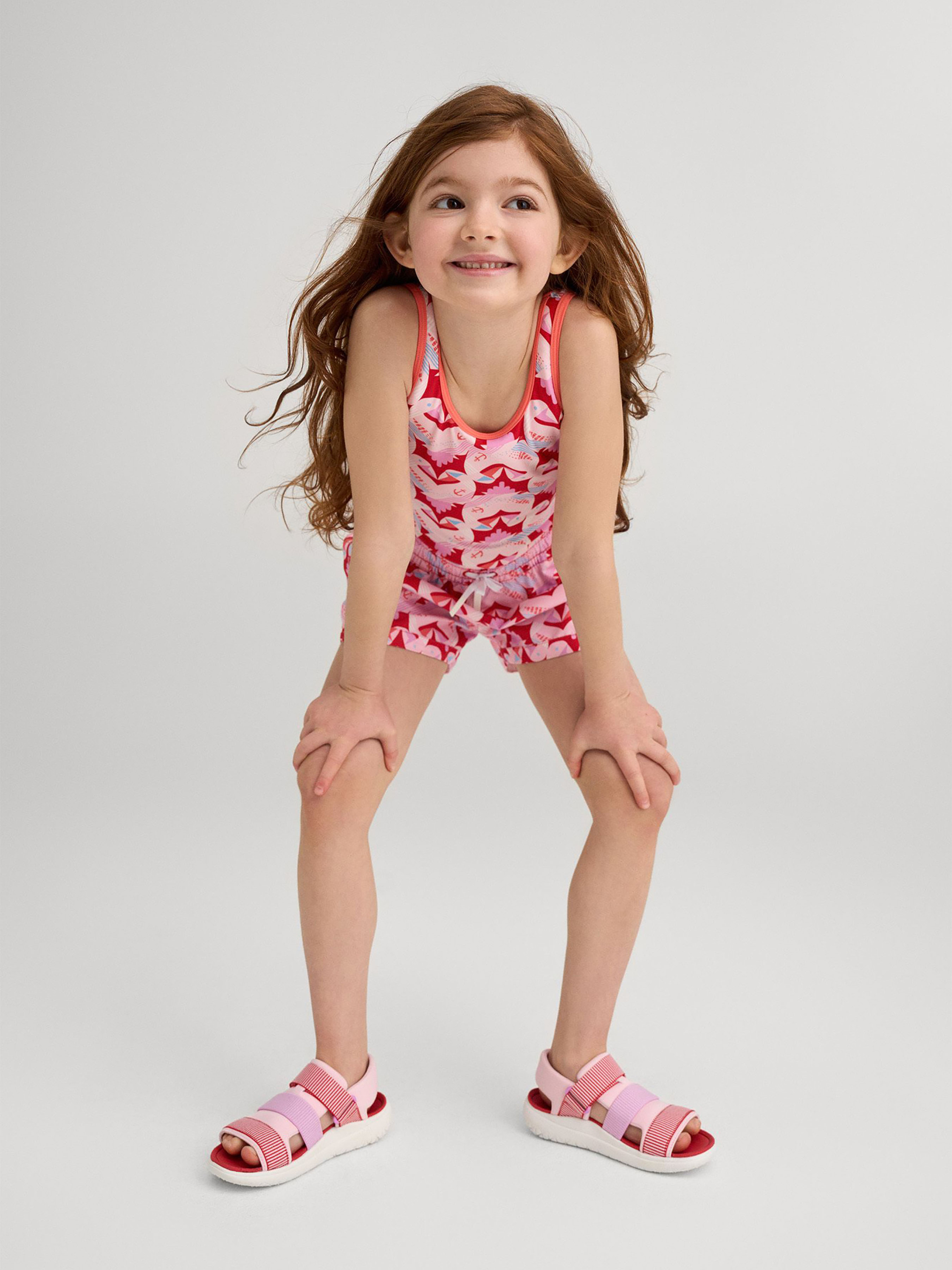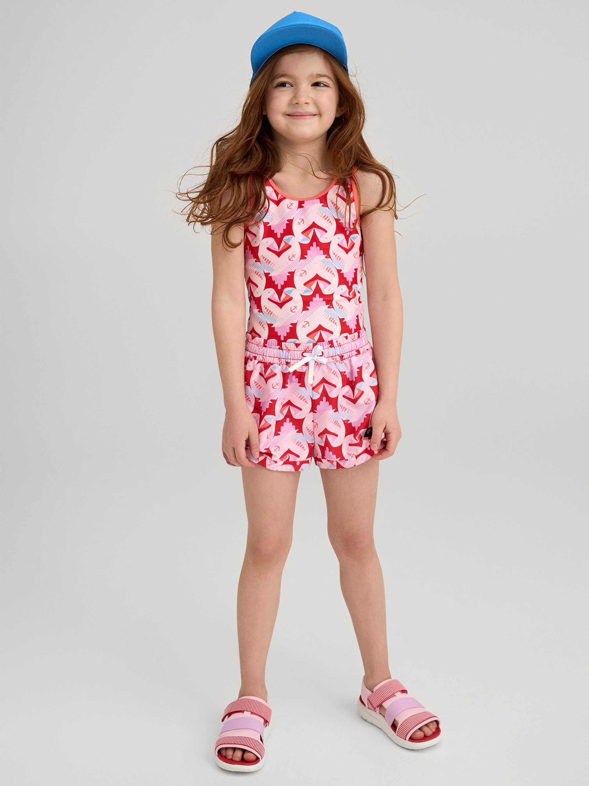 Состав: 83% полиэстер, 17% эластан Воздухопроводимость: >7000 Воздухопроводимость основного материала: >7000 Материал: SunProof jersey rec УФ защита 50+ Эластичный материал Отводит влагу от кожи Быстросохнущий материал Переработанный материал Содержит переработанные волокна с сертификатом качества|Reima SunProof: фактор защиты от ультрафиолета 50+|Эластичная подкладка спереди|Дополнительная подкладка длялучшей защиты|Эластичная окантовка на шее, проймах и вырезах для ног|Принт по всей поверхности Уход: Стирать с бельем одинакового цвета, вывернув наизнанку. Стирать в специальном мешке. Стирать моющим средством, не содержащим отбеливающие вещества. Полоскать без специального средства. Сушить в защищенном от солнца месте. После применения прополоскать чистой водой. Детский купальник Uimaan создан для того, чтобы детям было комфортно купаться и играть летом. Эластичный, быстросохнущий материал отводит лишнюю влагу от кожи и обеспечивает защиту от ультрафиолета до фактора SPF 50+, что позволяет проводить больше времени на солнце. Удобный крой и дополнительная подкладка спереди обеспечивают полную защиту. Эластичная окантовка обеспечивает надежную, но удобную посадку без натирания кожи. Этот купальник идеально подходит для детей, которые любят активный отдых на свежем воздухе. Обратите внимание, что материал защищает только кожу, которую он покрывает, поэтому наносите солнцезащитный лосьон на открытые участки тела.