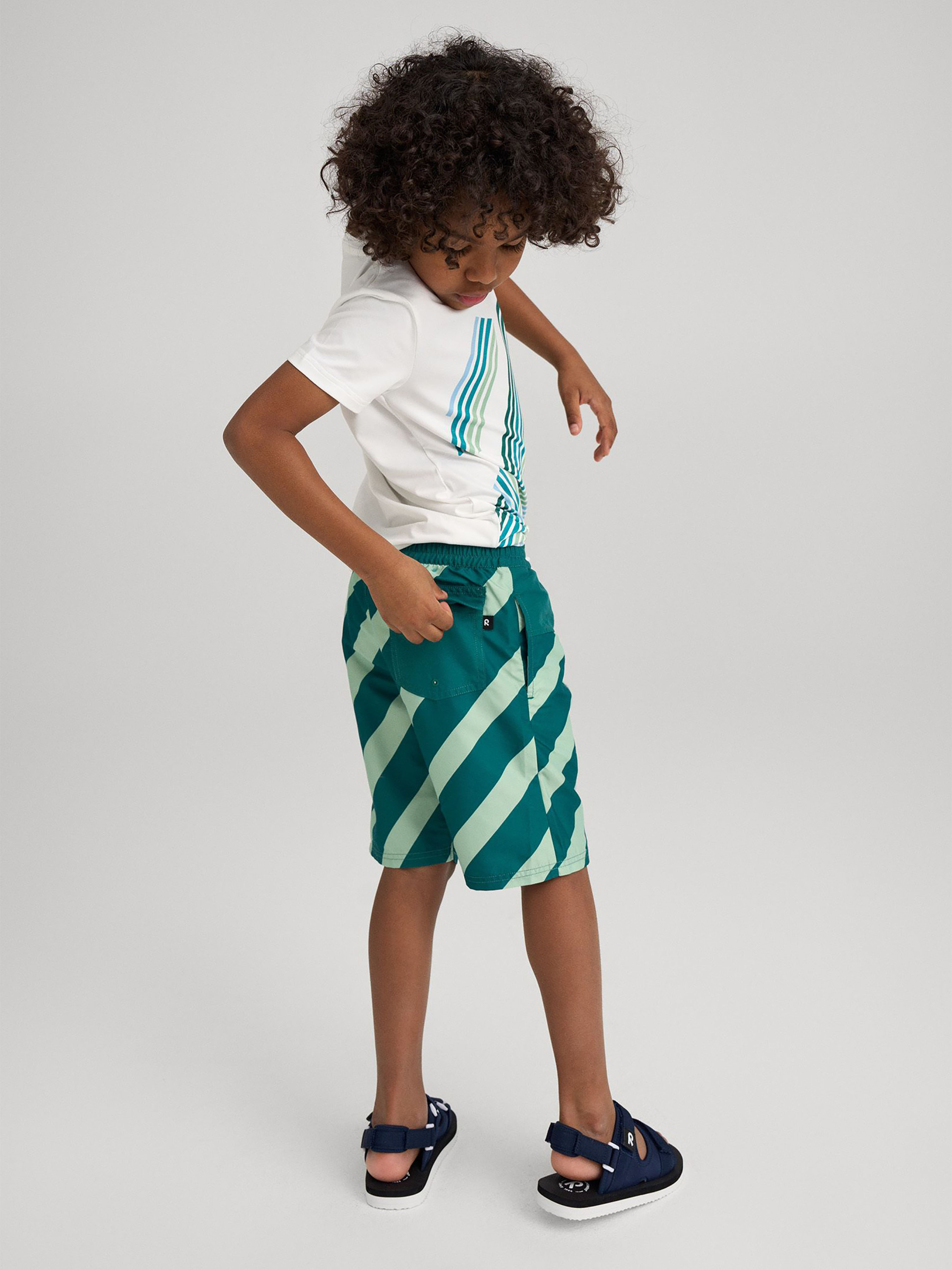 Состав: 100% полиэстер Воздухопроводимость: >7000 Воздухопроводимость основного материала: >7000 Материал: SunProof woven GRS УФ защита 50+ Переработанный материал Содержит переработанные волокна с сертификатом качества|Reima SunProof: фактор защиты от ультрафиолета 50+|Длина до колена|Внутренняя вставка из сетчатого материала|Регулируемый пояс со шнурком|Боковые карманы|Карман сзади Уход: Cтирать с бельем одинакового цвета. Стирать моющим средством, не содержащим отбеливающие вещества. Полоскать без специального средства. Во избежание изменения цвета изделие необходимо вынуть из стиральной машинки незамедлительно после окончания программы стирки. Сушить при низкой температуре. Детские шорты для плавания Papaija созданы для активных детей, которые любят играть на свежем воздухе. Дышащий и легкий материал обеспечивает комфорт, а фактор защиты от ультрафиолета SPF 50+ позволяет получать больше удовольствия от игр на солнце. Эти шорты для плавания длиной до колена имеют эластичную талию со шнурком для легкой регулировки, боковые карманы для хранения мелких вещей и накладной карман сзади. Внутренняя сетчатая подкладка предотвращает натирание кожи и быстро сохнет. В этих шортах для плавания ребенку будет комфортно все лето. Не забывайте защищать открытые участки кожи солнцезащитным лосьоном. Детям также следует носить легкую кепку или панаму, когда они играют на солнце.