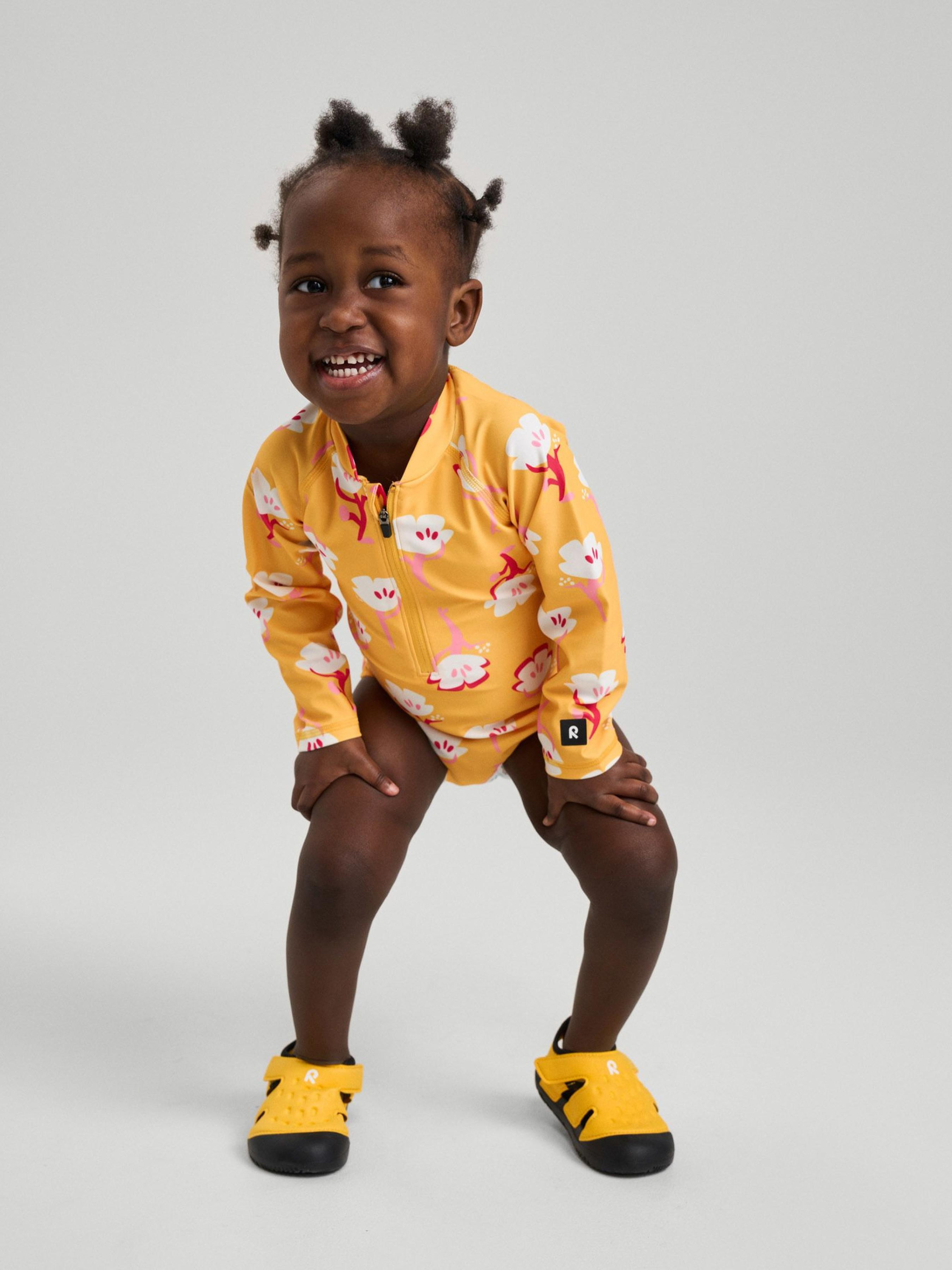 Состав: SunProof jersey GRS: 83% переработанный полиэстер, 17% эластан Материал: SunProof jersey GRS УФ защита 50+ Эластичный материал Отводит влагу от кожи Переработанный материал Содержит переработанные волокна с сертификатом качества|Reima SunProof: фактор защиты от ультрафиолета 50+|Эластичная подкладка спереди|Полуавтоматический замок-молния для предотвращения непреднамеренного открытия|Принт по всей поверхности Уход: Стирать с бельем одинакового цвета, вывернув наизнанку. Стирать в специальном мешке. Стирать моющим средством, не содержащим отбеливающие вещества. Полоскать без специального средства. Сушить в защищенном от солнца месте. После применения прополоскать чистой водой. Обеспечьте малышу защиту и комфорт с нашим детским купальником Pihlis. Ткань с UPF 50+ защищает от вредных ультрафиолетовых лучей, что позволяет дольше и безопаснее играть летом. Этот купальник отлично подходит и для игр на суше, так как он изготовлен из эластичного материала, который отводит влагу, помогая вашему ребенку чувствовать себя комфортно. Эластичная подкладка на передней части обеспечивает дополнительное покрытие, а для дополнительного удобства купальник оснащен полуавтоматическим замком-молнией, предотвращающим непреднамеренное расстегивание. Обратите внимание: когда ткань намокает или растягивается, защита может ослабнуть. Для безопасной игры на солнце дети всегда должны носить головной убор и солнцезащитные очки, а также защищать открытые участки кожи солнцезащитным лосьоном.