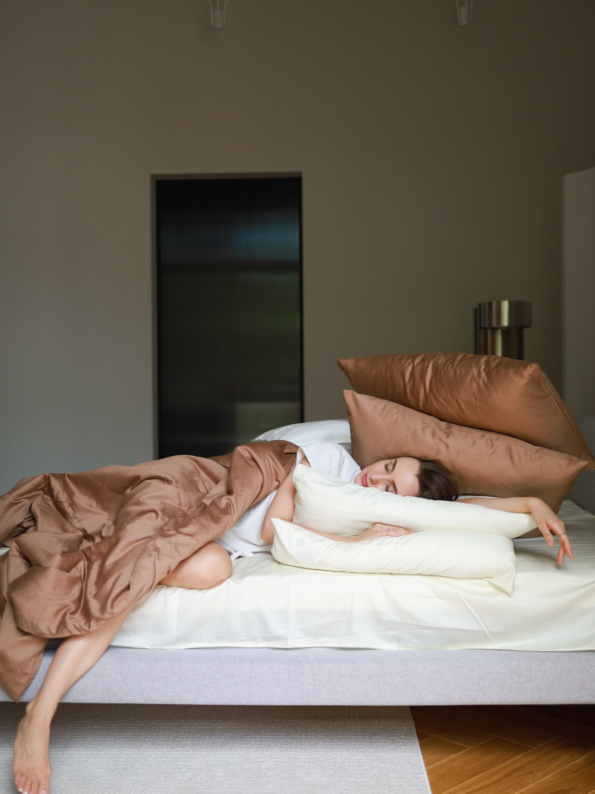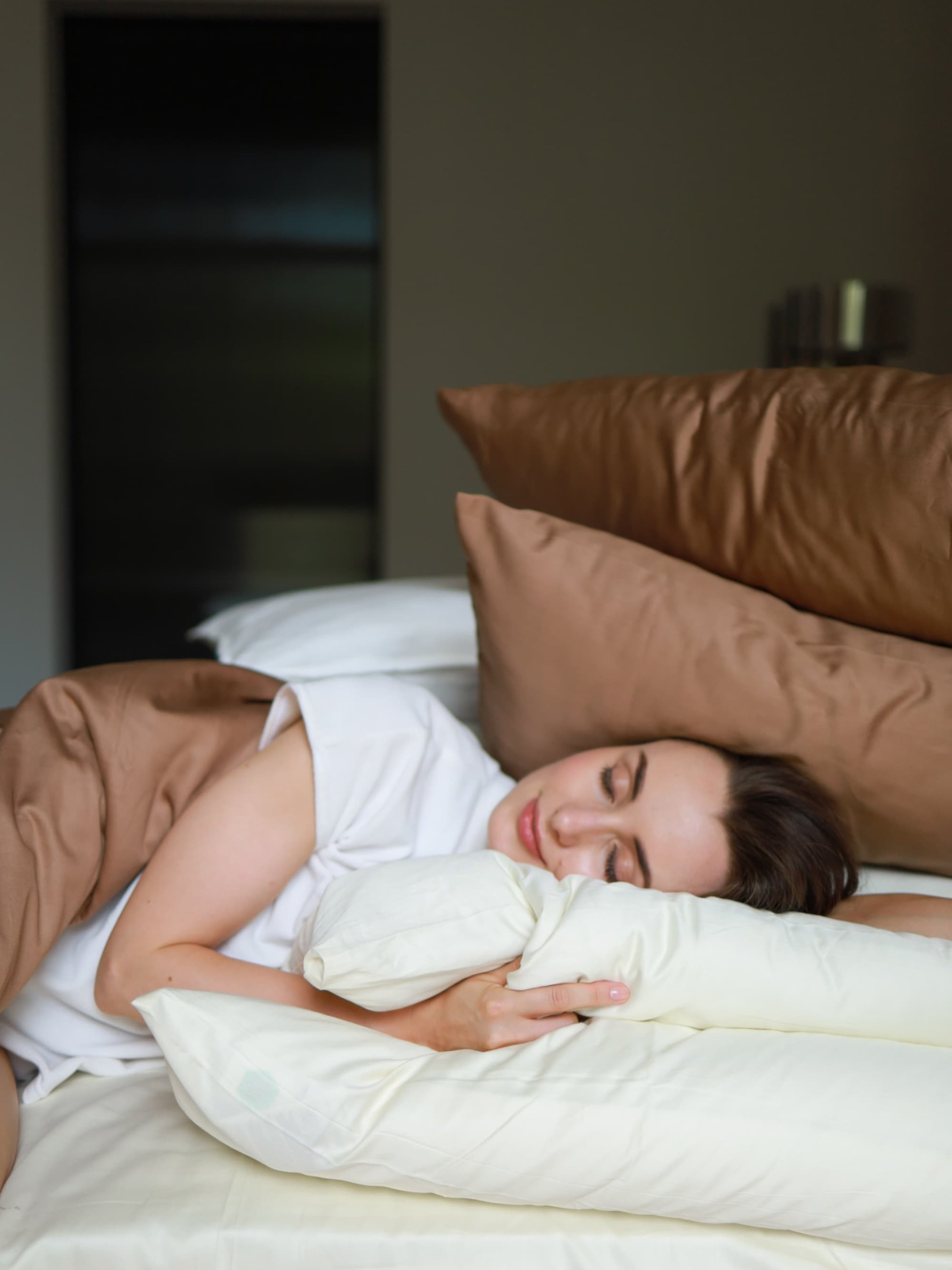 BedclozZzesКомплект постельного белья с ткани Сатин цвет Карамельный и молочный