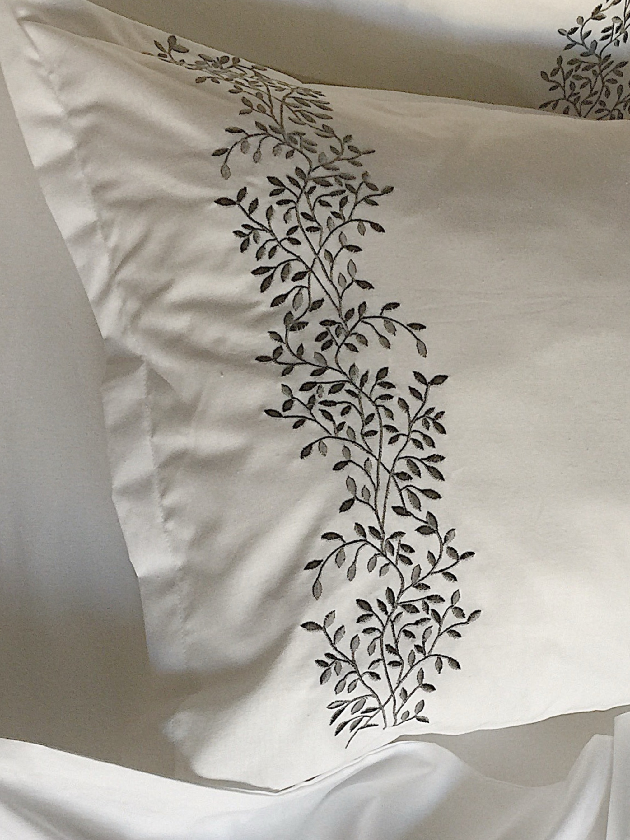CozyНаволочка біла з вишитими сірими гілками
