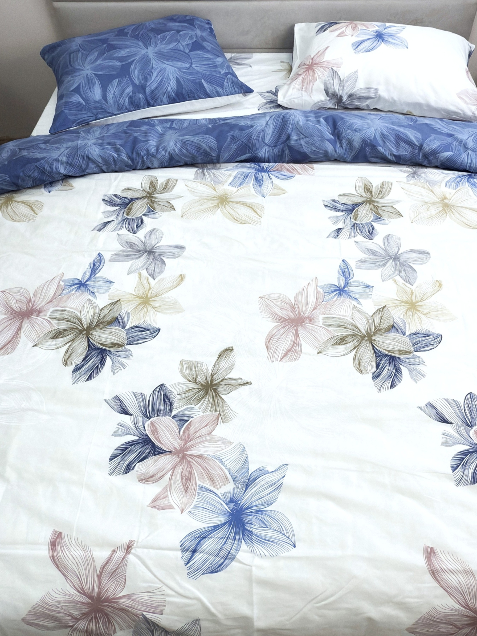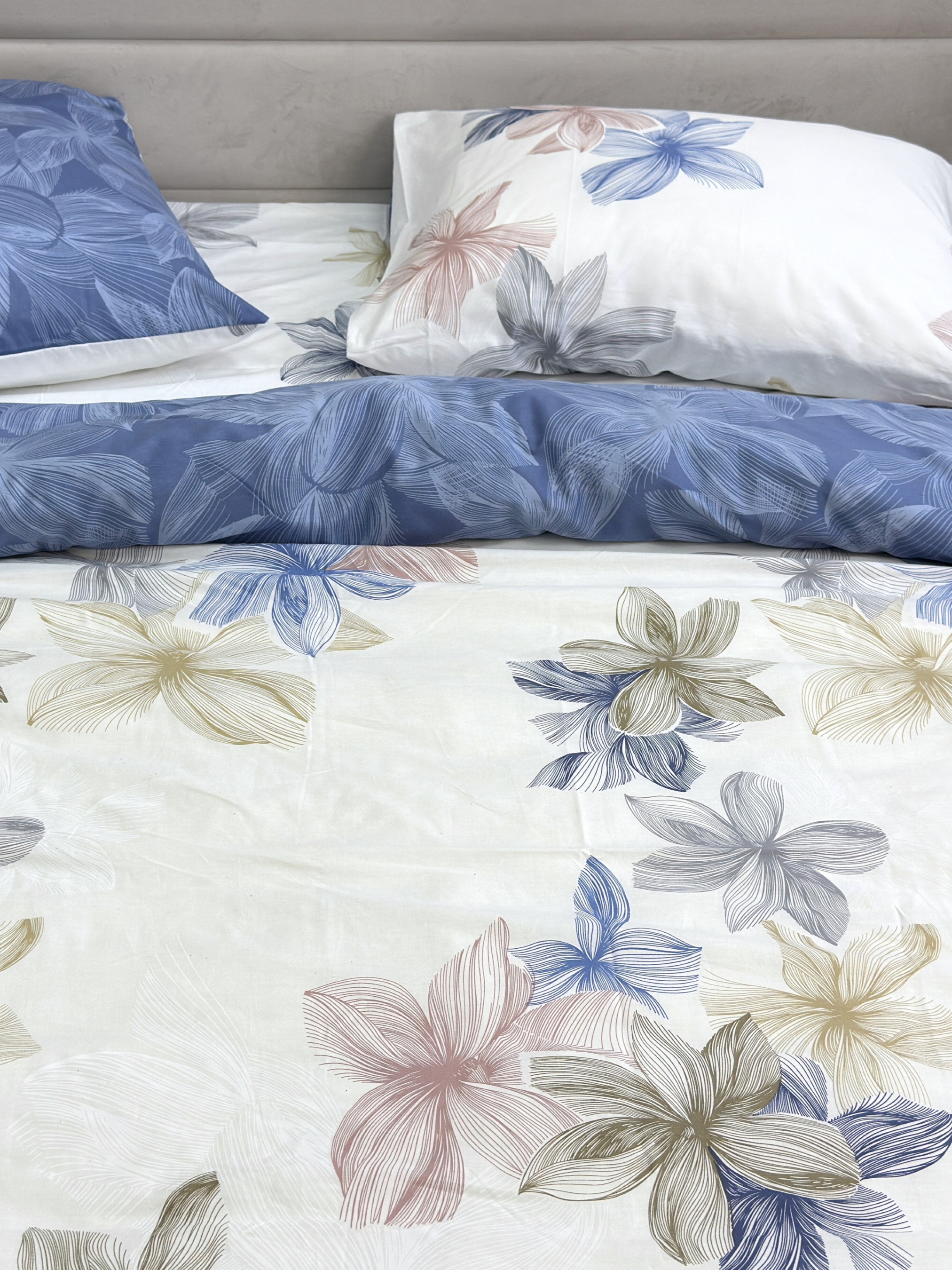 EcottonКомплект постельного белья двусторонний с нежными голубыми Цветами