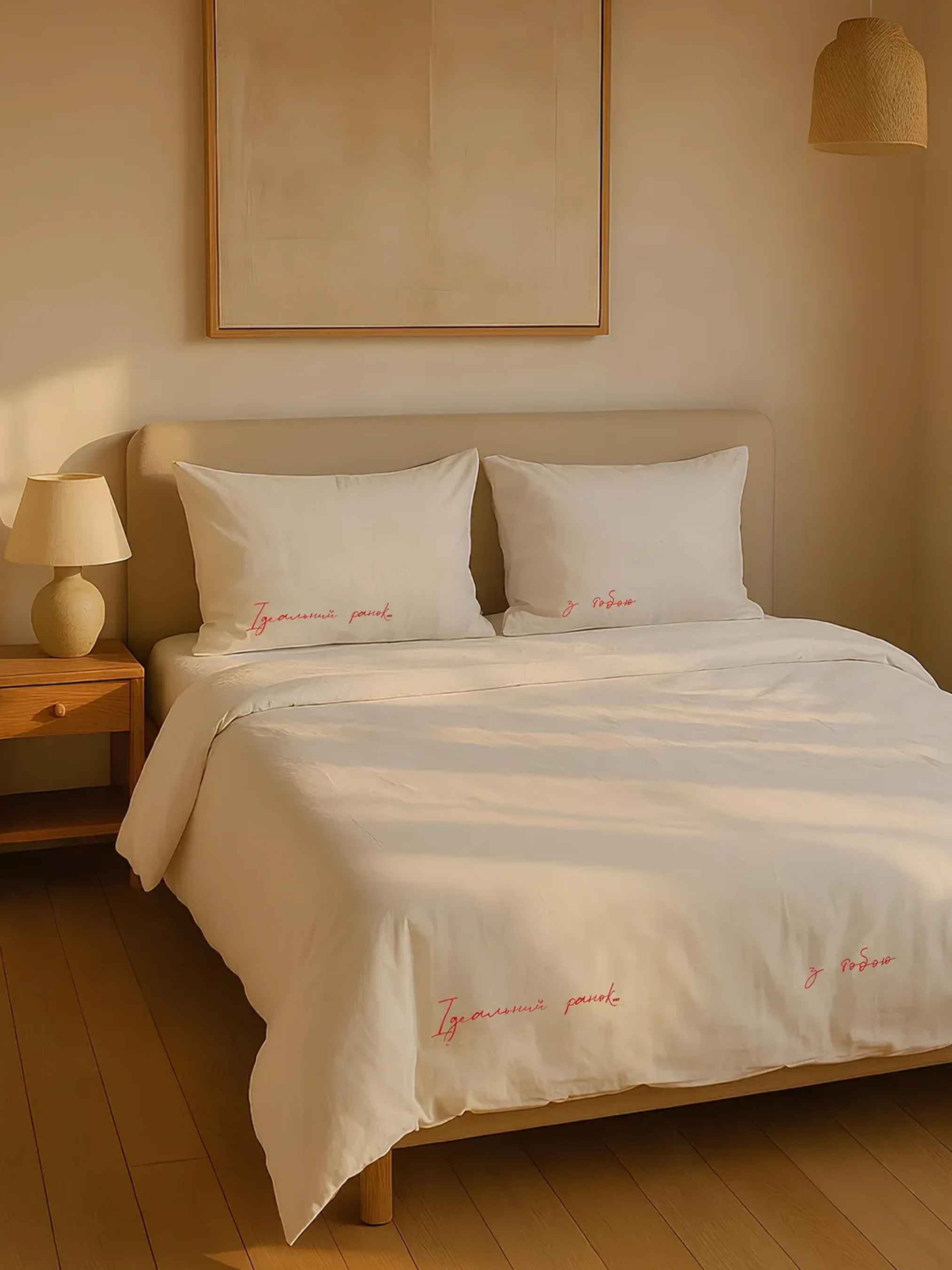 Постель выполнена из натуральных материалов, с детализированной вышивкой и доступна в базовом белом цвете, который точно подойдет любому интерьеру и дополнит его. Бренд предлагает вместе начинать уютную историю и мы убеждены, что каждая из них будет о заботе, любви и домашнем тепле. Levan Home непременно заставляет испытывать желание вернуться к кровати каждый раз, как вы покидаете, благодаря своим словам, афирмациям и узорам, которые так красиво и точно вышитые на комплектах. Качество тканей создаст ощущение объятий с одеялом, из которых не хочется уходить. А столовый текстиль обязательно сможет поразить близких по вечерним посиделкам дома, которые так необходимы.