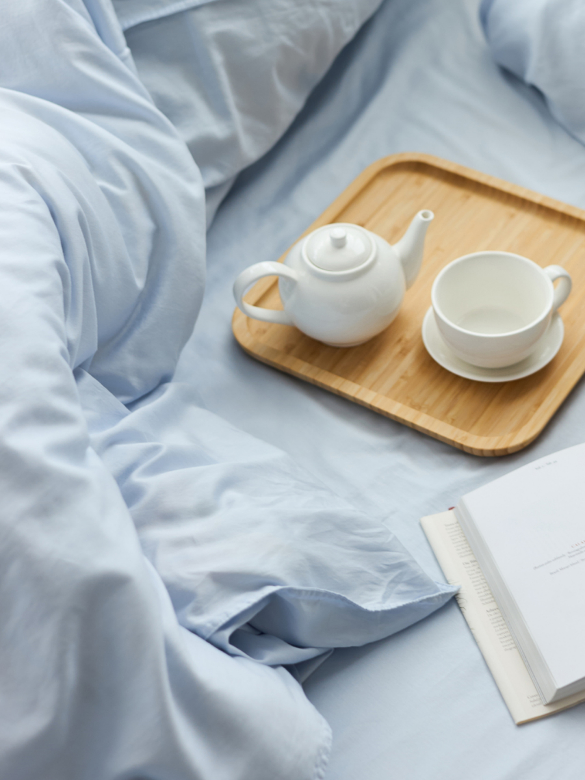 Простынь на резинке "Облака над морем" из вареного сатина голубая