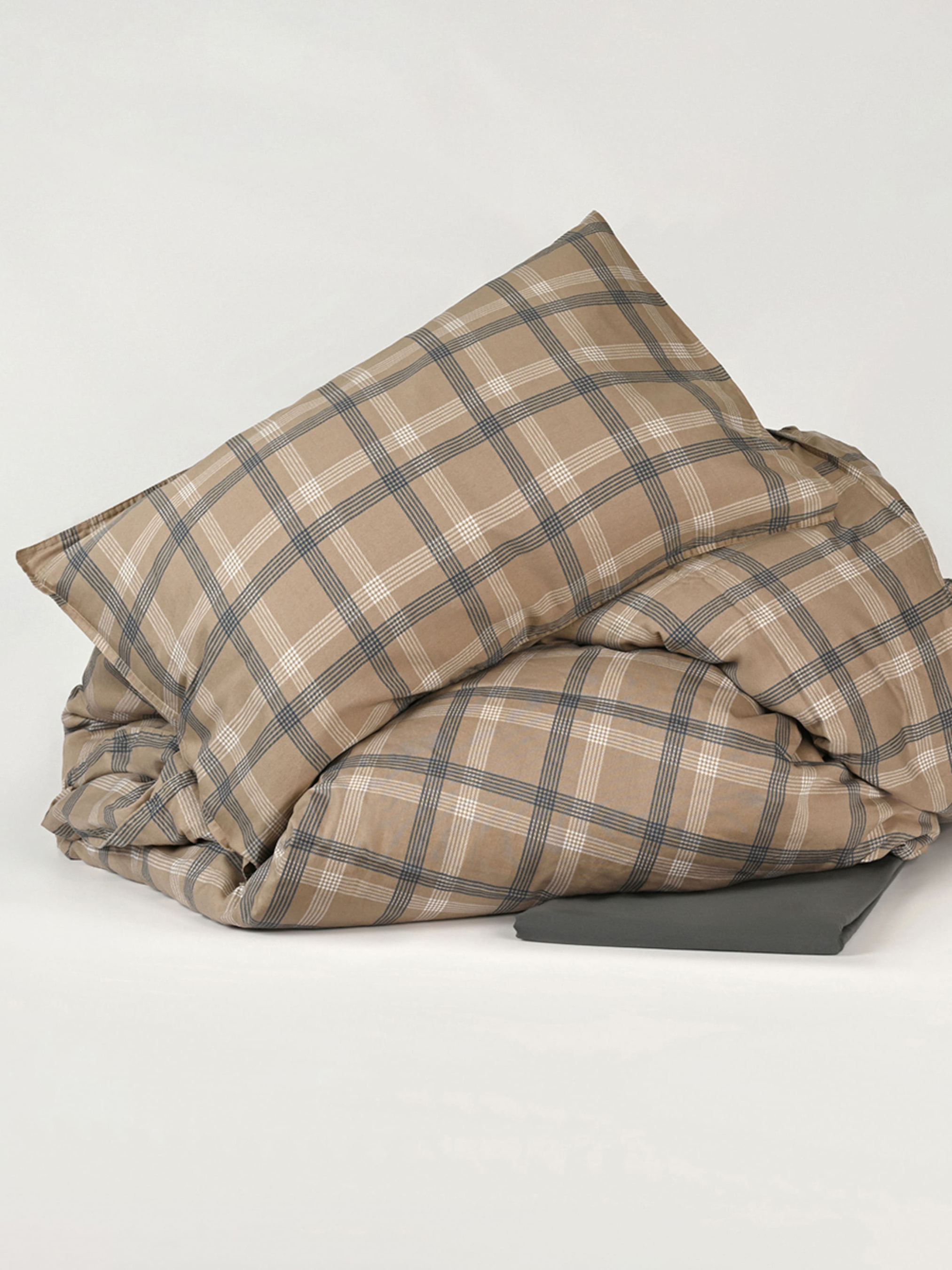 Наволочка "Тартан" из натурального вареного сатина MBM HOME модель BL-P-04 GRAY/BEIGE