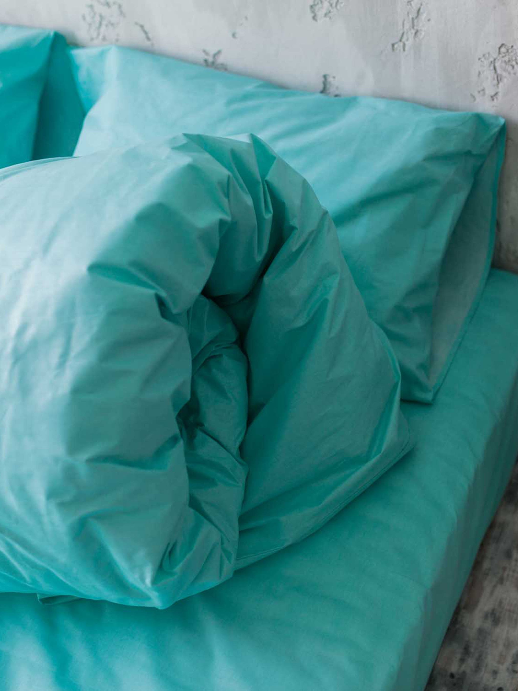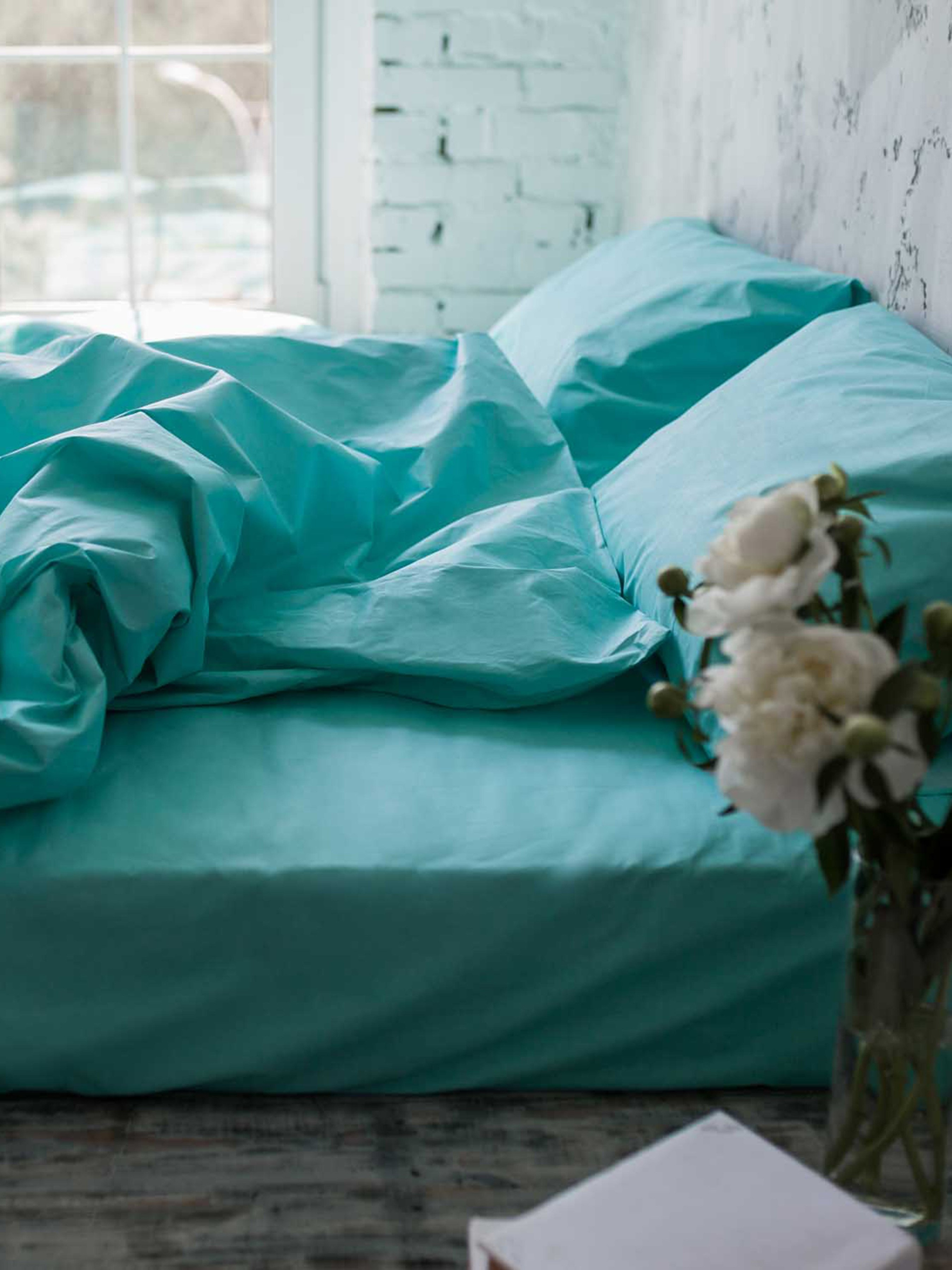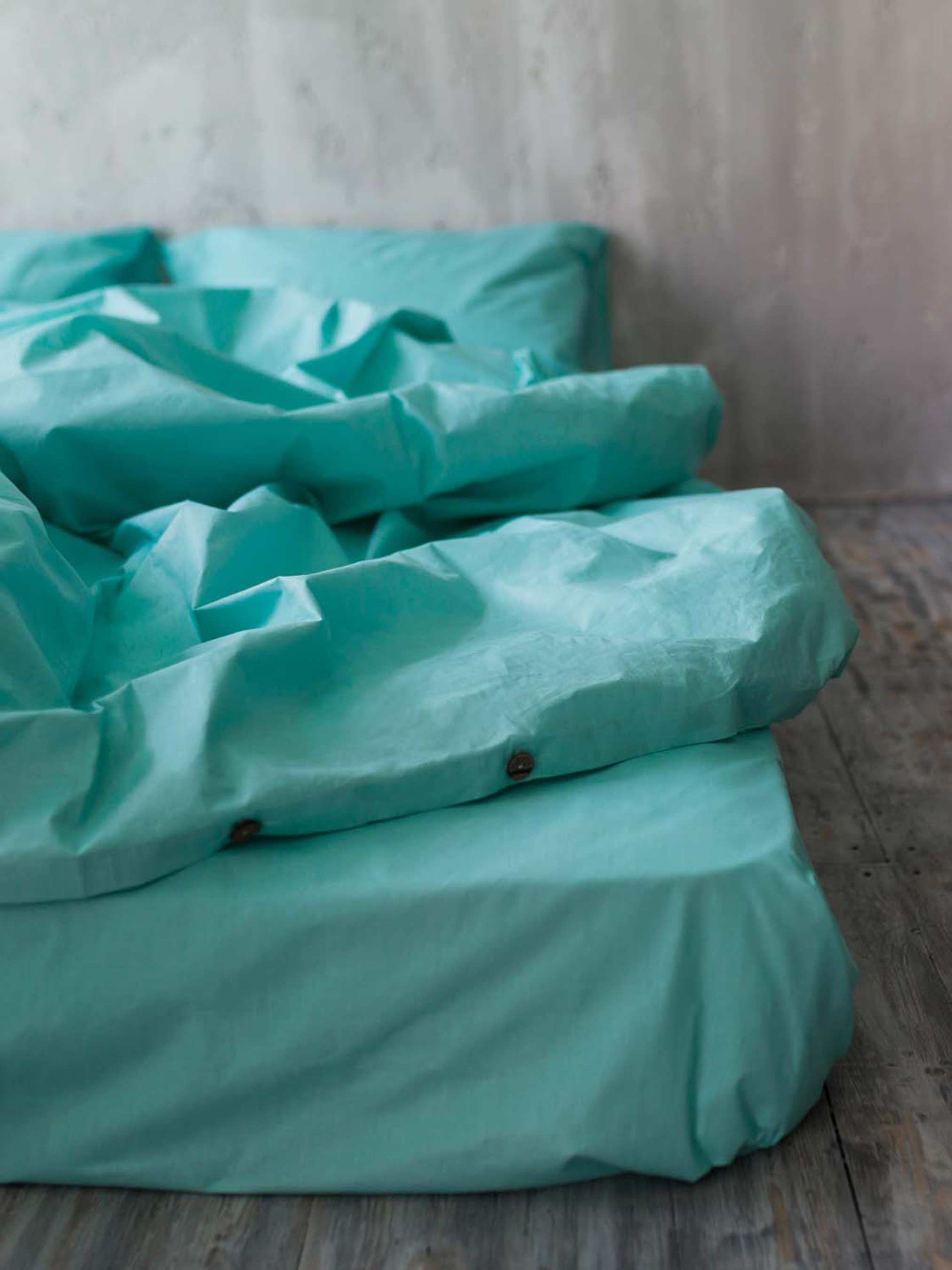 Постельное белье из натурального хлопка ранфорс. Пододеяльник на пуговицах, наволочки с «бортиками» по периметру и глубоким клапаном, надежно фиксирующем подушку. Также наволочки можно заказать без «бортиков». Стандартные наборы комплектуются простынями без резинки, по желанию возможно изготовление простыни на резинке по размеру вашего матраса. На заказ возможен пошив комплекта по индивидуальным размерам! Все комплекты изготавливаются исключительно из 100% натуральных тканей, которые предварительно тестируются на износостойкость. Каждый комплект упакован в фирменный конверт! Состав: 100% хлопок ранфорс Цвет: бирюзовый Размер полуторного комплекта: пододеяльник 150x210 – 1 шт простынь 150x220 – 1 шт наволочка 50x70 – 1 шт Размер двуспального комплекта: пододеяльник 180х210 – 1 шт простынь 200х220 – 1 шт наволочка 50х70 – 2 шт Размер евро комплекта: пододеяльник 200х220 – 1 шт простынь 220х240 – 1 шт наволочка 50х70 – 2 шт Размер семейного комплекта: пододеяльник 150х210 – 2 шт простынь 220х240 – 1 шт наволочка 50х70 – 2 шт