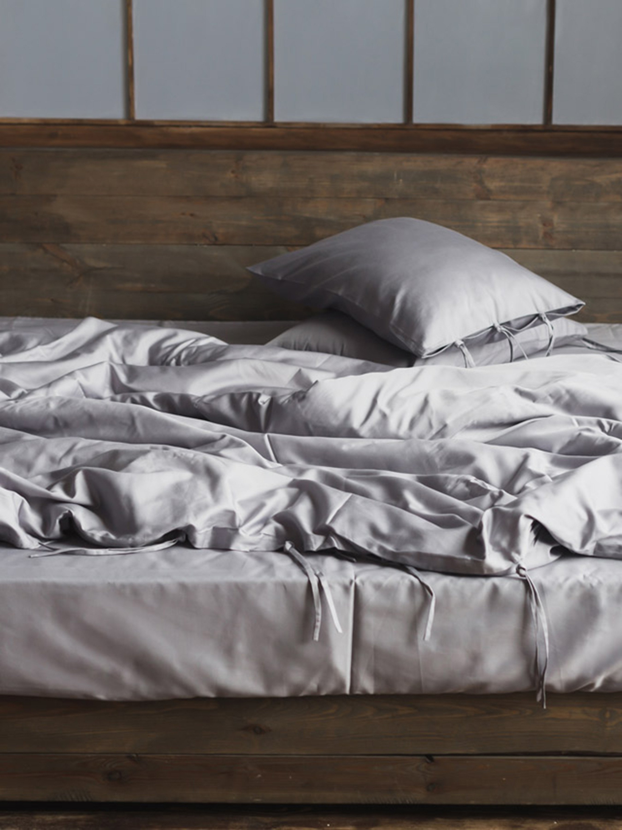 Комплект постельного белья Grey Smoke на завязках с натурального сатина OWLED модель SB1-1001-GSZ