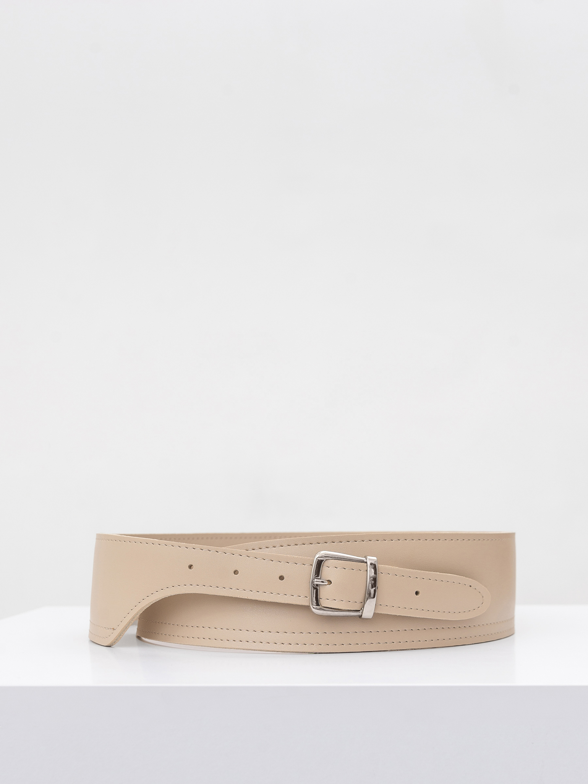 Ремень широкий с утонченными краями ROMASHKA Очень женственный и стильный вариант ремня. Комбинировать его можно с пиджаками, платьями или свитерами. Аксессуары стоит выбирать также в серебряном цвете, что картина образа была целостной. Ремень станет отличным дополнениям образа. Выполнен из эко-кожи. Фурнитура в серебряном цвете. Выполнен из эко-кожи. Фурнитура в серебряном цвете. Размеры: длина 106 см, ш ирина 6,5 см в самом широком месте и 2,5 см - на сужении Подойдет на талию 71 80 см