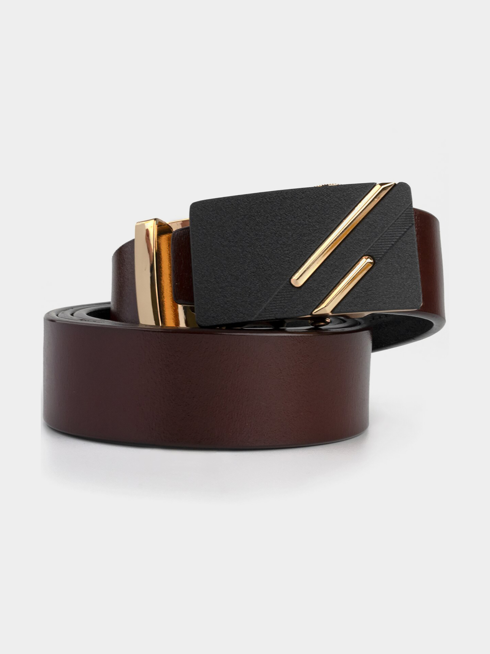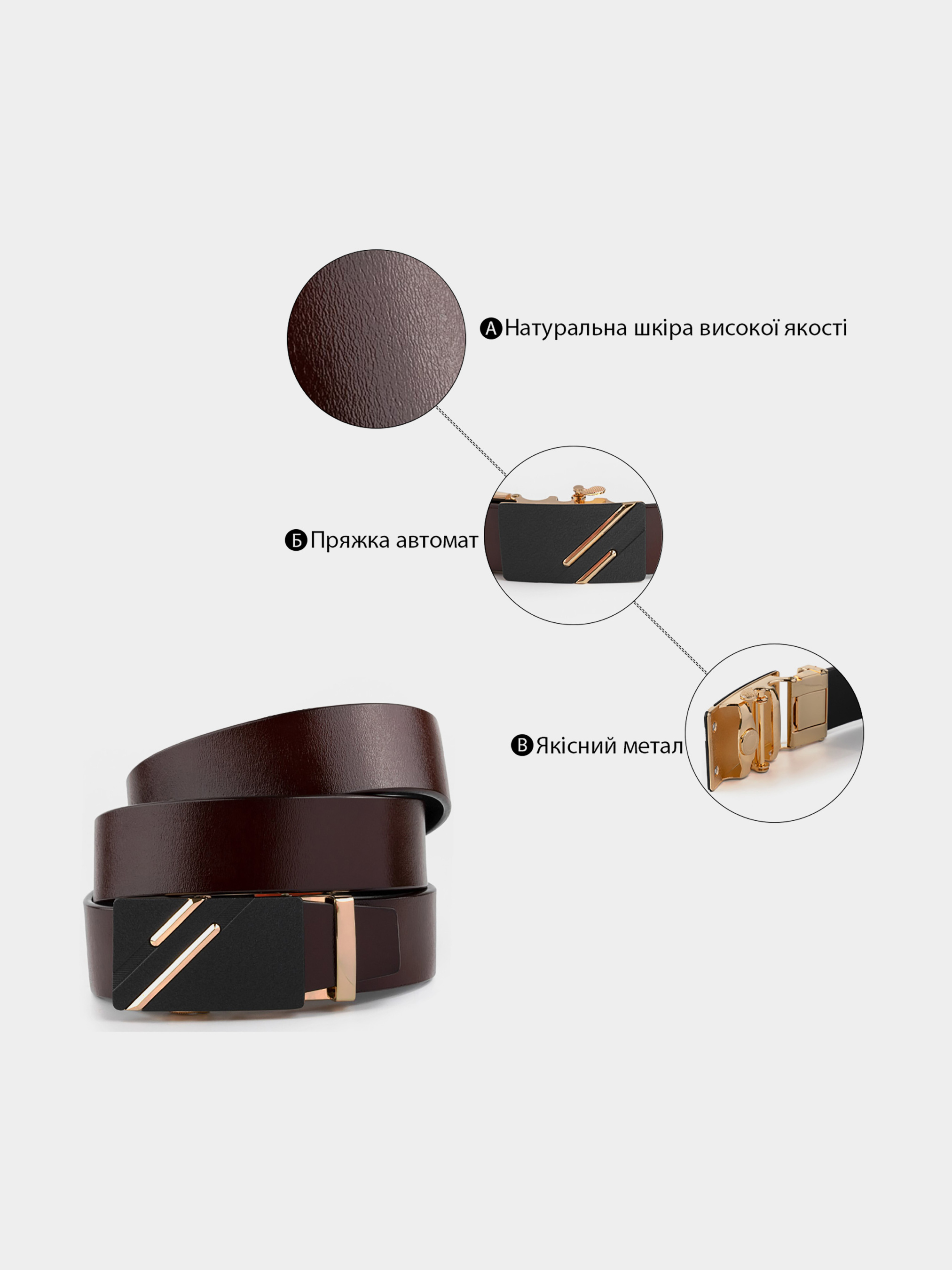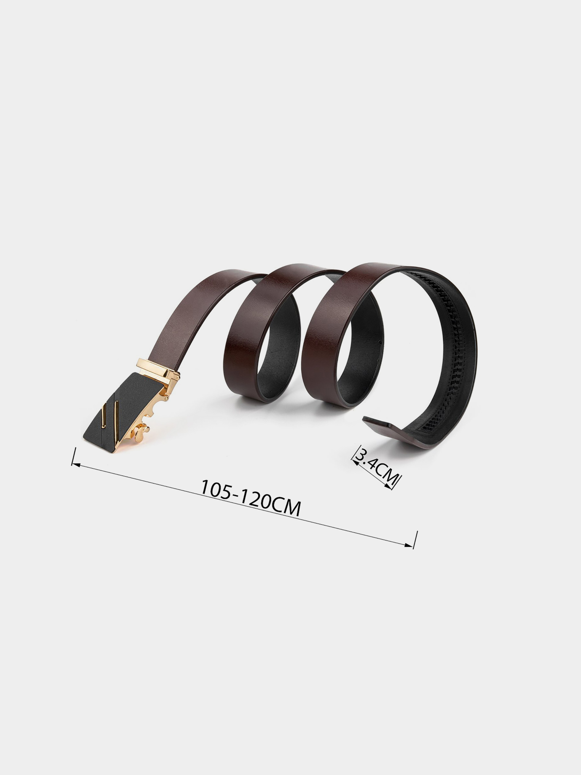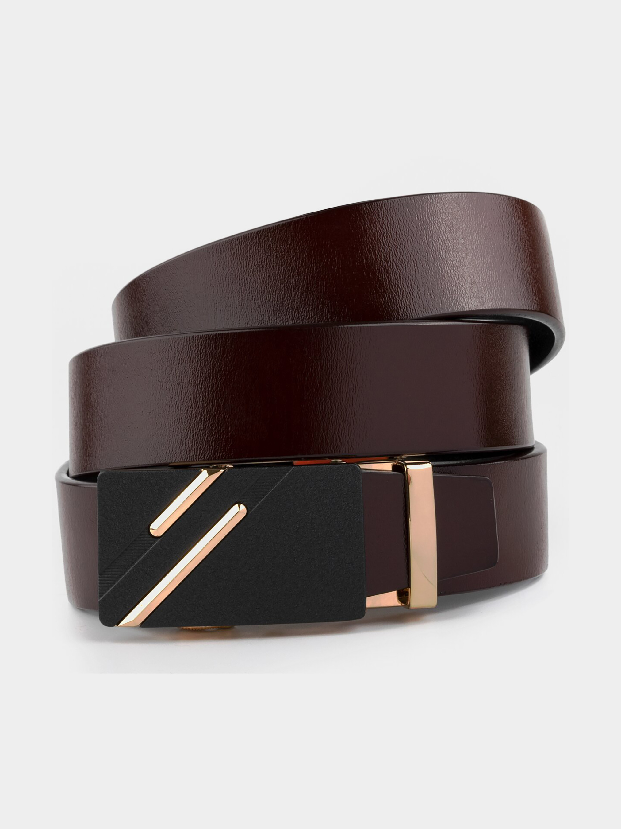 Материал: натуральная кожа высокого качества; Размер: ширина 3,4 см; Цвет: коричневый; Длина: 105-120 см (регулируется в меньшую сторону) Страна производитель: Китай. Кожаный мужской ремень насыщенного коричневого цвета. Изделие красиво переливается на солнце. Стильный ремень - неотъемлемая часть мужского гардероба. Изделие выполнено из цельного полотна и прослужит вам далеко не один год. Пряжка выполнена из крепкого сплава золотистого цвета с черной заливкой и золотистыми диагональными полосками. Автоматическая пряжка очень проста в эксплуатации. Ремень не привязывает вас к определенной обуви. По качеству аксессуар ничем не уступает дорогим брендам, но при этом стоит значительно дешевле. Уверены, что ремень покорит любого мужчину. Рекомендуем вам данную модель, если вы находитесь в поиске качественного повседневного ремня.