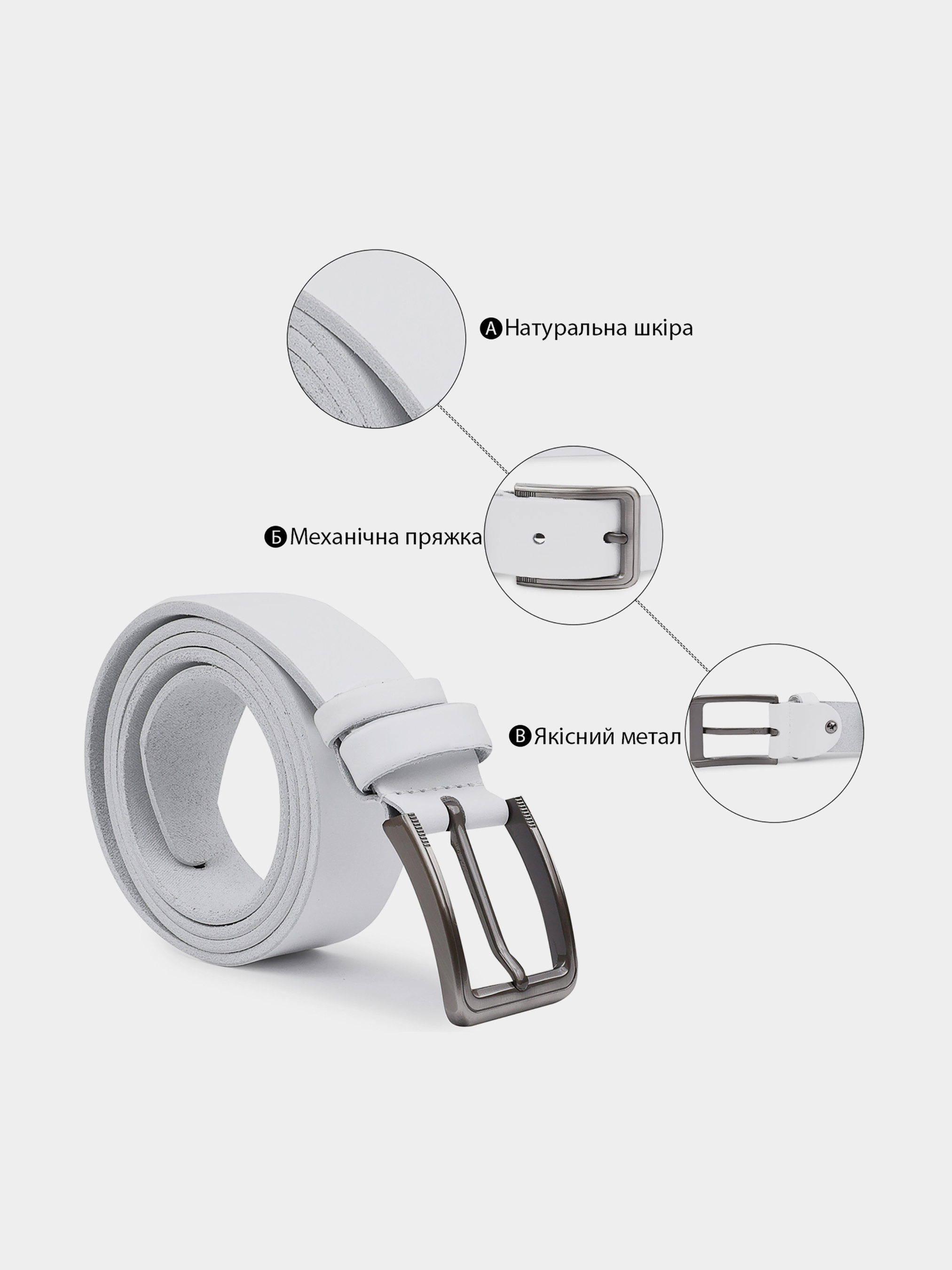 Материал: натуральная кожа. Цвет: белый. Размер: ширина 3,5 см; Длина: 127 см ; Страна производитель: Украина. Бренд: Vintage. Замечательный мужской ремень в белом цвете с гладкой приятной на ощупь фактурой. Материал изготовления натуральная высокопрочная кожа, качество которой на самом высоком уровне. Пряжка имеет лаконичный неброский дизайн и классический механизм. Такой ремень станет хорошим подарком дорогому человеку.