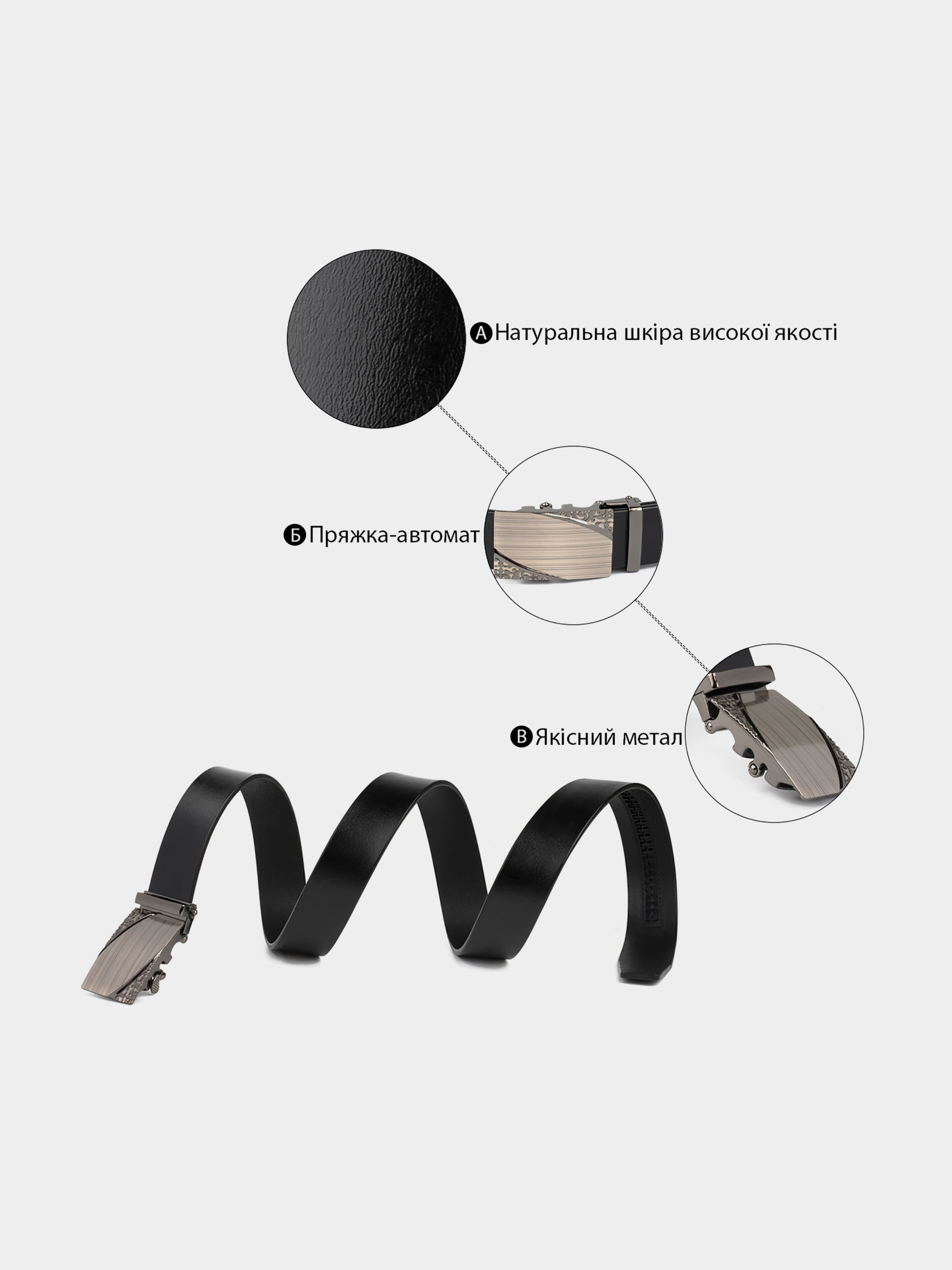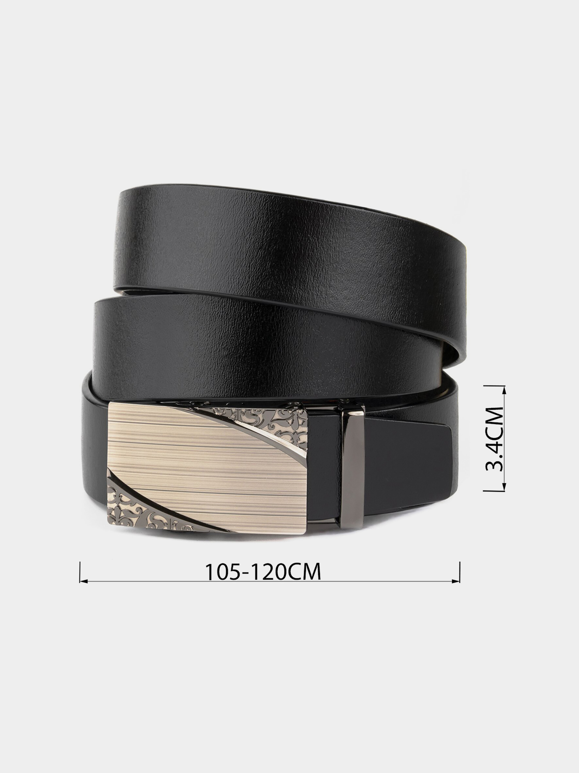 Материал: натуральная кожа высокого качества; Размер: ширина 3,4 см; Цвет: черный; Длина: 105-120 см (регулируется в меньшую сторону) Страна производитель: Китай. Оригинальный и качественный мужской ремень из 100% натуральной кожи. Изделие выполнено из цельного полотна. По качеству ремень ничем не уступает дорогим брендам. Аксессуар имеет оригинальную пряжку с узором. Ремень подойдет как для мужчины так и для женщины. Пряжка автоматического типа очень удобная и практичная. Кожаный ремень - лучший выбор для подарка близкому человеку.