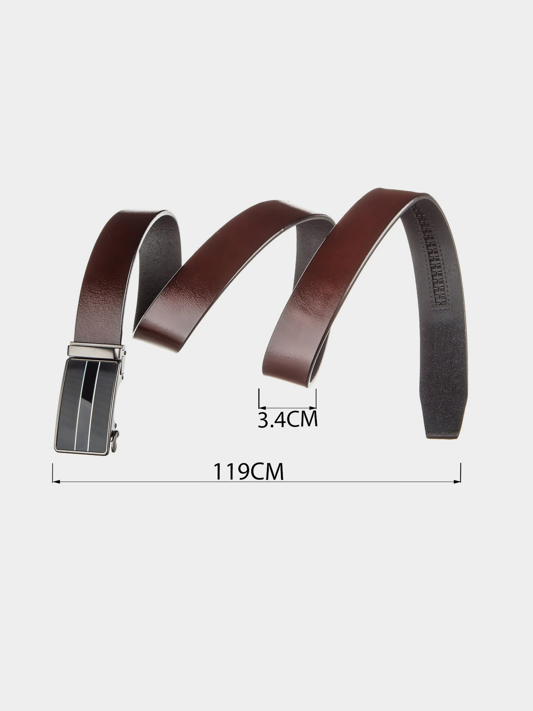 Материал: натуральная кожа; Размер: ширина 3,4 см; Цвет: коричневый; Длина: 119 см. Страна производитель: Китай. Солидный кожаный ремень с автоматической пряжкой специально для деловых мужчин. Ремень прекрасно дополнит и завершит ваш деловой образ. И добавит строгости. Полотно высокого качества. Производство ремня фабричный Китай. Если вы любите качественные и стильные вещи рекомендуем вам данный ремешок. В нашем магазине вы сможете также заказать подарочную упаковку. Кожаный ремень нужный подарок для любого мужчины.