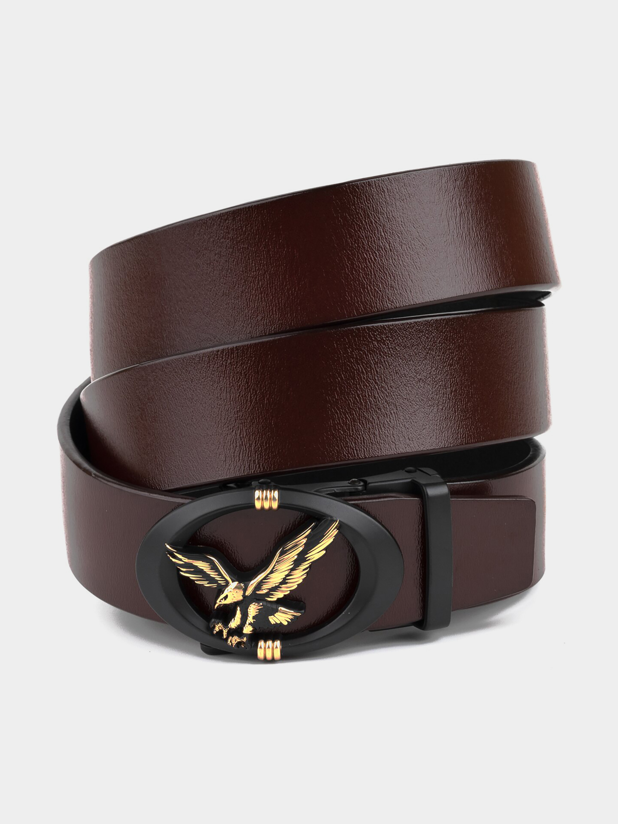 Материал: натуральная кожа высокого качества; Размер: ширина 3,4 см; Цвет: коричневый; Длина: 105-120 см (регулируется в меньшую сторону) Страна производитель: Китай. Качественный мужской ремешок из натуральной кожи. Модель из цельного полотна обладает оригинальным дизайном, продуманным до мелочей, с учетом всех модных тенденций. Полотно ремня и пряжка красиво переливаются на солнце, что добавляет изделию особого шарма. Дополнен ремень овальной пряжкой черного цвета с силуэтом орла. Пряжка добавляет ремню оригинальности и не оставит равнодушным. Производство - фабричный Китай высокого качества. Модель подойдет как под брюки так и под джинсы и добавит завершенности вашему образу. Мы уверены на 100%, что аксессуар прослужит далеко не один год. Рекомендуем к покупке данный ремешок.