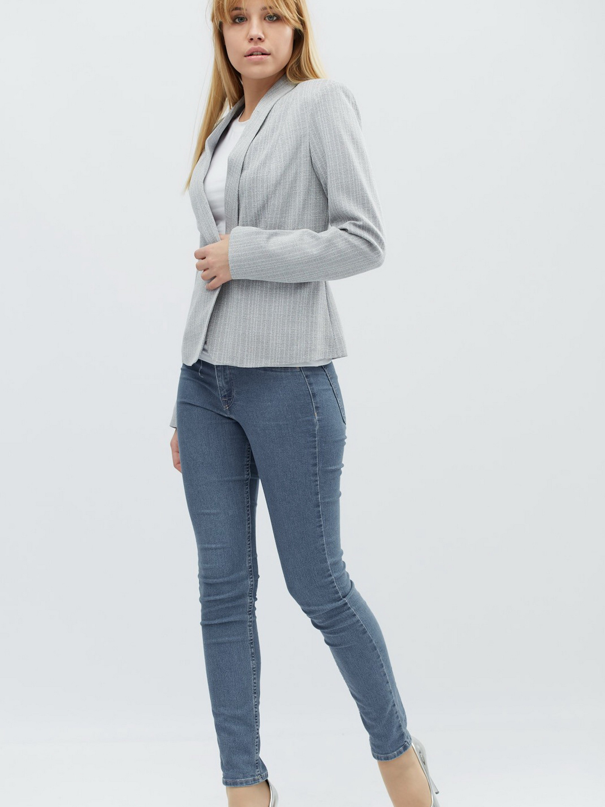 Комфортный жакет в деловом стиле. Модель прилегающего силуэта. Изделие выполнено из мягкой костюмной ткани, приятной к телу. Горловина оформлена отложным воротником.Спереди застегивается на пуговицу. По бокам – прорезные карманы. Рост модели на фото: 168 см.