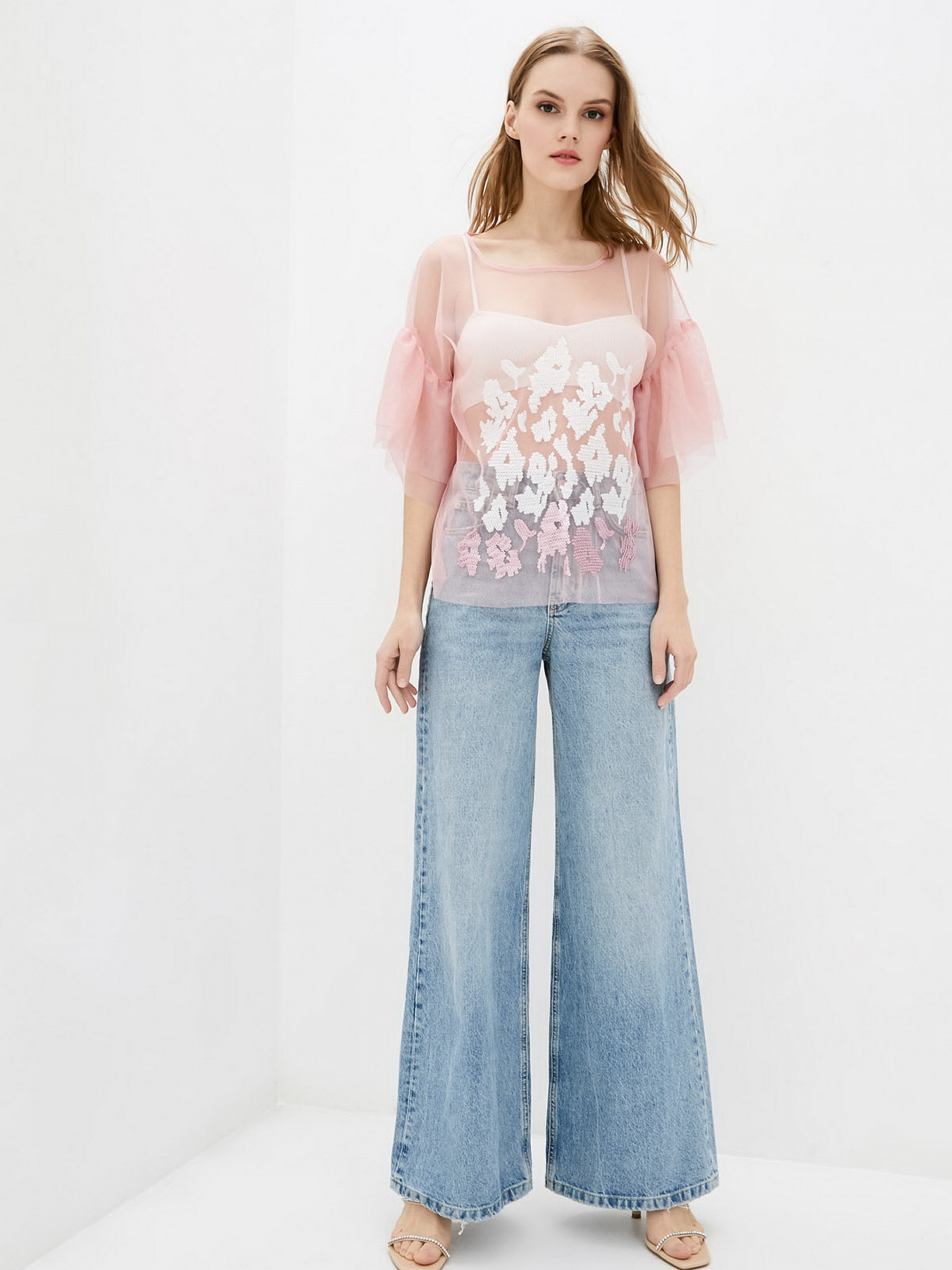 Блуза из сетки - это прекрасный вариант для создания многослойных и интересных образов. Изделие выполнено из тонкой сетки, декором выступает авторский принт в виде пайеток. Состав: polyester 75%, viscose 20%, elastane 5%. Параметры размеров: Охват груди: XS - 84; S - 88; М - 92; L - 96; XL - 100. Охват талии: XS - 64; S - 68; М - 72; L - 76; XL - 80. Охват бедер: XS - 92; S - 96; М - 100; L - 104; XL - 108. Размер на модели S.