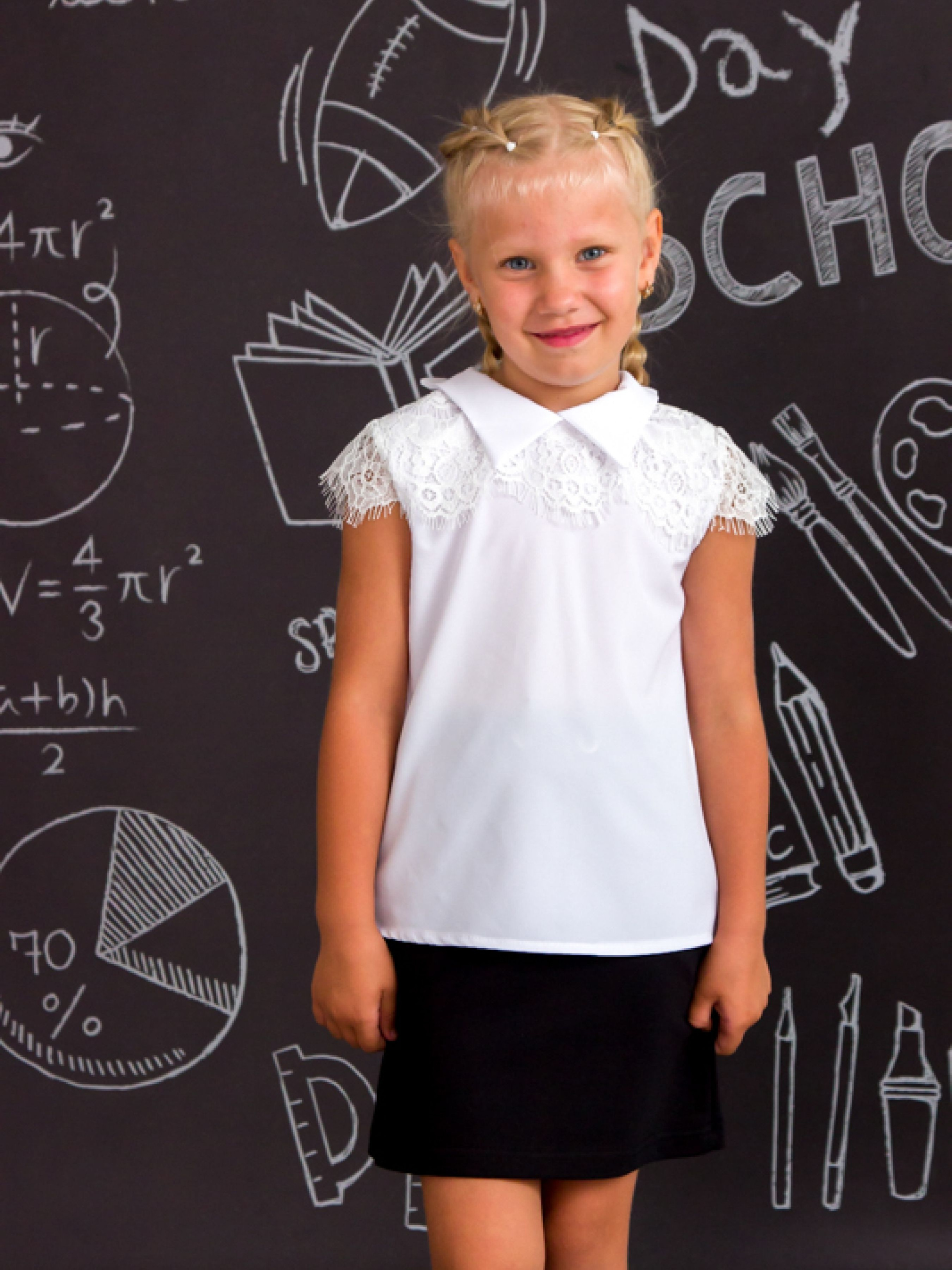 Полотно: софт Зріст: 122-164 У гардеробі кожної школярки повинен бути класичний комплект одягу для урочистих випадків: білий верх і темний низ. Він стане безпрограшним варіантом на будь-якому шкільному святі виступі і навіть просто в важливий особливий день. Спеціально для дівчаток майстри української компанії Носи Своє створили безліч прекрасних моделей білих блуз серед яких ви неодмінно знайдете свою. Блуза з рукавом «крильце» і бантом по заду виріб виглядає дуже ошатно в той же час стримано і елегантно. Для пошиття використовувався якісний приємний на дотик софт на основі віскози з додаванням волокон лайкри для стійкості до зношування. На лицьовій стороні розташована ніжна мереживна кокетка яка створює настрій і стає завершальним акцентом. Догляд: софт рекомендується прати руками. Температура води при пранні не повинна перевищувати 40 ° щоб на матерії не утворювалися складки і заломи її краще сушити в розправленому вигляді. Прасують вироби з цієї тканини з виворітного боку не дуже гарячою праскою. Інтернет-магазин Носи Своє пропонує покупцям доступні ціни і регулярні знижки. Вивчайте наш каталог вибирайте потрібну річ і радуйте себе цікавими фасонами і соковитими фарбами!