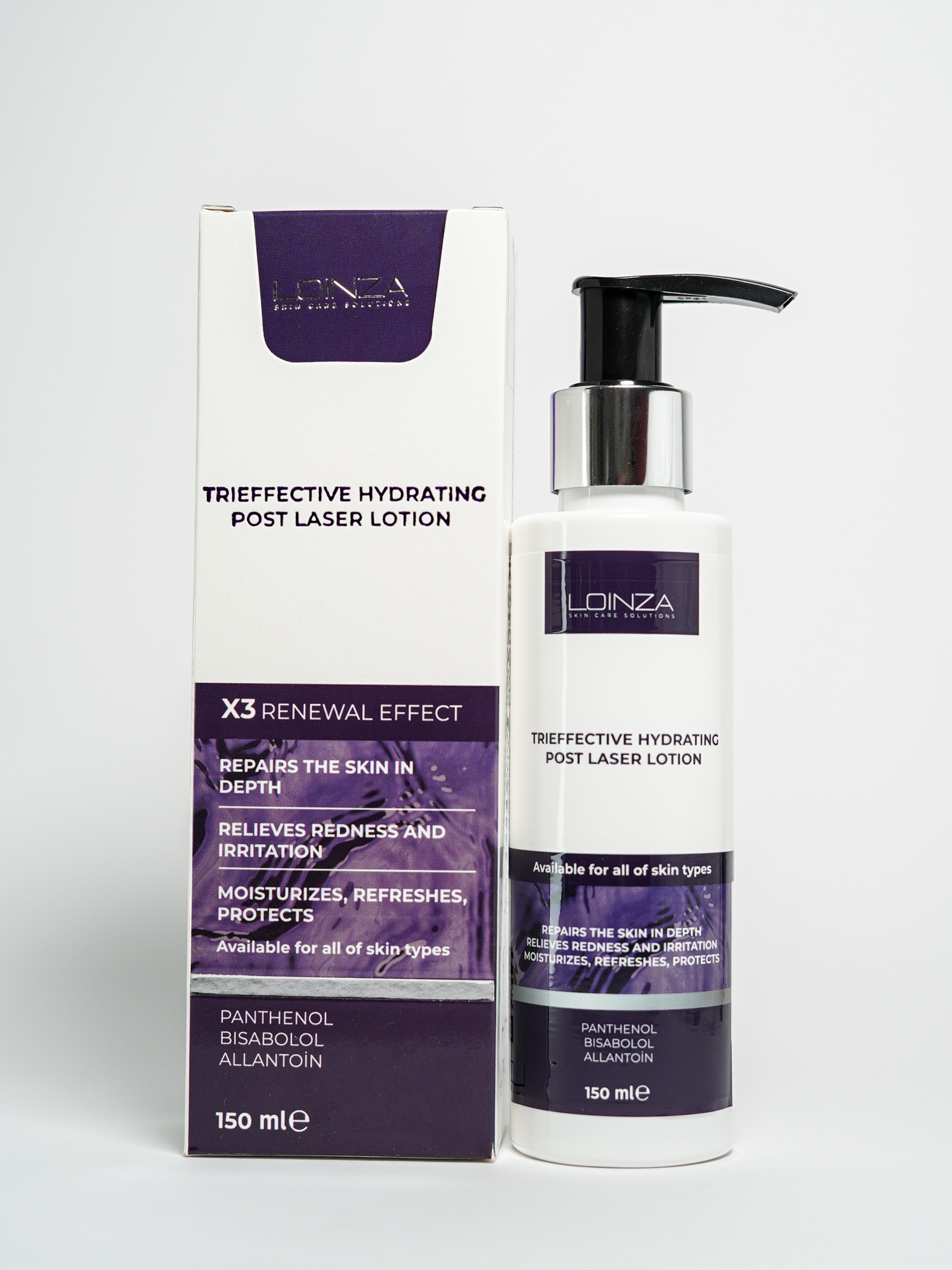 Линейка ухода LOINZA включает: увлажняющий гель для умывания, различные сыворотки для кожи лица и шеи, пилинг и реиноловый серум, солнцезащитный крем, несколько лосьонов для ухода за кожей тела, в том числе – отбеливающий и лосьон после лазерной эпиляции. Косметика LOINZA подходит как для салонного, так и для домашнего ухода.