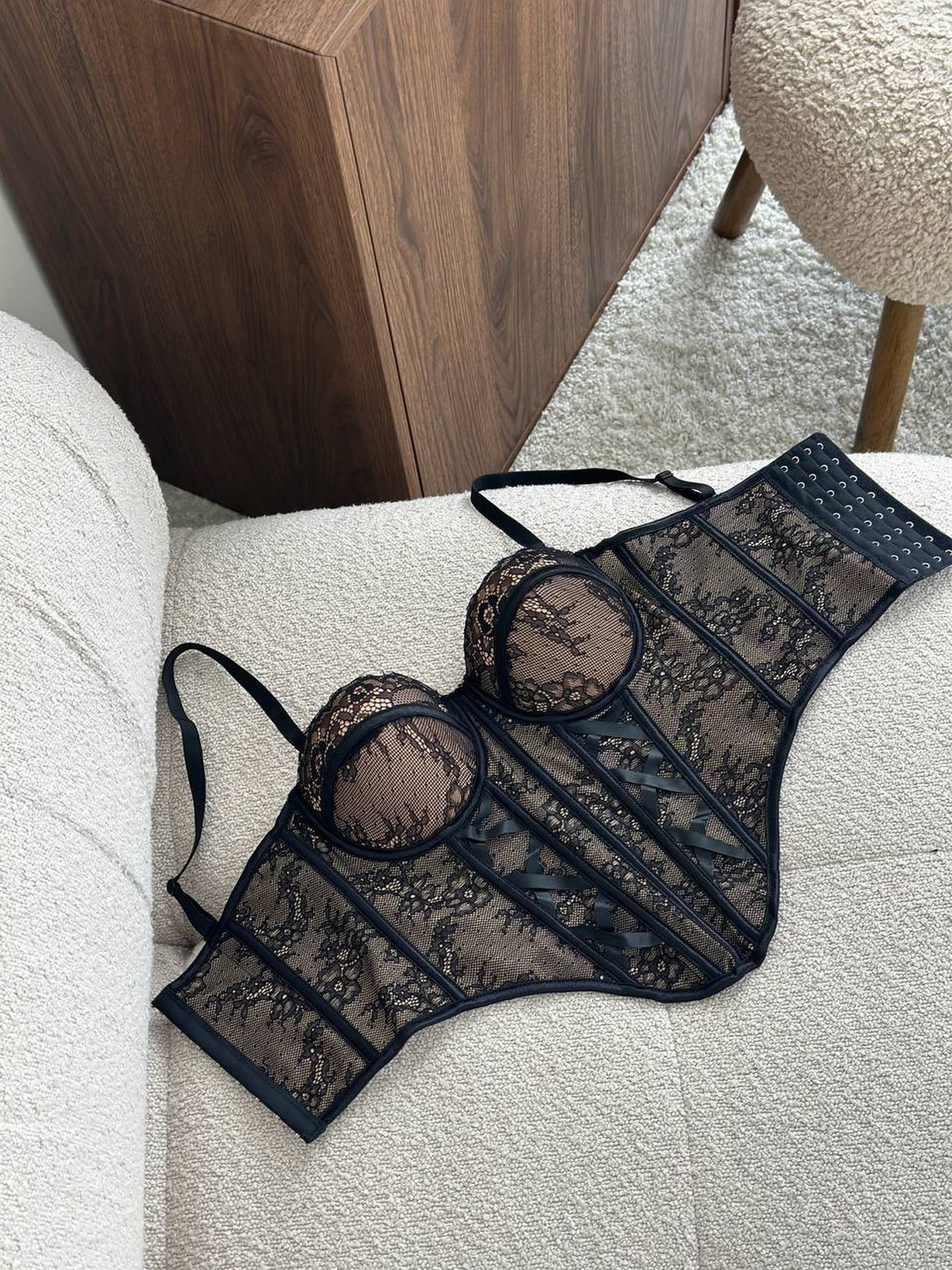 Корсет, который легко становится частью обыденного образа. Утонченный, женственный и очень актуальный – тот самый элемент, делающий образ сильнее без лишних слов. Кружевной корсет с четкой конструкцией и изящными линиями. Бюст на косточках с поролоновой чашкой красиво подчеркивает грудь. Кружево добавляет легкости и эстетики. Идеально сочетается с джинсами, брюками с высокой посадкой или юбками. Размерная сетка: 34B: грудь 83-89, чашка А/В под грудью 75 см 36B: грудь 88-94, чашка В/С, под грудью 80 см 38C: грудь 93-98, чашка В/С, под грудью 86 см 40C: грудь 98-103, чашка С, под грудью до 92 см