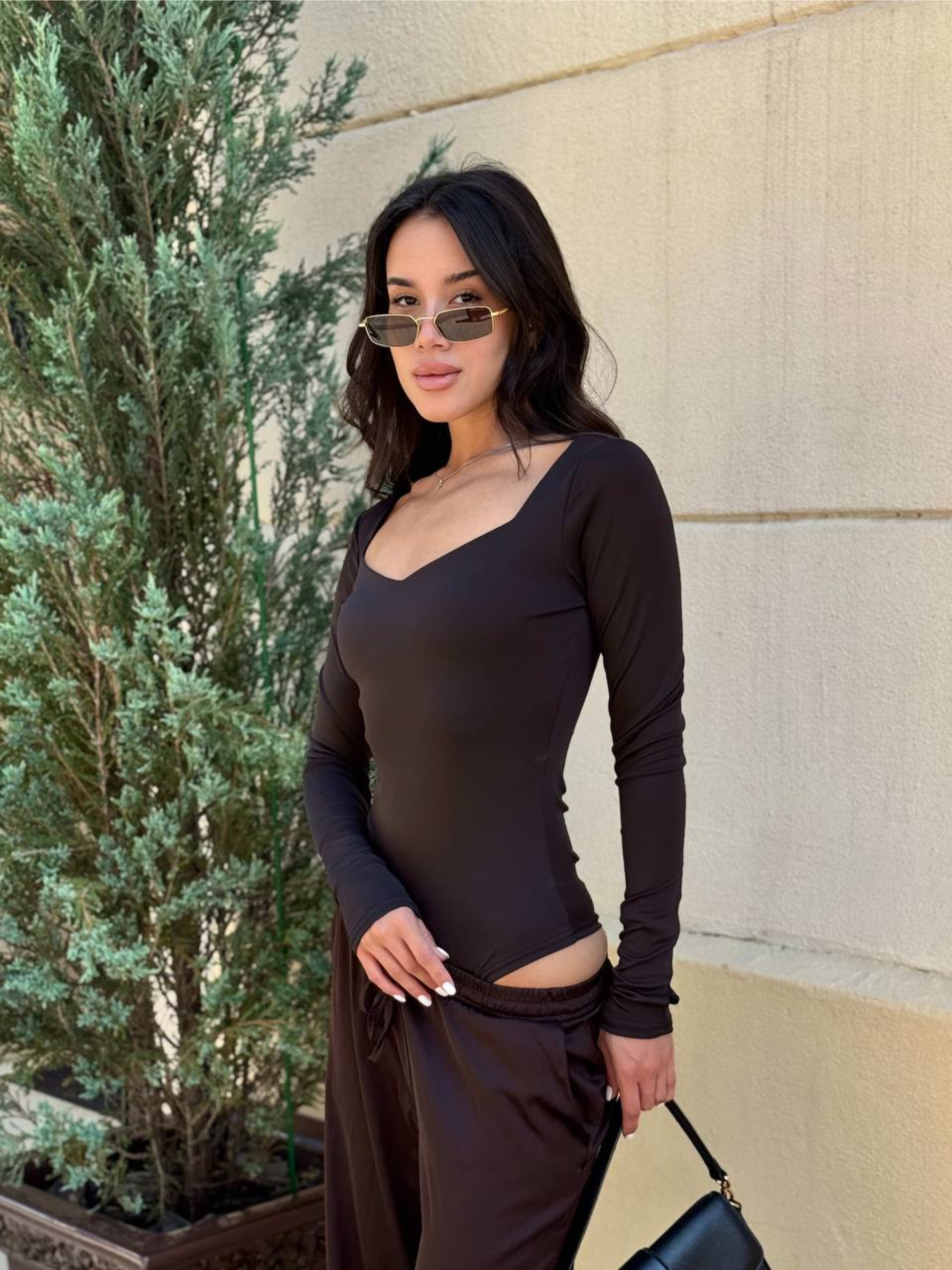 Жіночий базовий боді з розрізом для пальців, Коричневий Uaclothes (like15137) модель like15137-korichnevj
