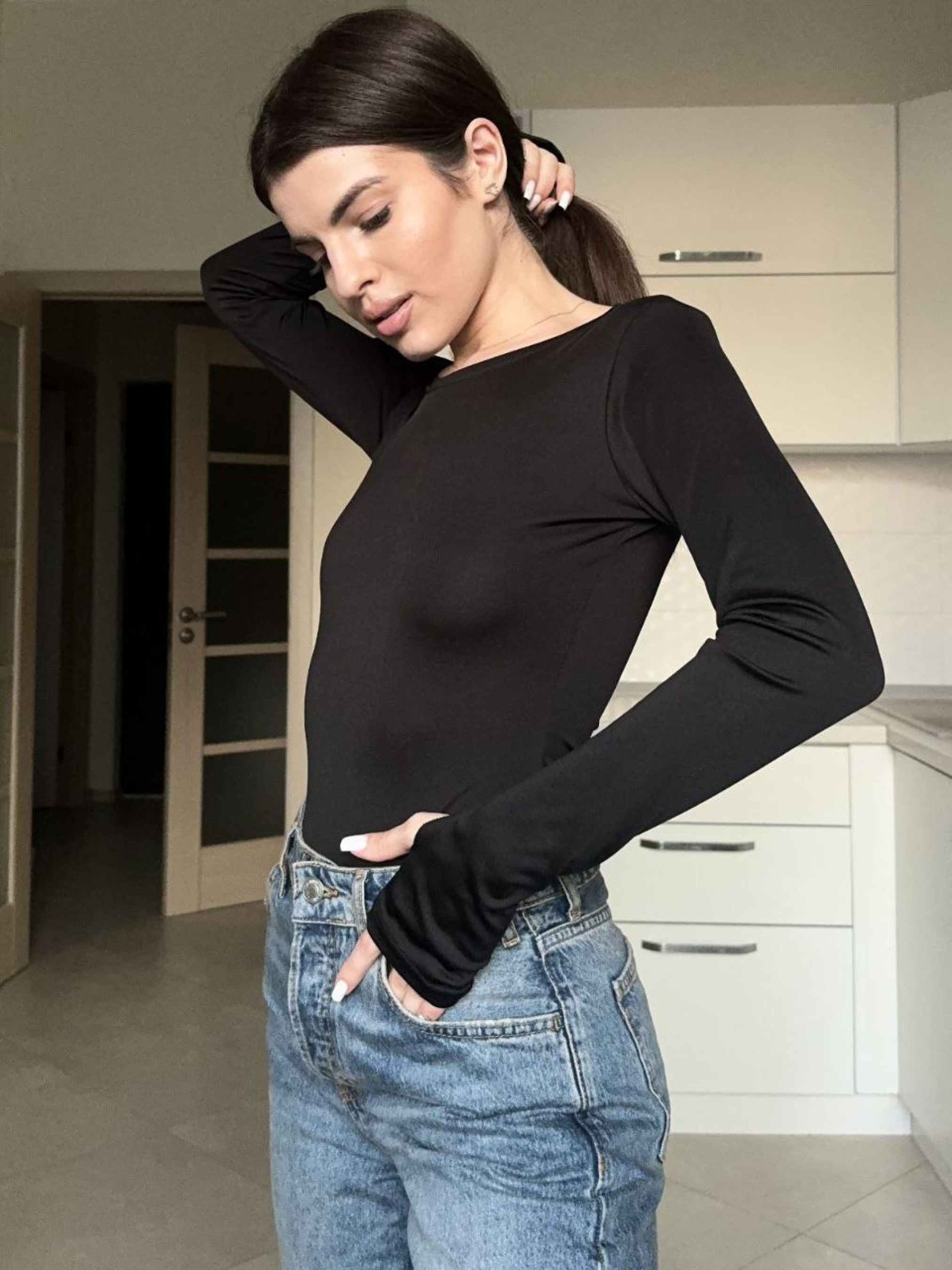 Жіночий базовий однотонний боді з рукавом, Чорний Uaclothes (like15954) модель like15954-chernj
