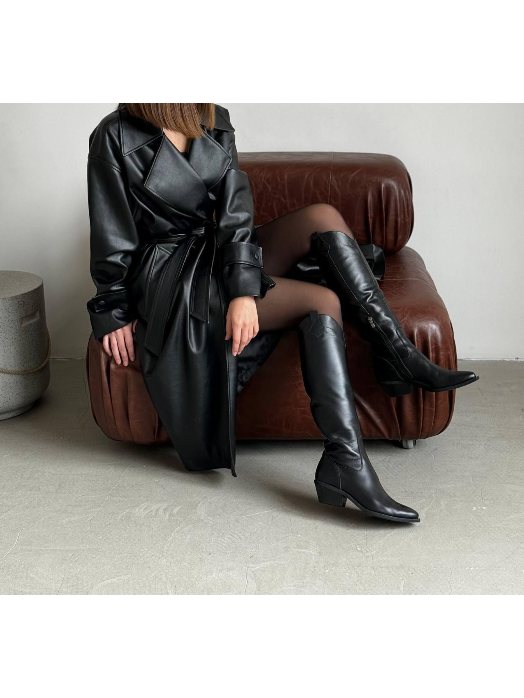 Женские кожаные казаки Черные на басне (529) модель P_1098-S36_1098