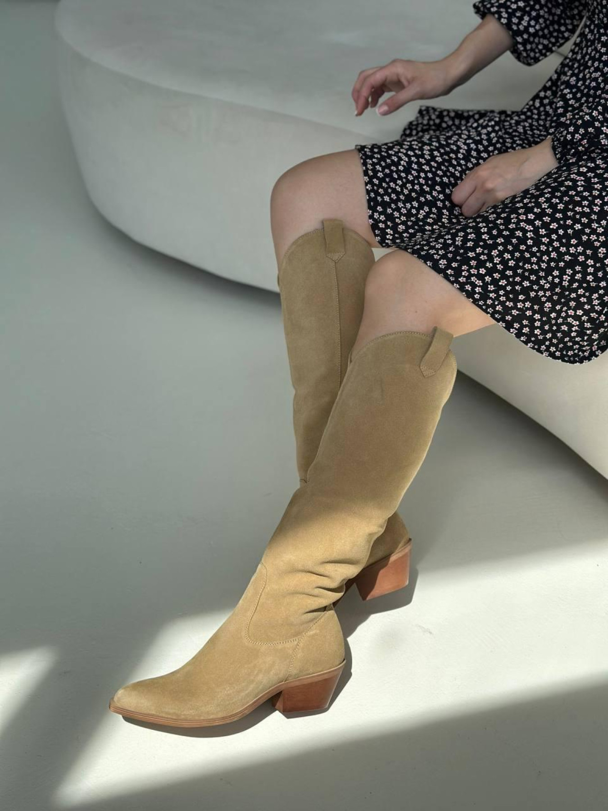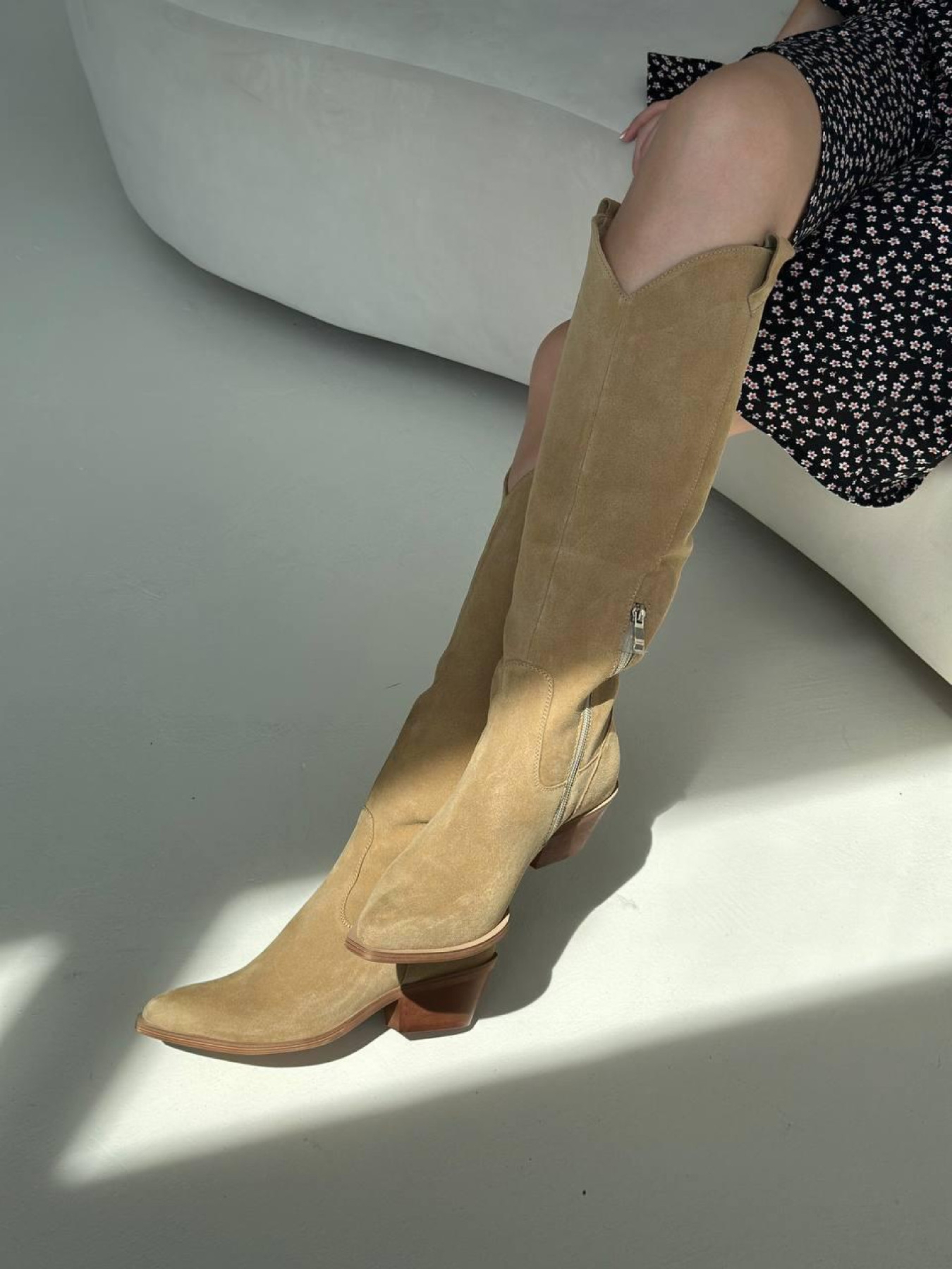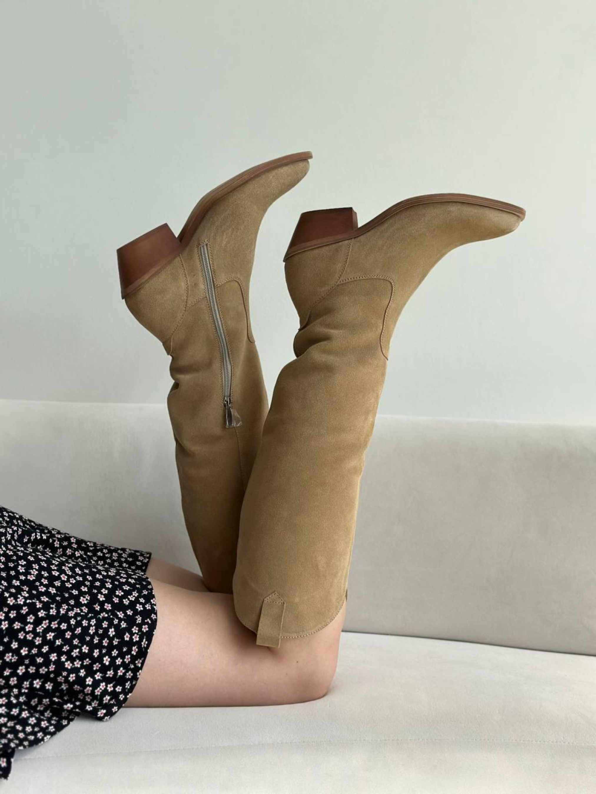 Хит продаж снова в наличии — теперь на стильной светлой подошве. Казаки выполнены из мягкой натуральной замши в тёплом оттенке кемел, оснащены устойчивым каблуком 5,5 см и удобной колодкой. На выбор доступны два варианта подкладки: байка или натуральная кожа — под любой сезон. Стильный силуэт, трендовый цвет и идеальная посадка делают эту модель абсолютным фаворитом. Характеристики (RU): Материал: натуральная замша Цвет: кемел Подкладка: натуральная кожа Подошва: светлая, тунит Высота голени без подошвы: 45 см Высота каблука: 5,5 см Обхват голени: 36–37: 36 см 38–39: 36,5 см 40–41: 37 см (529/10140)