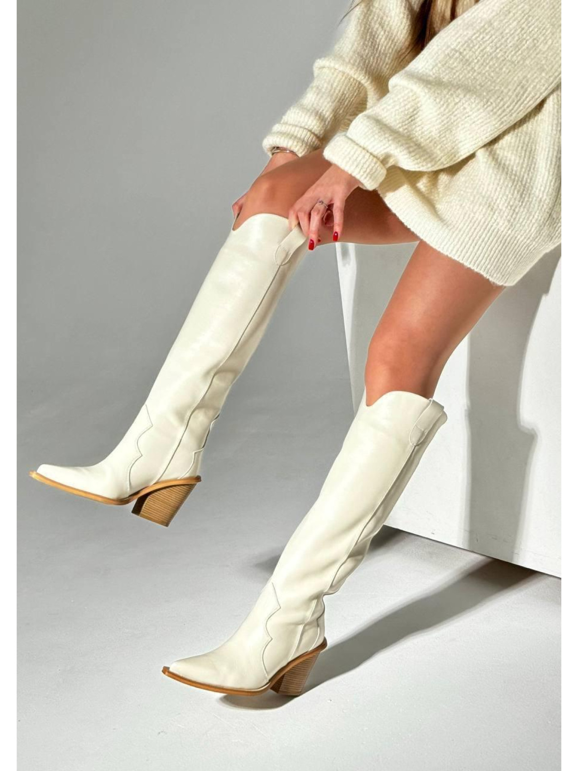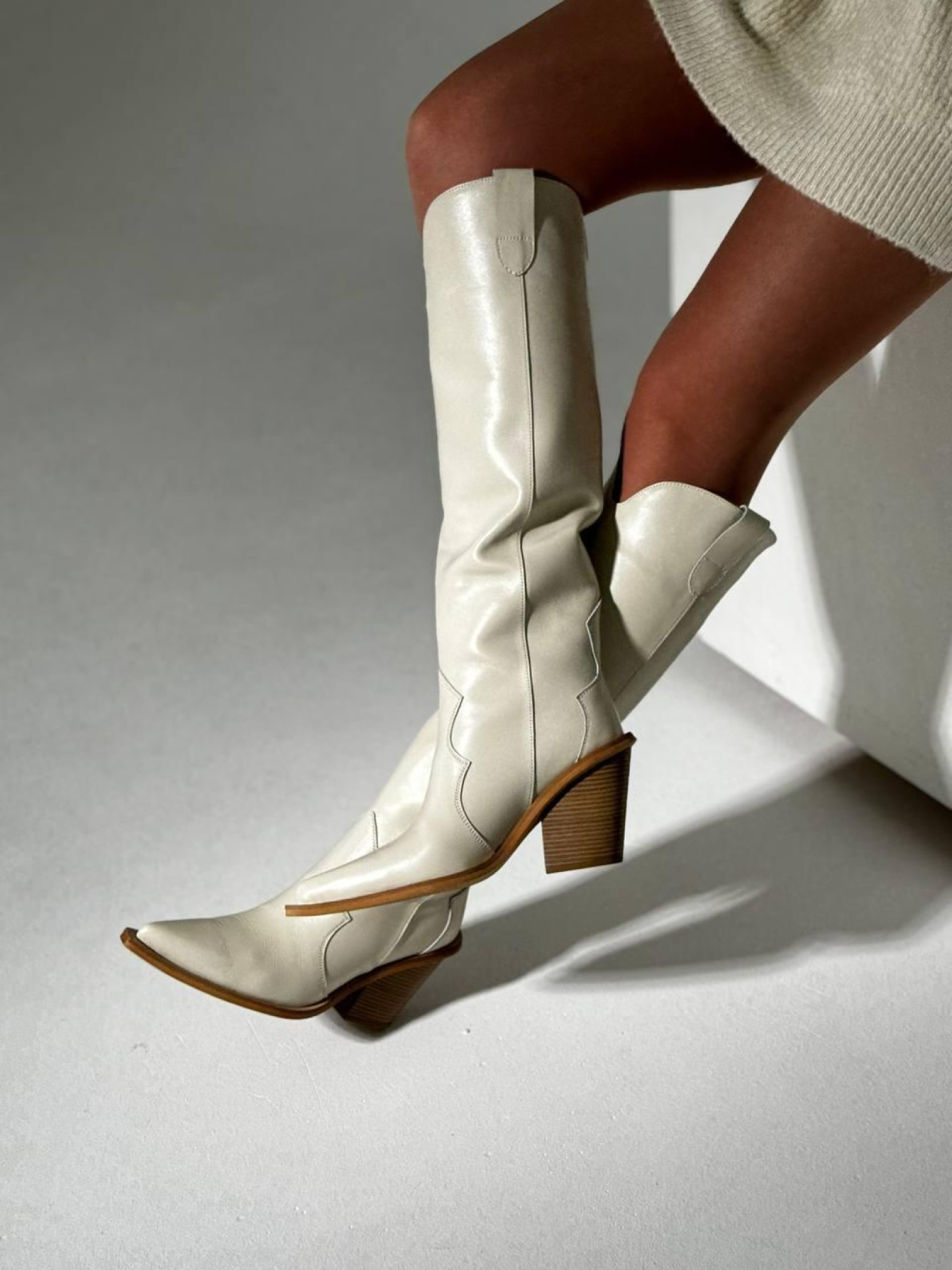 Невероятная новинка сезона! Элегантные высокие казаки с острым носком из премиальной натуральной кожи. Внутри — мягкая кожаная подкладка для максимального комфорта. Модель без застёжки на колодке «лёгкое обувание» легко надевается и сохраняет форму. Идеально подходит для стильных повседневных образов и особых случаев. Характеристики (RU): Материал верха: натуральная кожа Подкладка: натуральная кожа Цвет: бежевый (Boston Beige) Носок: острый Каблук: 8 см Размеры: 36–40 Высота по заднему шву: 37 см Высота по боковому шву: 46 см Обхват голени по внешней части: 36 см Модель без застёжки, колодка «лёгкое обувание»