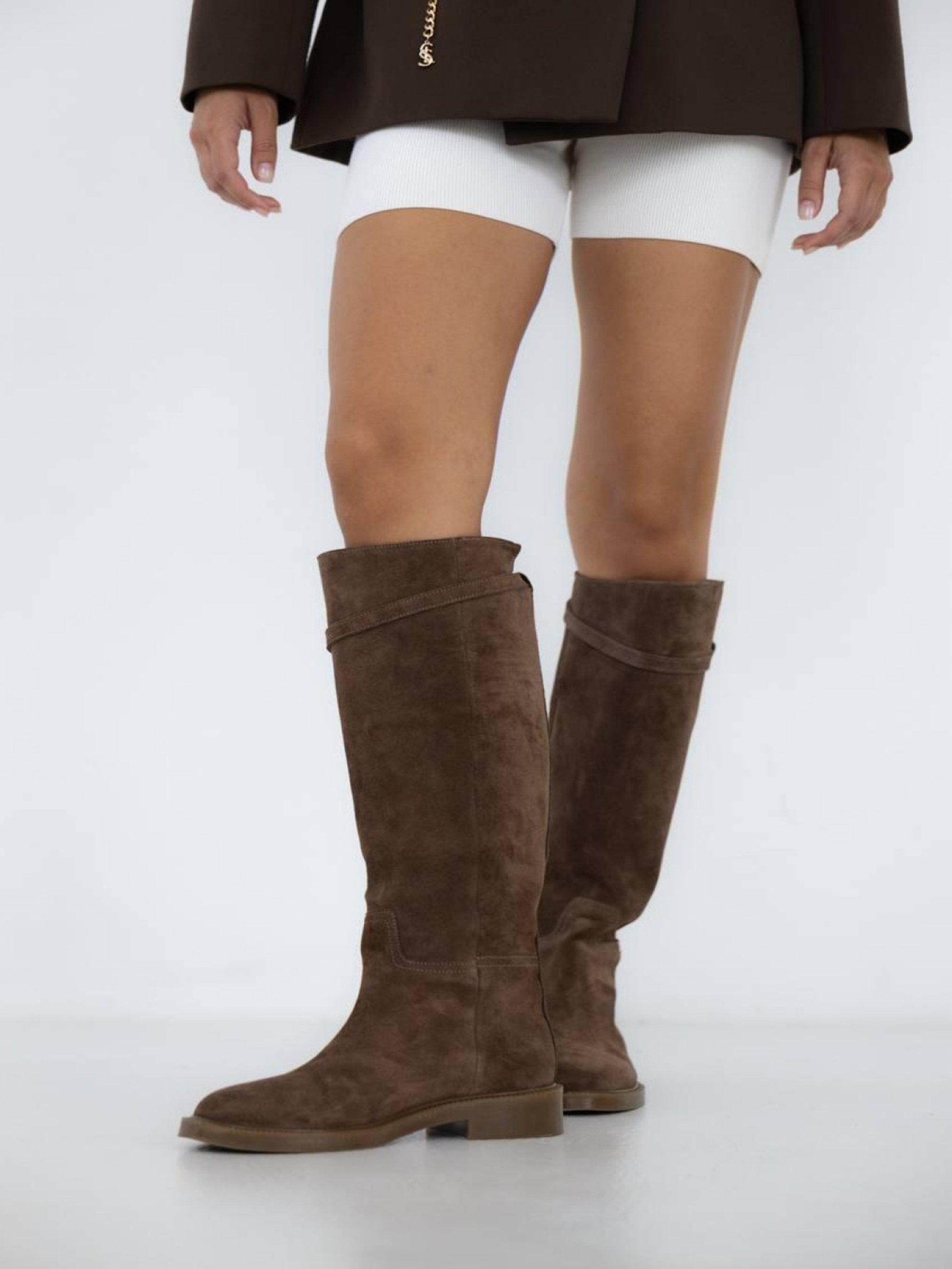 Высокие сапоги-трубы из натуральной замши в тёплом оттенке toffee — элегантная и универсальная модель на каждый день. Мягкая фактура замши придаёт образу глубину, а аккуратный ремешок добавляет изысканный акцент. Удобная колодка и оптимальная высота обеспечивают комфорт, а меховая подкладка делает пару идеальной для холодного времени года. Настоящий must-have для продуманного базового гардероба. Характеристики: Модель: сапоги-трубы Материал верха: натуральная замша Цвет: toffee Подкладка: мех Декор: ремешок Стиль: классика, минимализм Сезон: зима