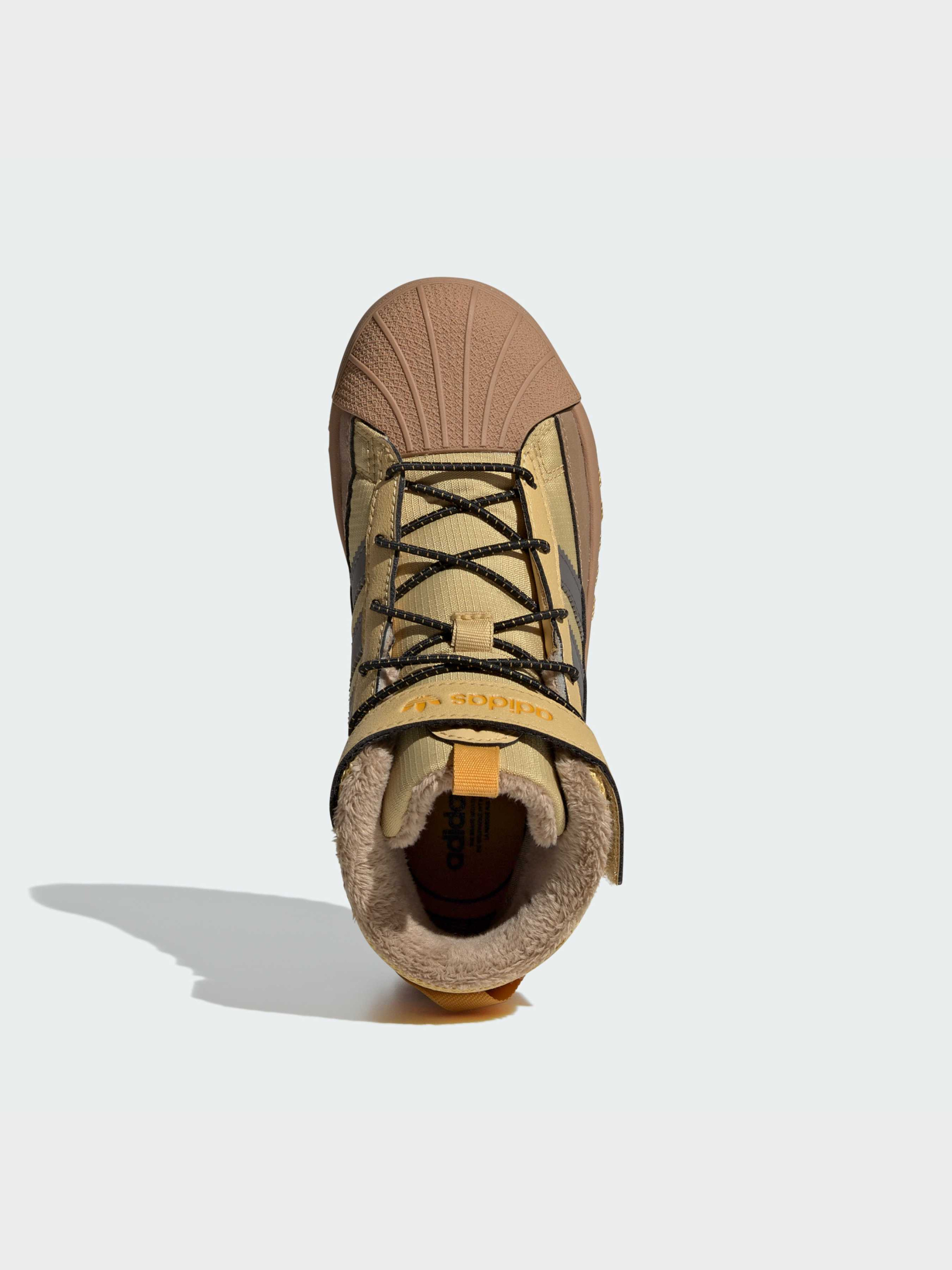 Маленькие любители приключений теперь могут исследовать зимние страны чудес в культовом стиле. Эти детские кроссовки adidas Superstar Winter Trek обеспечивают уют и комфорт для маленьких ножек. Внутренний ботинок защищает от дождя и снега, а прочная подошва надежно держится на скользкой поверхности. Эластичные шнурки и ремешок облегчают надевание и снятие ботинок замерзшими пальчиками. Три полоски и замшевые накладки на нейлоновом верхе повторяют спортивные корни культовых кроссовок. Этот продукт состоит как минимум на 20% из переработанных материалов. Повторно используя уже созданные материалы, мы помогаем сократить количество отходов и нашу зависимость от ограниченных ресурсов, а также уменьшить негативное воздействие продуктов, которые мы производим.