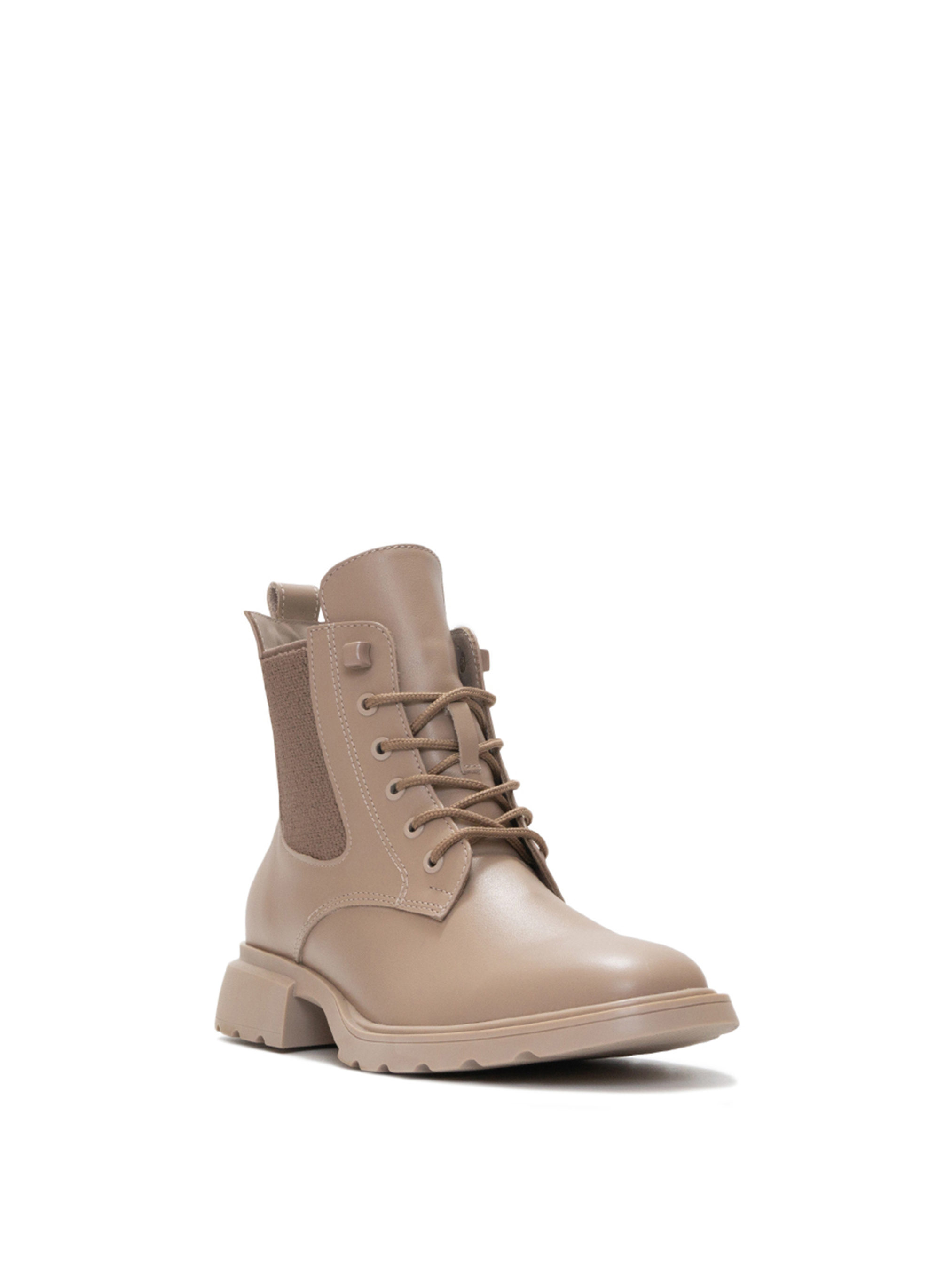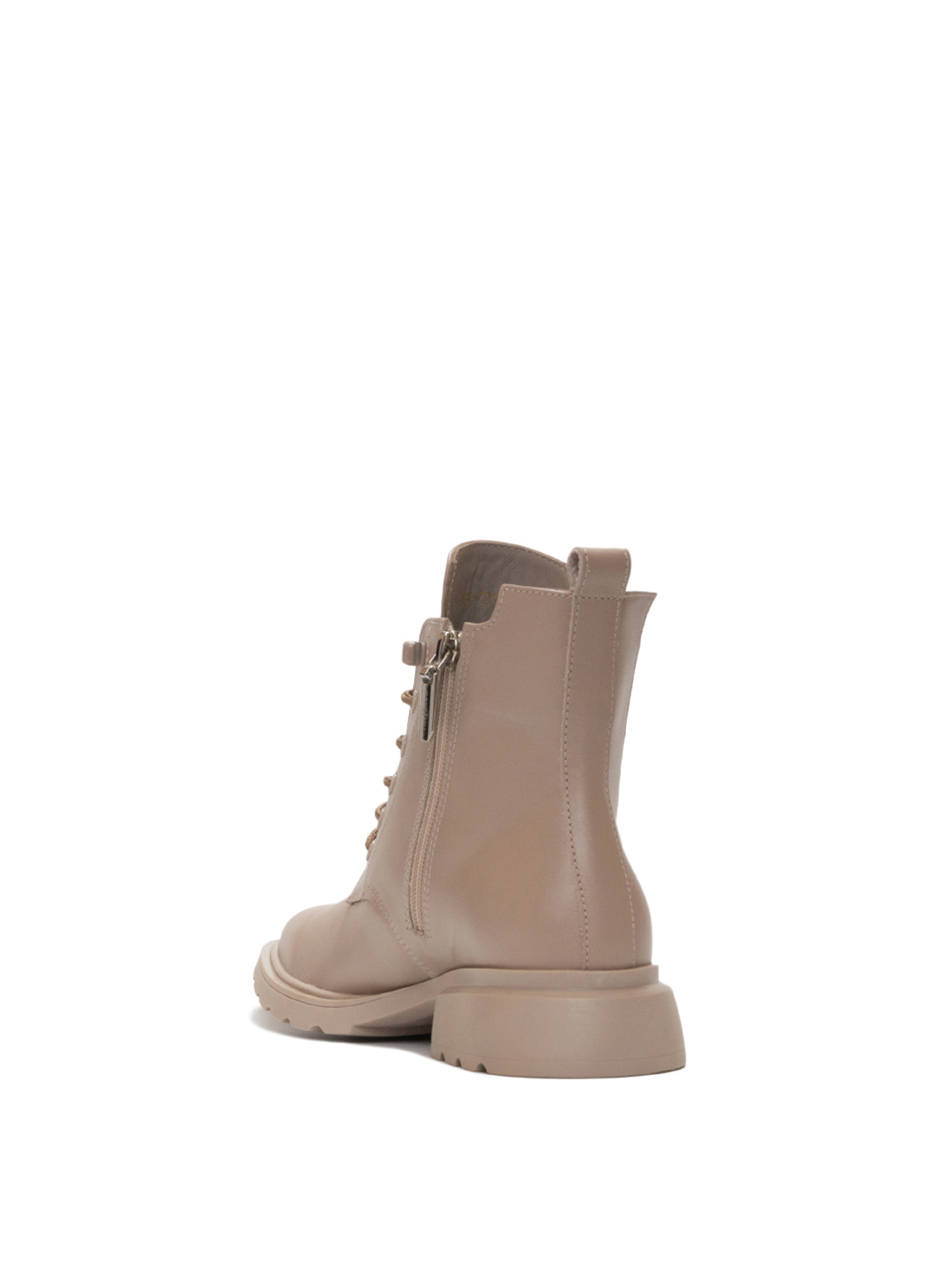 Эти кожаные ботинки имеют теплый бежевый цвет. Шнуровка, одного цвета с ботинками, придает привлекательность, особый шарм и элегантность этой модели. Застежка-молния и эластичная резиновая ткань со стороны сделает обуви удобной и легкой. Невысокая подошва имеет 3-сантиметровый каблук, которые не дадут вашим ногам переутомляться в течение дня. Высота ботинок – чуть выше косточки. Мы не следуем краткосрочной моде, но чувствуем тенденции и желания наших покупателей.