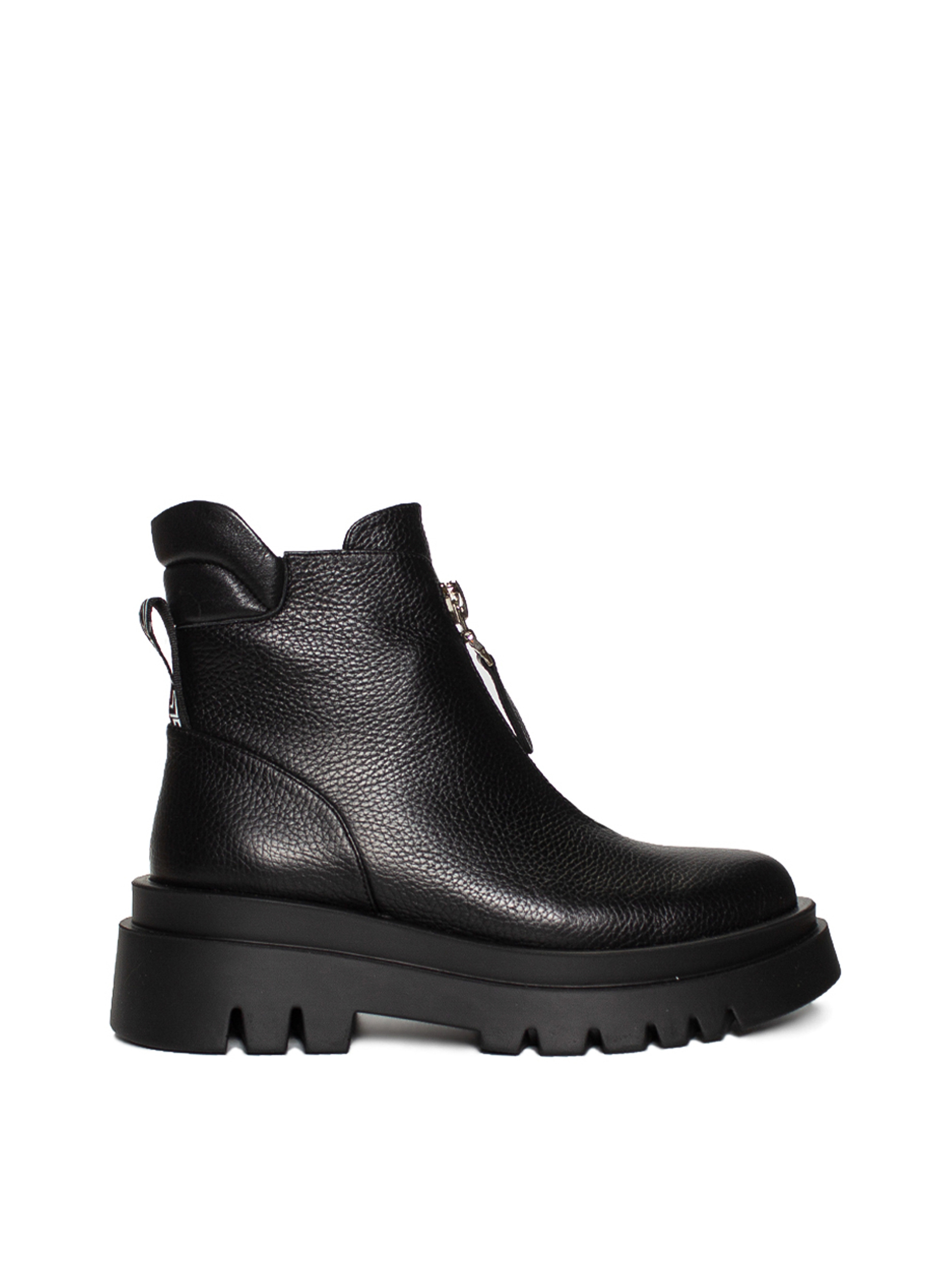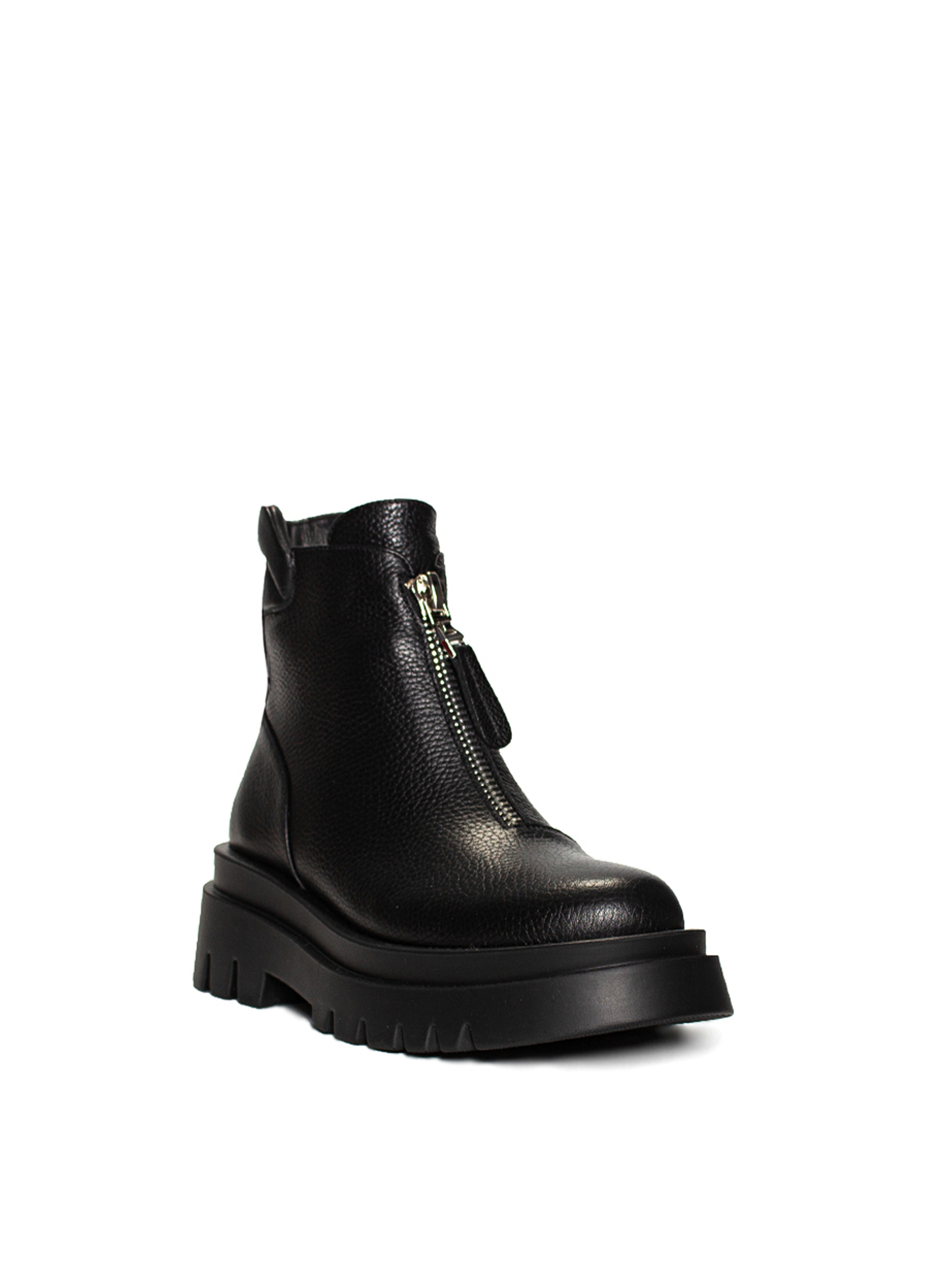 Стильные ботинки черного цвета– это правильный выбор среди зимней обуви для современной женщины. Высокая платформа 5 см не даст промокнуть вашим ногам даже в сильный снегопад. Удобная застежка-молния и мягкая задняя часть ботинок, сделает комфортной и удобной ношение этой обуви. Материал верха – натуральная кожа. Эти ботинки имеют аккуратный вид и круглый носок. Это зимняя обувь, в которой будет комфортно в любую непогоду. Вы убедитесь в их удобстве!