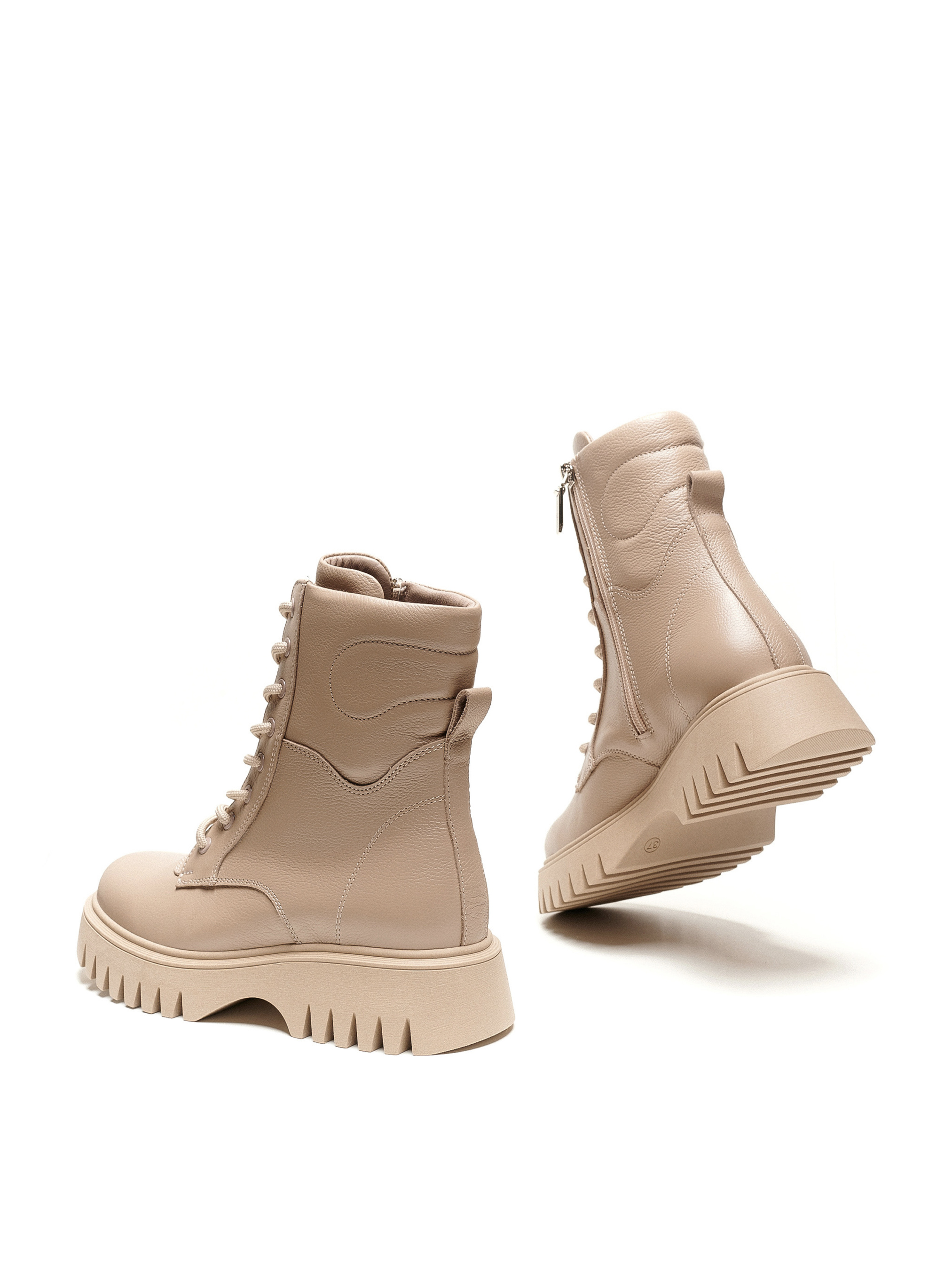 Мега стильные ботинки на шнуровке, изготовленные из натуральной мягкой итальянской кожи. Невысокий каблук, анатомически правильные колодки и современные материалы, из которых изготовлены подошва и внутреннее пространство, делают эту пару чрезвычайно удобной. Благодаря тому, что они классического бежевого цвета вы сможете использовать их при создании любого лука. Производство ALEX BELL беспокоится о вашем комфорте и стиле, поэтому каждая модель лимитированная, с индивидуальным авторским дизайном и изготовлена с брендированной фурнитурой. Ведете активный образ жизни! Хотите, чтобы обувь была удобной и в ней можно было ходить весь день? Тогда выбирайте эти замечательные ботинки и убедитесь в том, что вы не захотите их снимать даже дома!