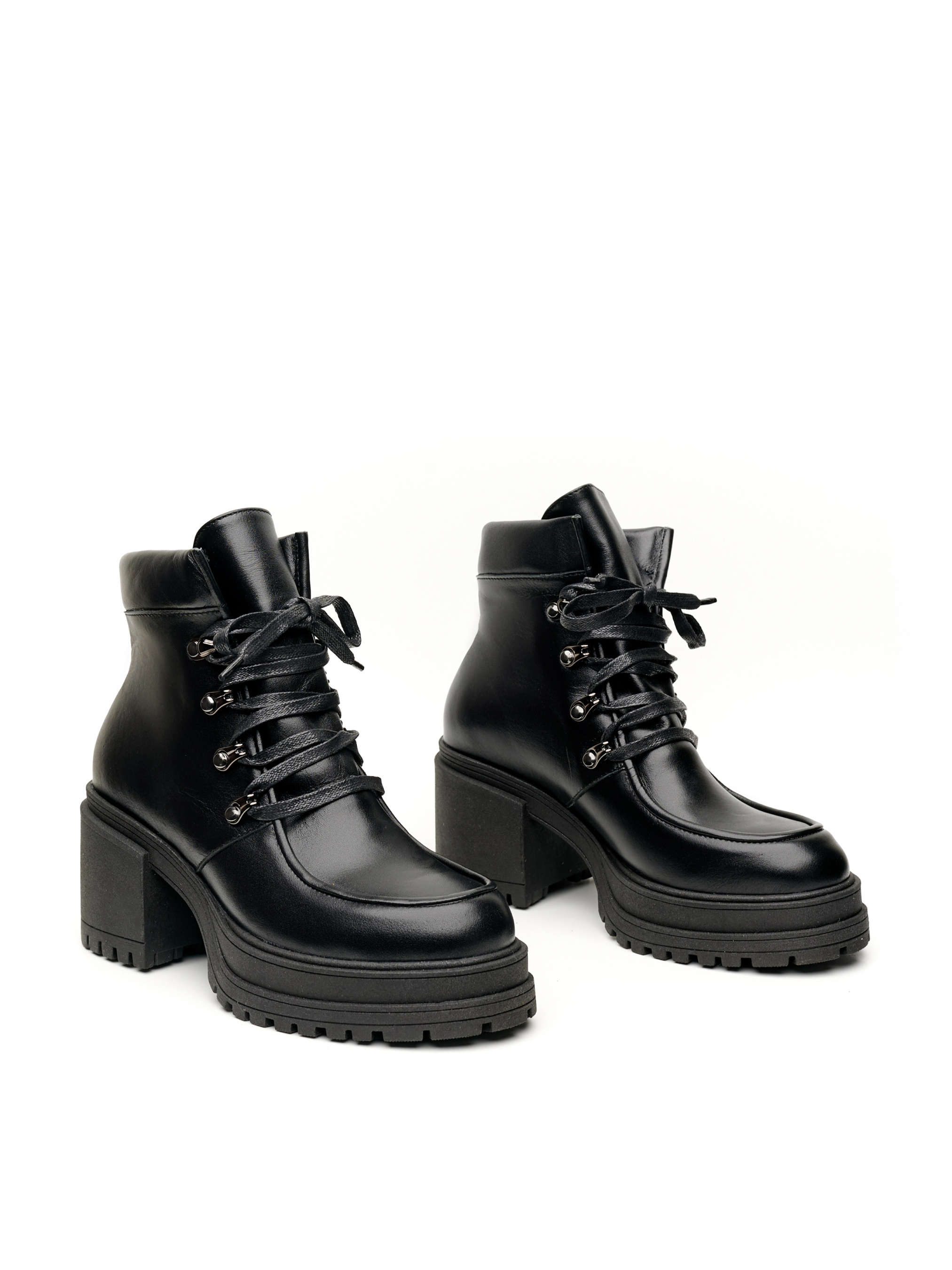 Теплая обувь может и должна быть женственной! Это доказывает отличная модель ботинок на квадратном каблуке средней высоты. Колодка очень удобна и разработана таким образом, чтобы не только обеспечить комфорт, но и удлинить ноги и сделать образ более утонченным. Черный цвет делает модель универсальной, базовой, но в то же время выглядит аккуратно, позволит использовать пару и в образах более праздничных и торжественных.