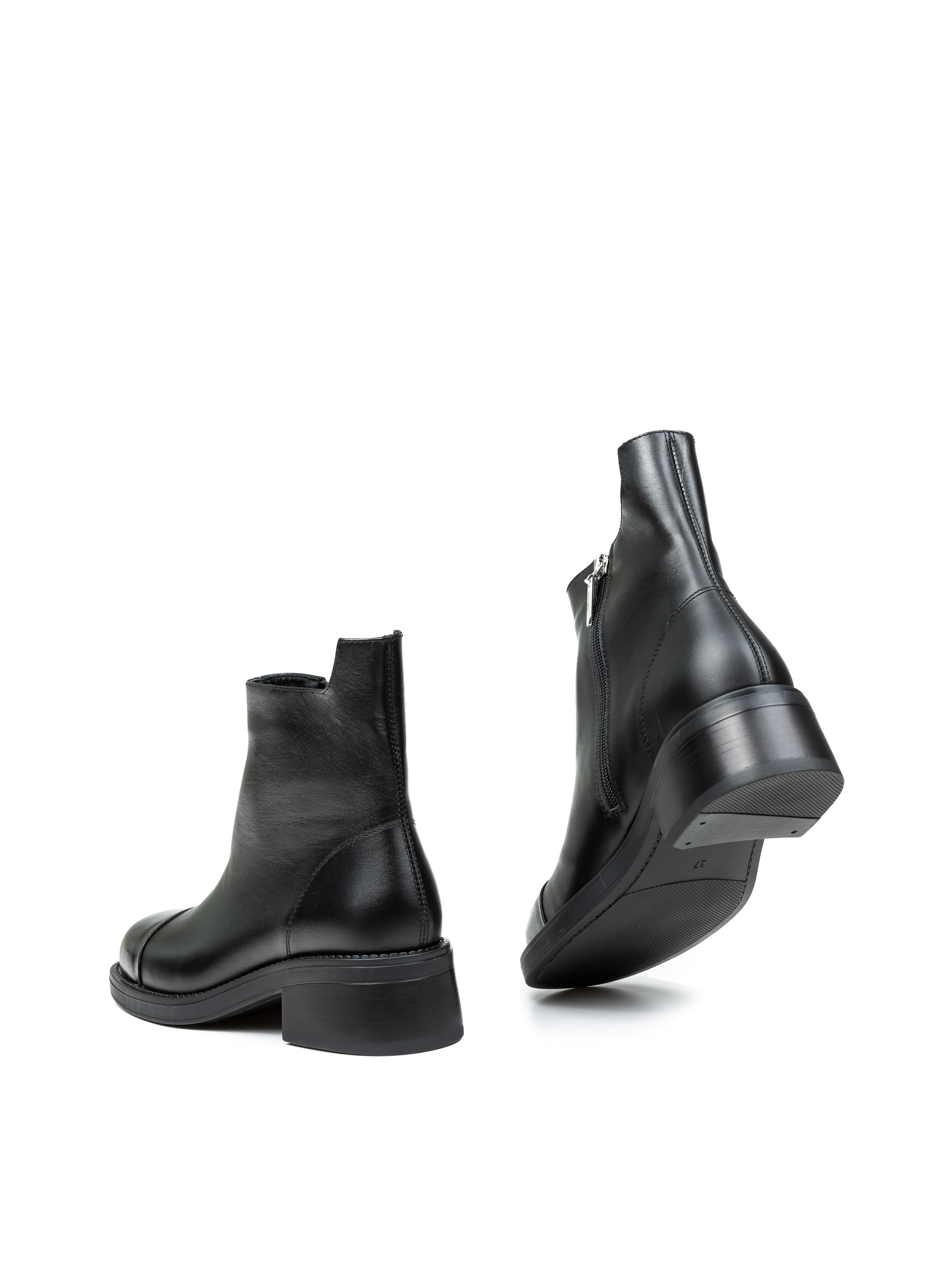 Базовые женские ботинки ALEX BELL черного цвета на удобном каблуке. Элегантные, стильные и универсальные. Они точно заслуживают стать любимцами твоего гардероба. Итальянская натуральная кожа и современные материалы, из которых изготовлено внутреннее пространство и подошва ботинок, подарят вам комфорт и легкость походки. Производство ALEX BELL предпочитает только высококачественные премиум материалы, поэтому долгосрочная служба гарантирована.