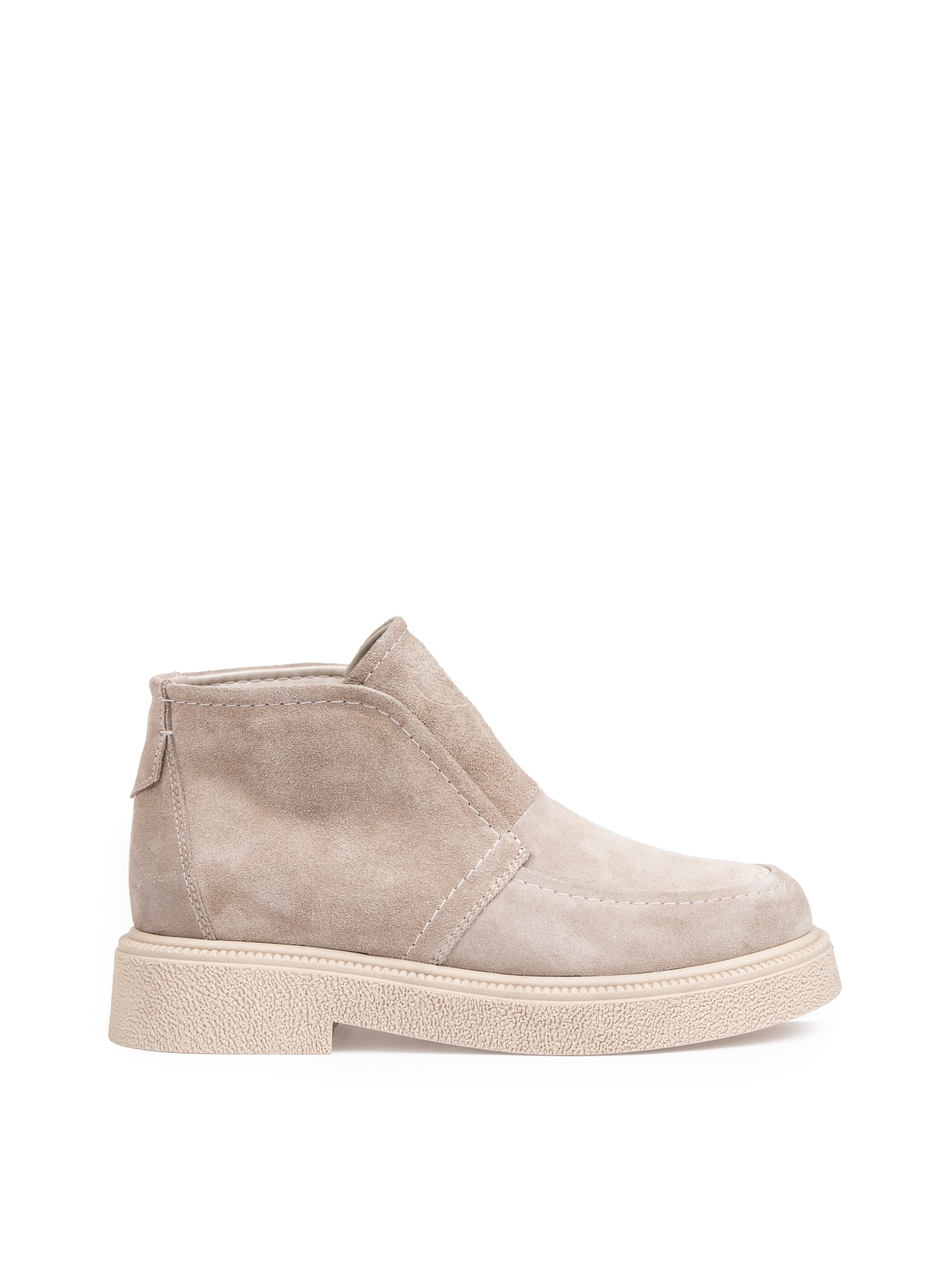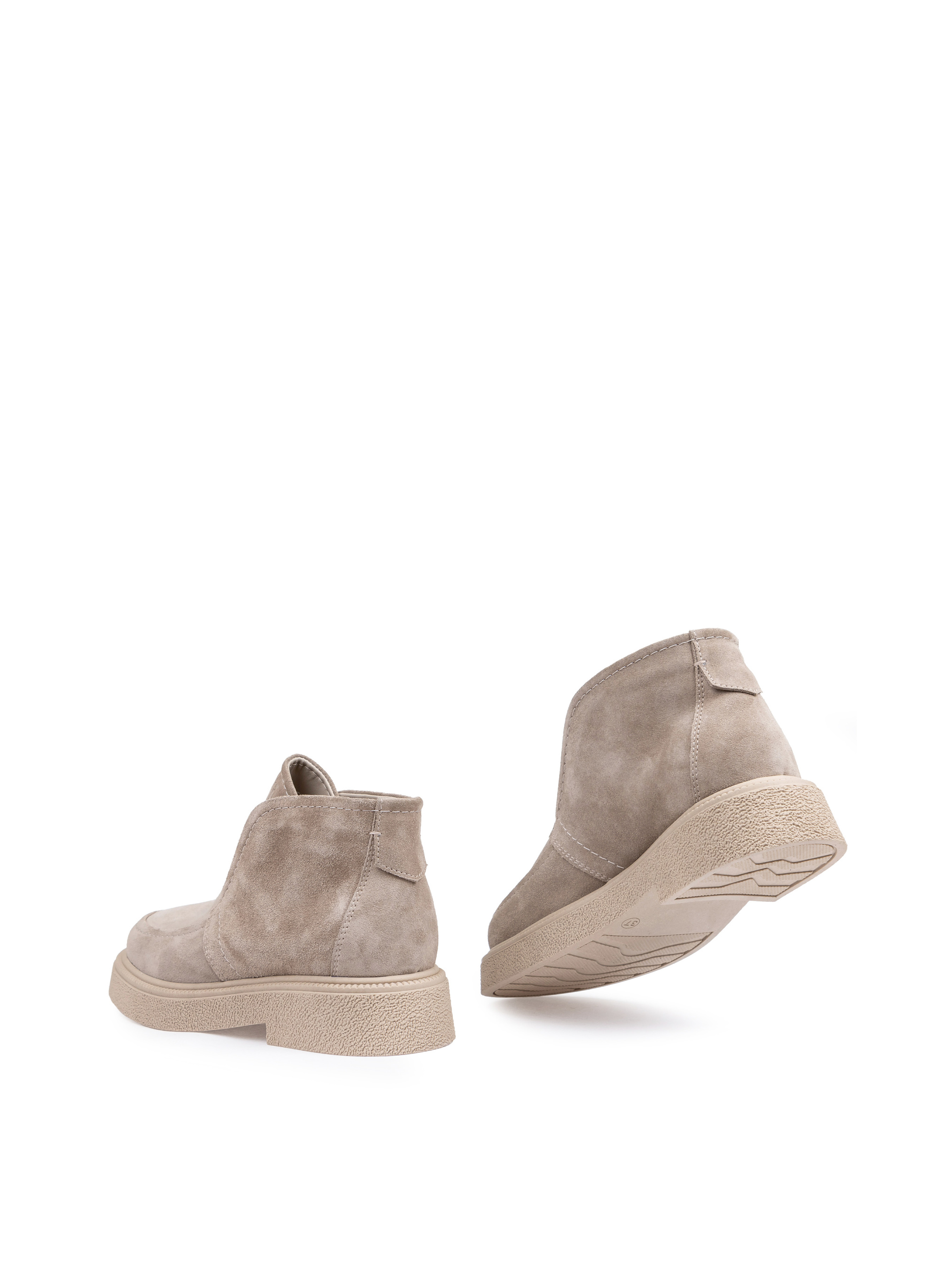 Эти стильные женские ботинки бежевого цвета, изготовленные из натуральной замши, имеют мягкую бархатную поверхность. Невысокая подошва обеспечит комфорт для стопы, закругленный носок не будет сдавливать пальцы. Замшевые ботинки выглядят аккуратно на ноге и хорошо удерживают тепло. Для изготовления продукции отбираются премиум-материалы, что является гарантом высокого качества.