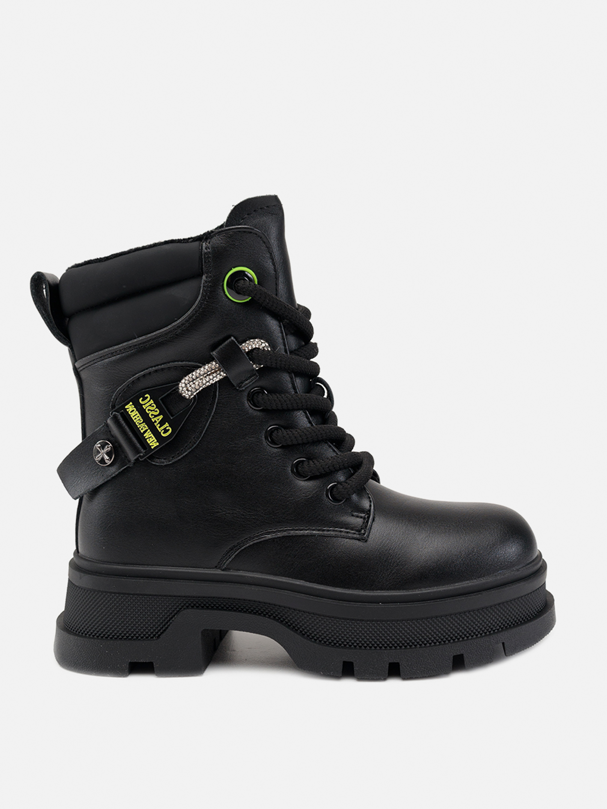 Ботинки для девочки - это сочетание стиля, комфорта и надежности, которое обеспечит защиту ножек вашего ребенка в любую погоду. Изготовленные из качественных материалов, эти ботинки отличаются высокой износостойкостью и долговечностью. Мягкая подкладка и стелька обеспечивают комфорт и тепло, а гибкая подошва с рельефным протектором гарантирует надежное сцепление с любой поверхностью. Стильный дизайн с яркими деталями придаст образу вашей девочки особого шарма. Особенности обуви: Цвет: черный, однотонный. Материал изготовления: эко-кожа. Подошва: ТЕП / подклад: шерсть. Размерный ряд: 32 37. Страна производитель: Китай.