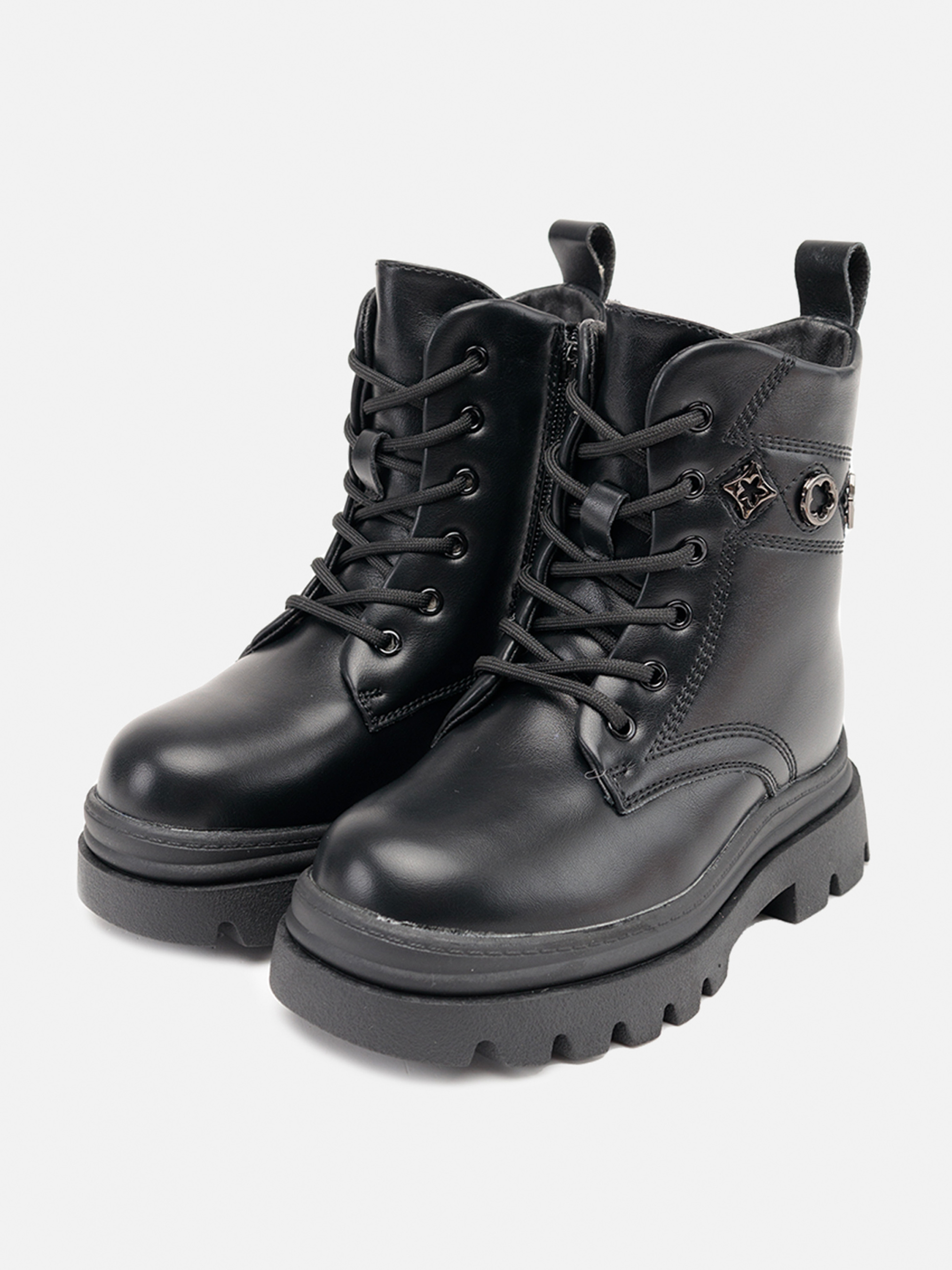 Ботинки для девочки - это сочетание комфорта, стиля и надежности, идеальное для холодного времени года. Изготовленные из качественных материалов, они обеспечивают тепло и защиту от влаги, а мягкая подкладка гарантирует комфорт во время носки. Благодаря удобной застежке, ботинки легко одевать и снимать, что делает их практичным выбором для ежедневного ношения. Подошва обеспечивает надежное сцепление, что особенно важно во время прогулок в любую погоду. Стильный дизайн позволяет сочетать ботинки с различными элементами гардероба, создавая модный и современный образ для вашей девочки. Особенности: Цвет ботинок: черный. Материал изготовления: эко-кожа. Размерный ряд: 27 - 32. Страна производитель: Китай.