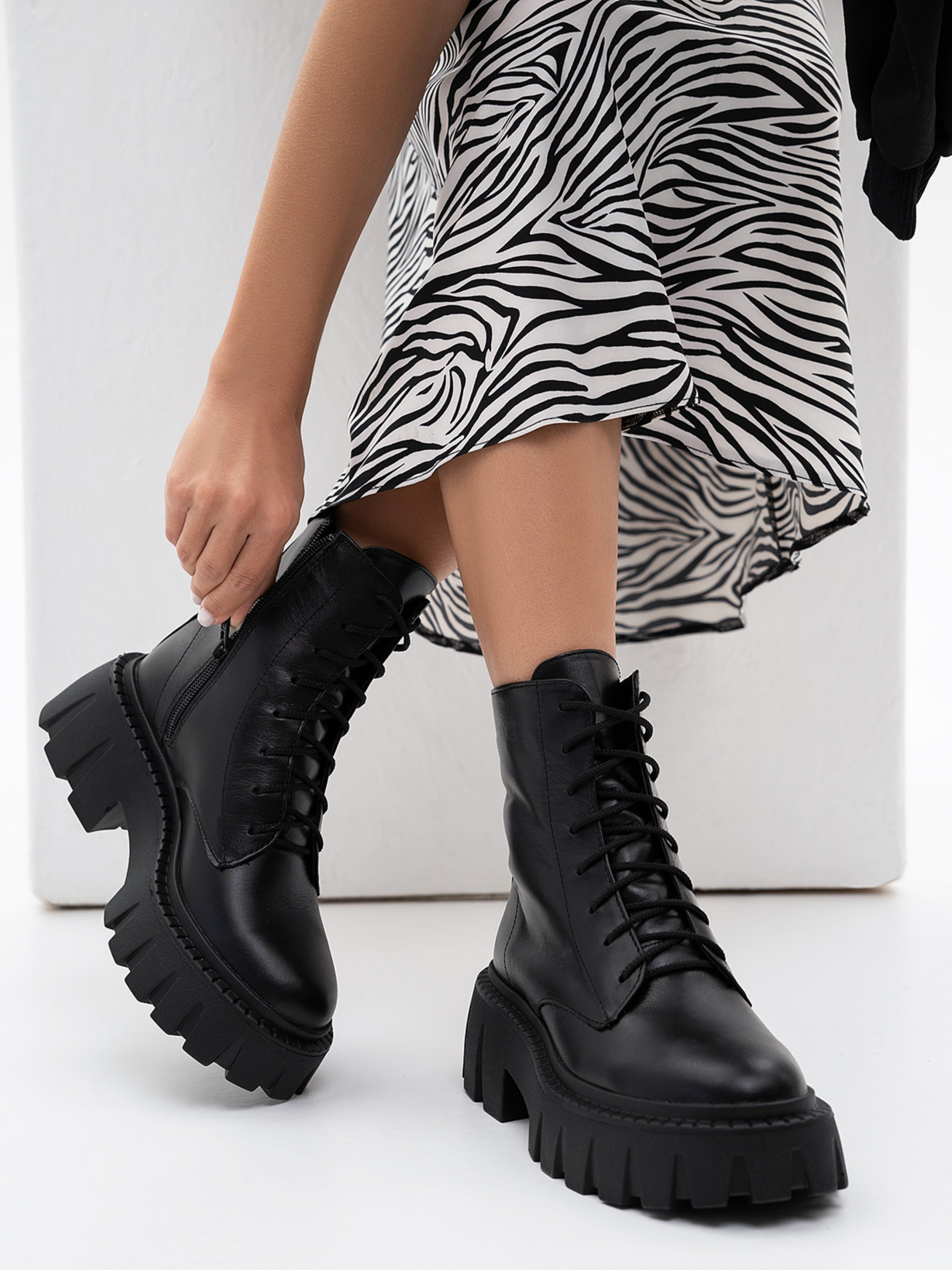 Материал верха: натуральная кожа Подклад: байка Подошва: ТР(термопластичная резина) Высота каблука: 5,5 см Высота ботинка: 14 см Наличие змейки: да. 36 (23,5), 37 (24), 38 (24,5), 39 (25,5), 40 (26), 41 (26,5)
