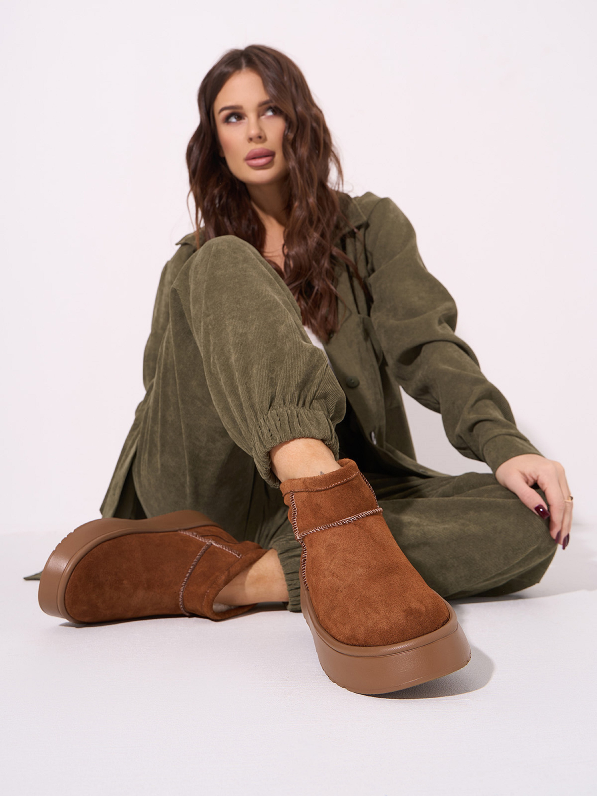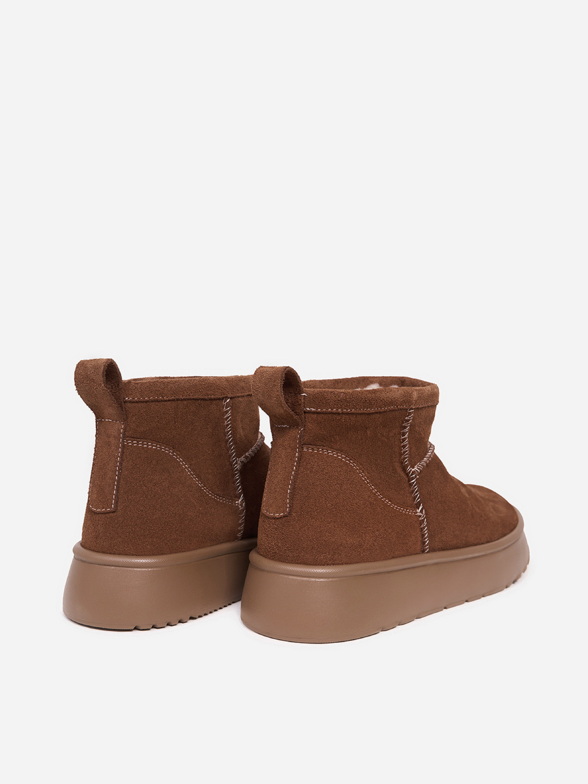 Теплые коричневые угги из натуральной замши на меху. Модель на высокой подошве с внешними швами. Материал верха: натуральная замша. Подклад: мех искусственный. Подошва: ЭВА. Высота подошвы: 4 и 3 см. Высота ботинок: 10 см. Замеры: 36 (23,5), 37 (24), 38 (24,5), 39 (25), 40 (25,5), 41 (26)