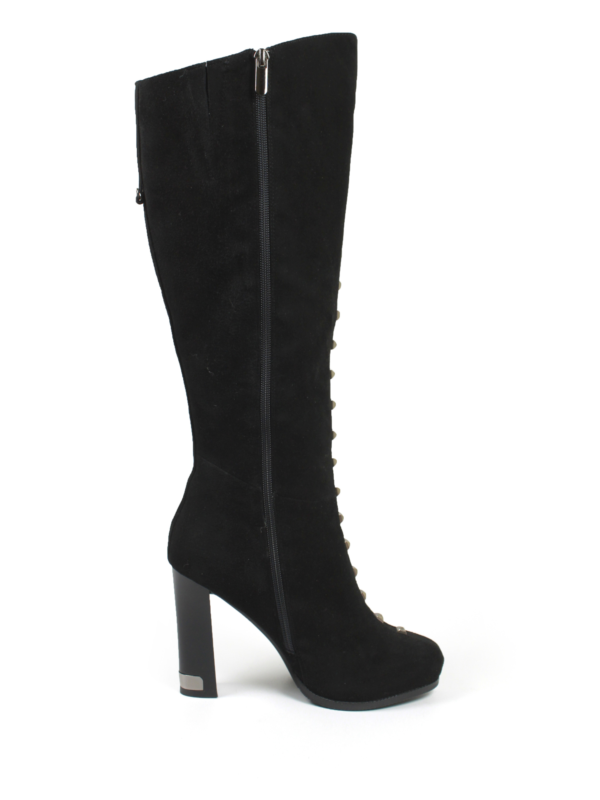 Элегантные чёрные сапоги из мягкого замшевого материала — стильный акцент для осеннего гардероба. Высокое голенище визуально удлиняет ноги, а устойчивый каблук обеспечивает комфорт и уверенность в каждом шаге. Модель украшена металлическими декоративными элементами вдоль передней части, что придаёт современный характер и оригинальность. Удобная посадка и качественные материалы делают сапоги идеальными для повседневной носки. Отлично сочетаются с платьями, юбками и узкими брюками — универсальный вариант для создания женственных осенних образов. Длина стельки для размеров:38р-24,5 см 39р- 25 см.