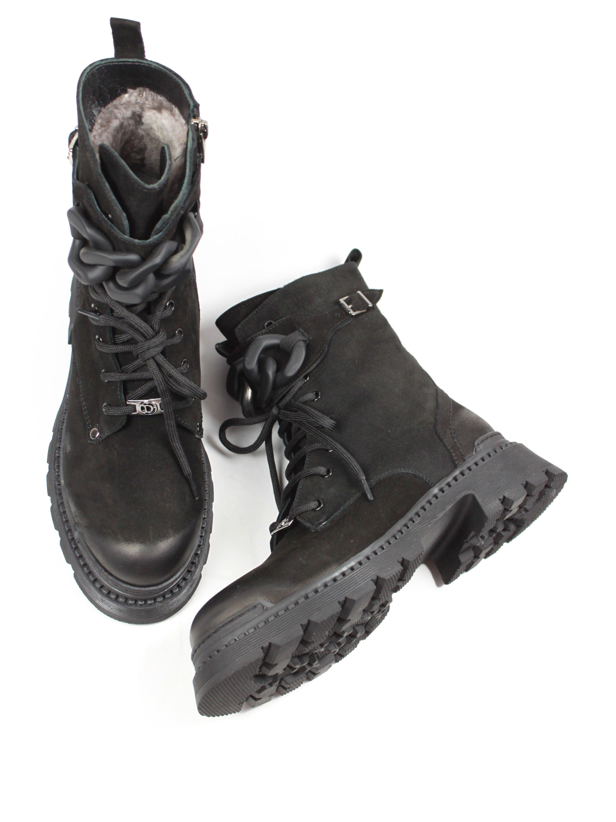 Эти стильные ботинки идеально сочетают комфорт, тепло и современный дизайн. Материал верха: Натуральный нубук высокого качества.цвет: Глубокий черный. Цвет: Глубокий черный: Глубокий черный. Утепление: Натуральный мех, обеспечивает тепло даже в мороз. Шнуровка: Практичная, для регулировки плотности посадки. Декор: Декор: Объемная цепочка на голенище, добавляет трендового вида. Подошва: Рельефная, износостойкая, обеспечивает надежное сцепление с поверхностью. Дополнительные элементы: Застежка на ремешке для стильного акцента. Назначение: Повседневные образы в холодное время года. Размерная сетка: 36р-23,5 37р-24 см 38р-24,5см 39р-25 см 40р-25,5см.