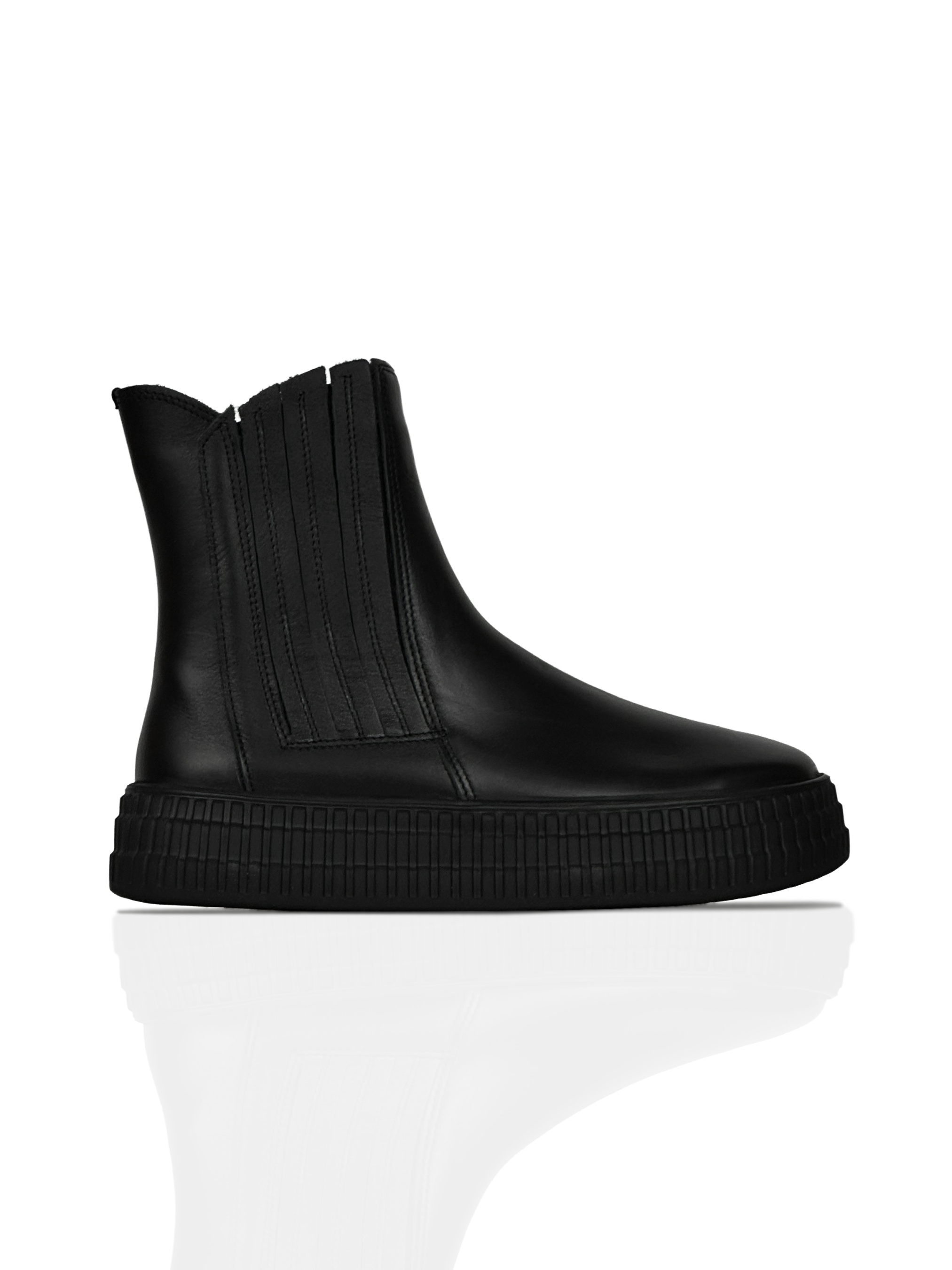 Сезон: Весна/Осінь Зовнішній матеріал: Наппа - натуральна шкіра зі збереженням лицьовій поверхні, м'яка, зносостійка та еластична. Попри м'якість і делікатність матеріал має високий рівень міцності і надійності. Підкладка: Натуральна байка Устілка: Легка з піни EVA Підошва: EVA (етиленвінілацетат) - підошва з пористою структурою, наповнена мікроскопічними бульбашками повітря, що сприяє не лише легкості, але й відмінній теплоізоляції. Еластична, пружна та м'яка, з чудовими амортизуючими властивостями, цей матеріал має довгий термін експлуатації та стійкий до зовнішніх впливів та морозів. У взутті з такою підошвою ноги менше втомлюються, ходити зручно та комфортно. Застібка: Челсі з резинкою Колір: Чорний Укріплений носок та задник, що стабілізує п’яту і утримує стопу Висота взуття: 19 см (найменший розмір) - 20,5 см (найбільший розмір) Висота підошви: 4 см (передня частина), 4 см (задня частина) Відповідність розміру: Модель йде розмір на розмір